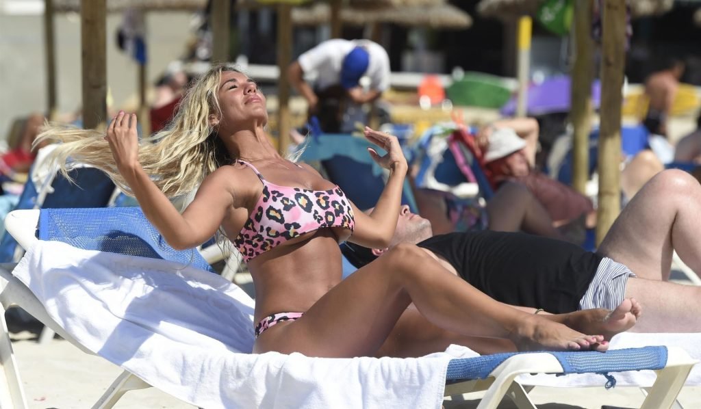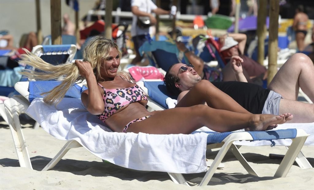 Con i suoi lunghi capelli biondi che brillavano sulle spiagge di sabbia dorata, Christine ha deciso di contenere il suo entusiasmo rilassandosi sul lettino per prendere un po’ di raggi spagnoli sul suo corpo già tonico, abbronzato e sensuale.