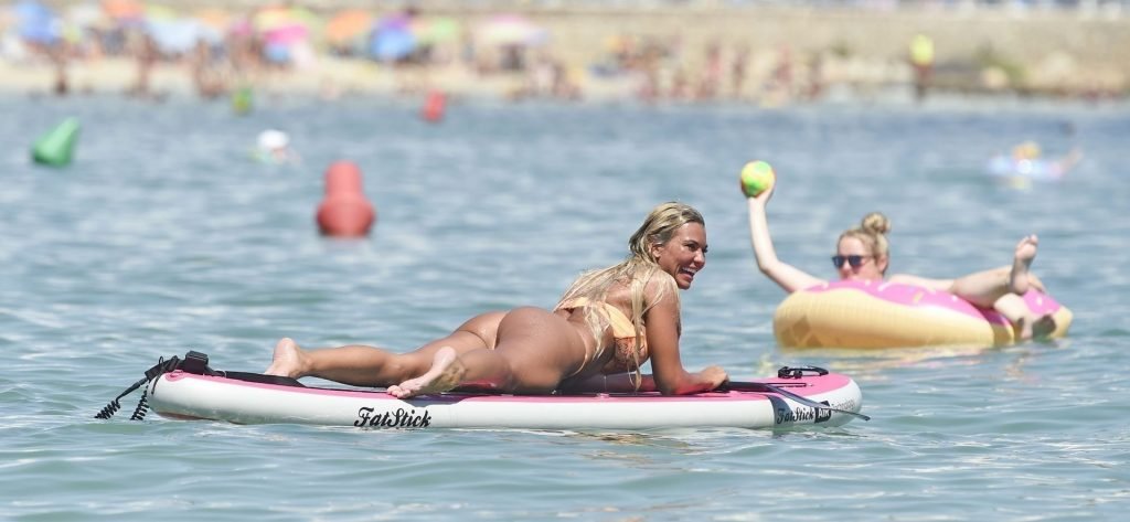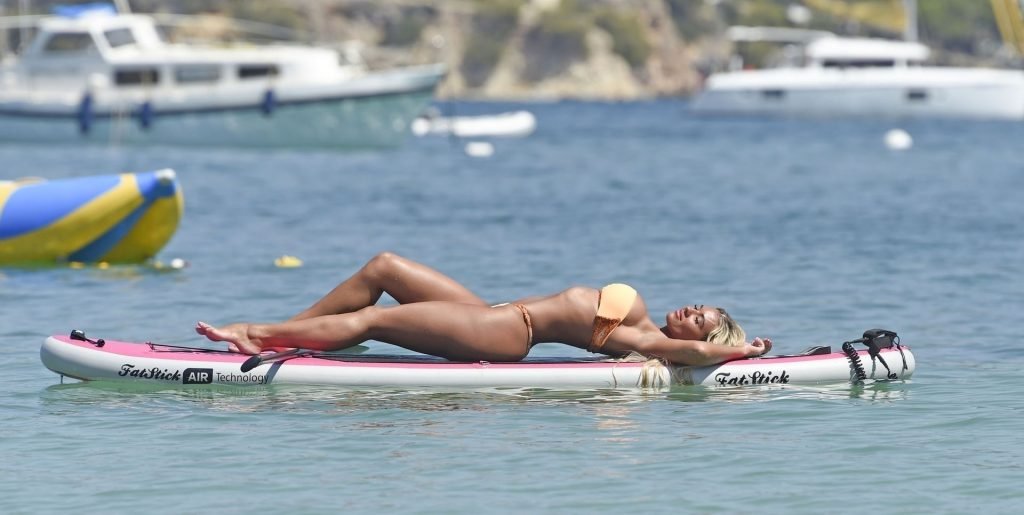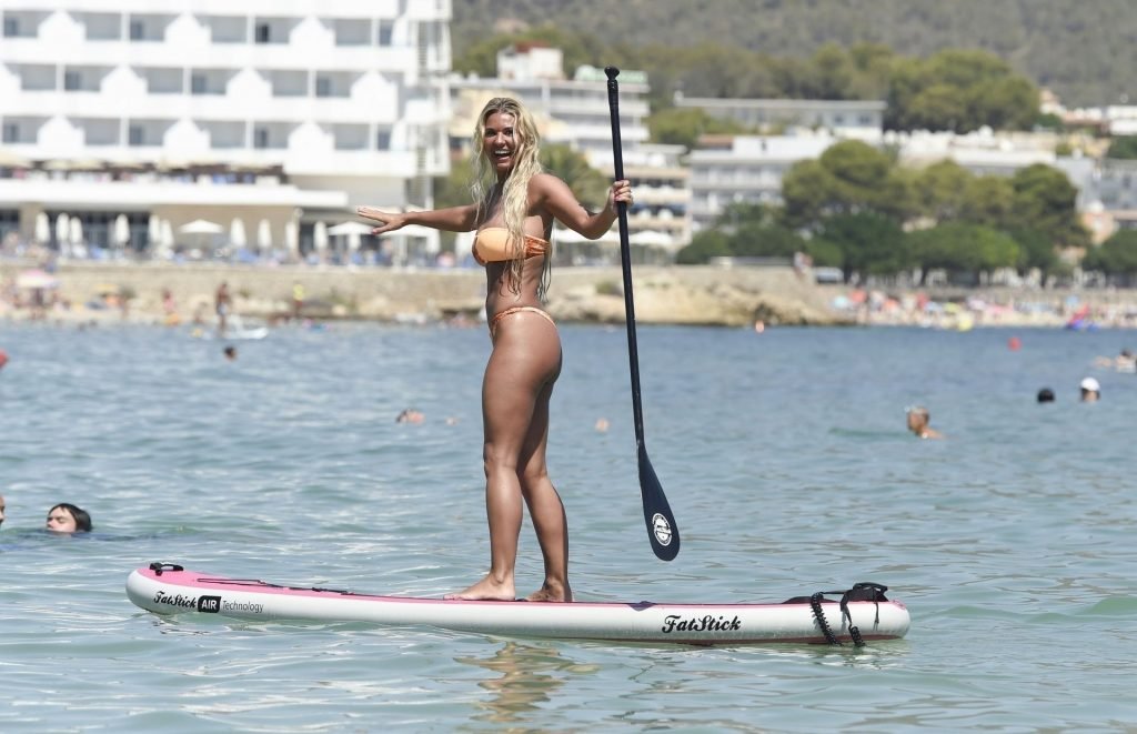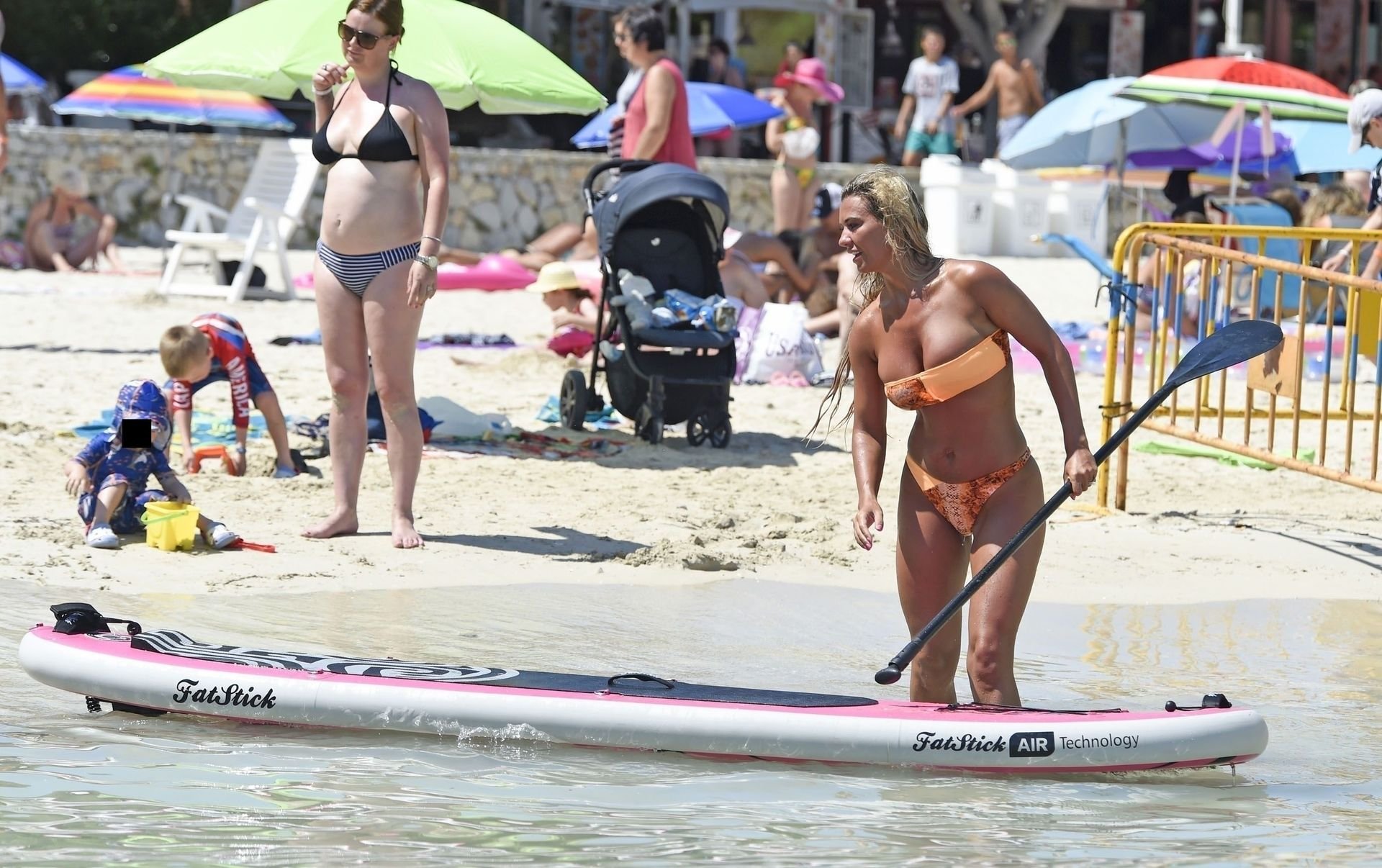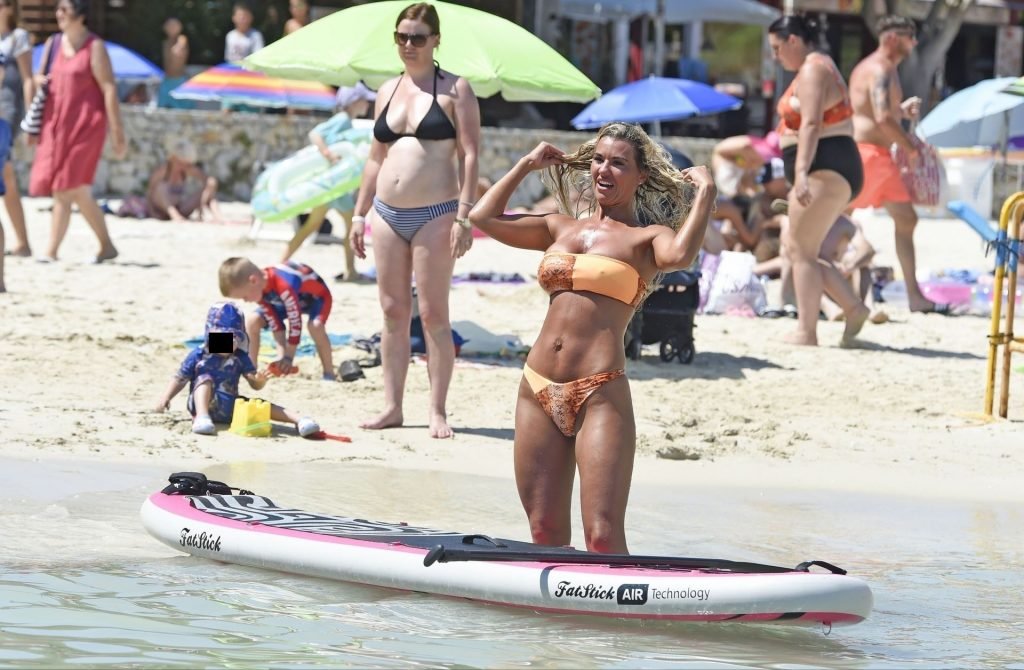 Con le sue lunghe chiome bionde fluenti e il suo corpo da spiaggia mozzafiato, la star di Real Housewives of Cheshire ha fatto salire la temperatura con una calda esibizione sul suo paddleboard dopo aver visitato la spiaggia.