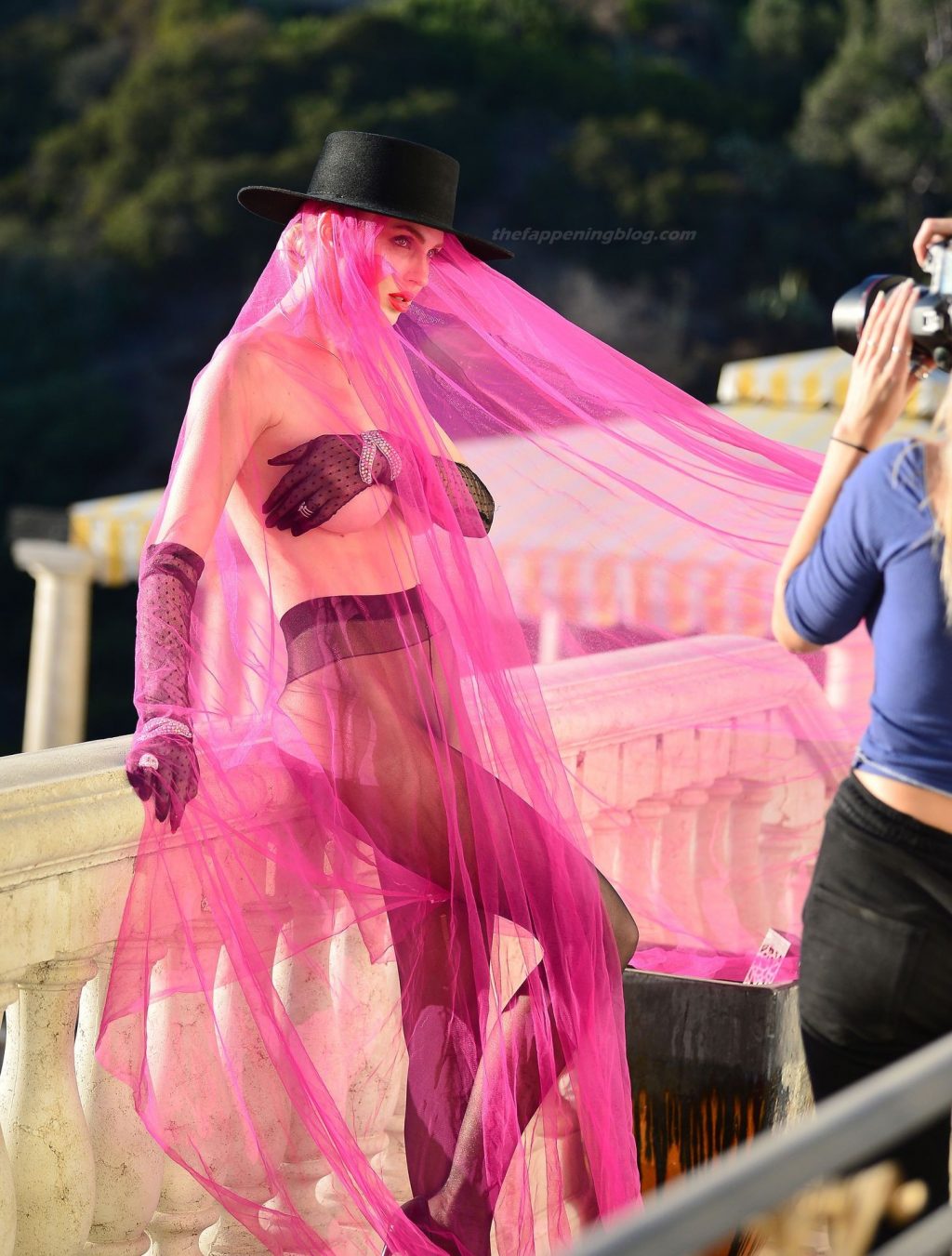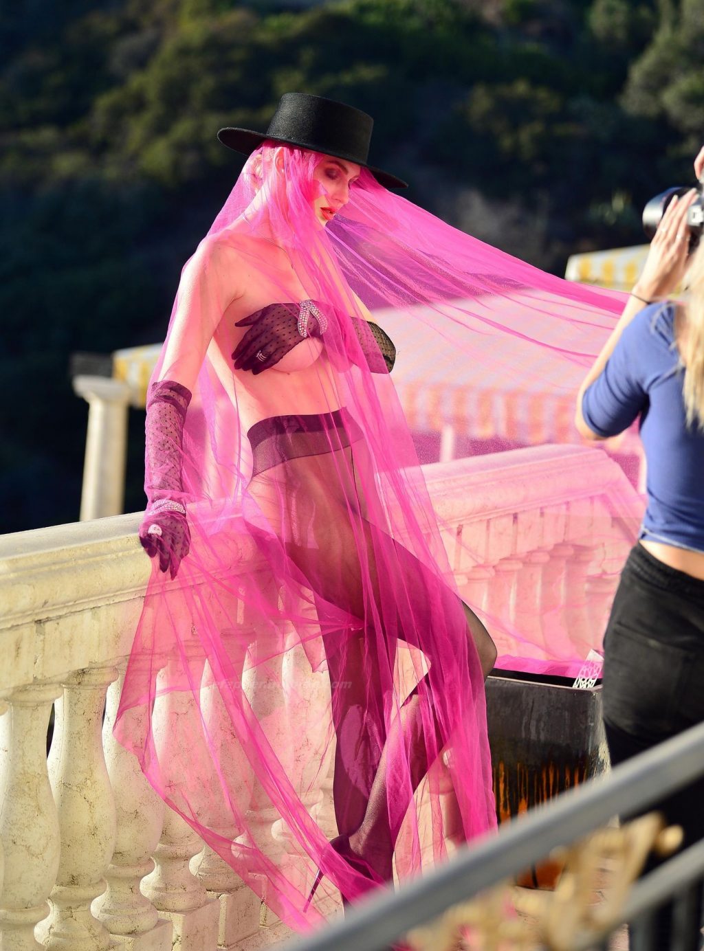 Dai un’occhiata alle immagini BTS della star di “Selling Sunset” Christine Quinn durante un servizio fotografico ispirato al risqué con il fotografo Sonny Matson nella famosa villa Chateau Rose a Bel Air (2020).
