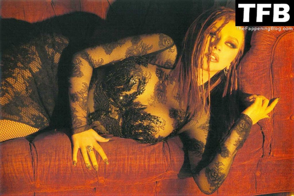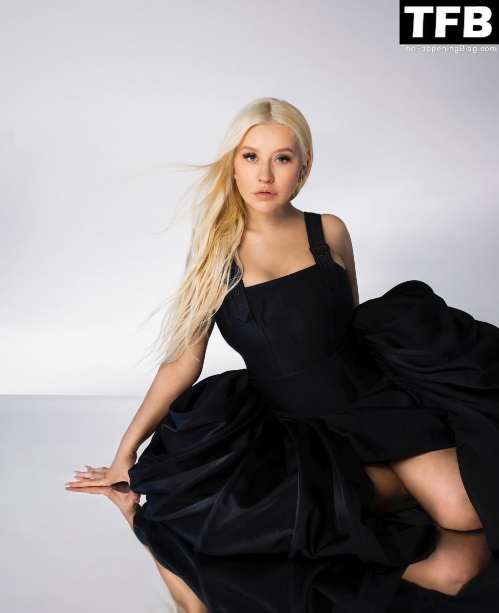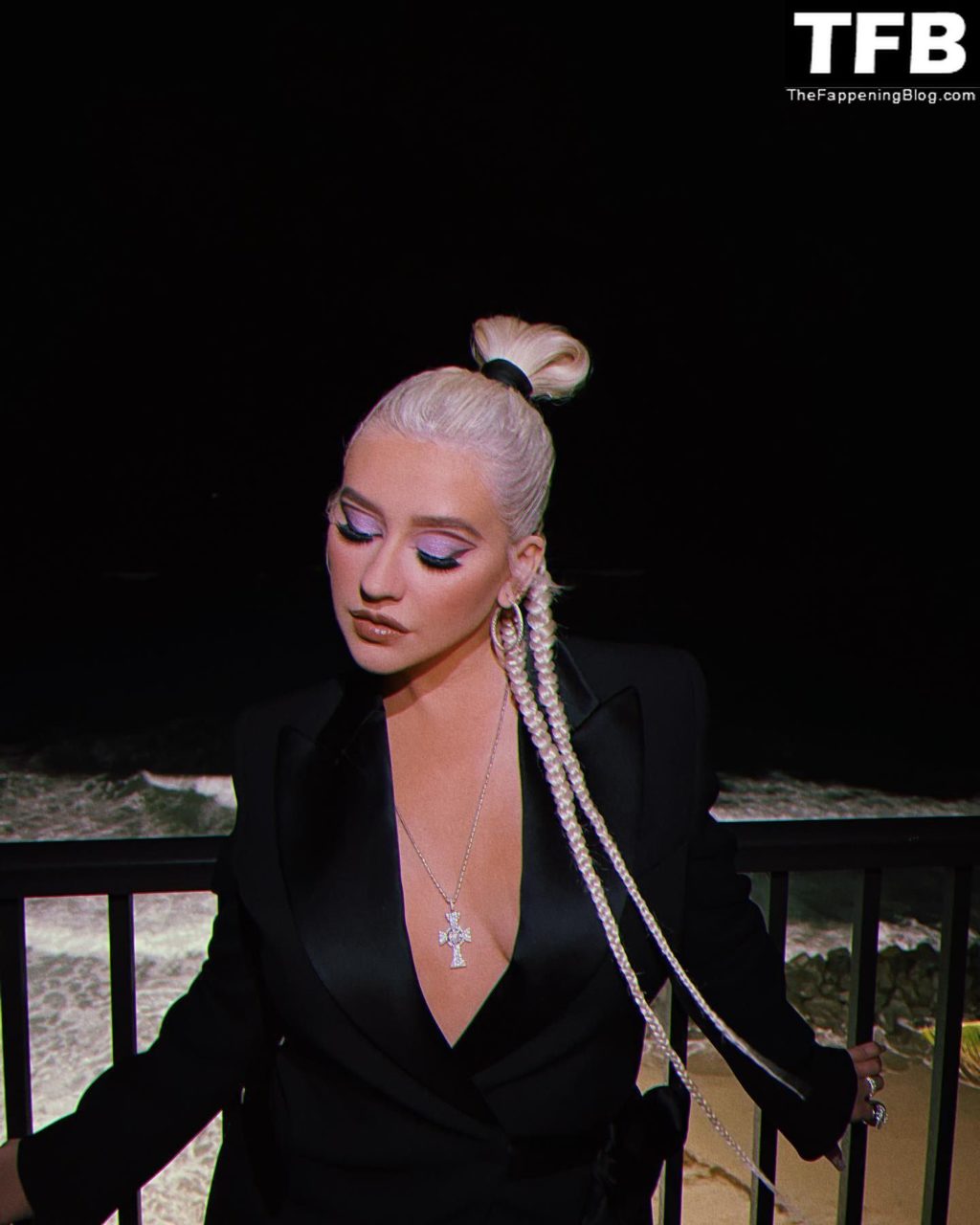 La cantante Christina Aguilera mostra il suo grande seno in vari servizi fotografici sui social media e di moda.