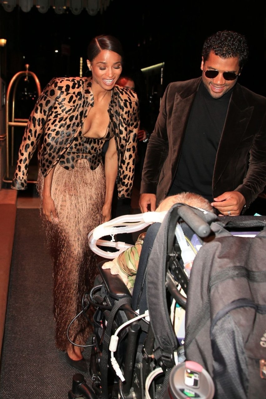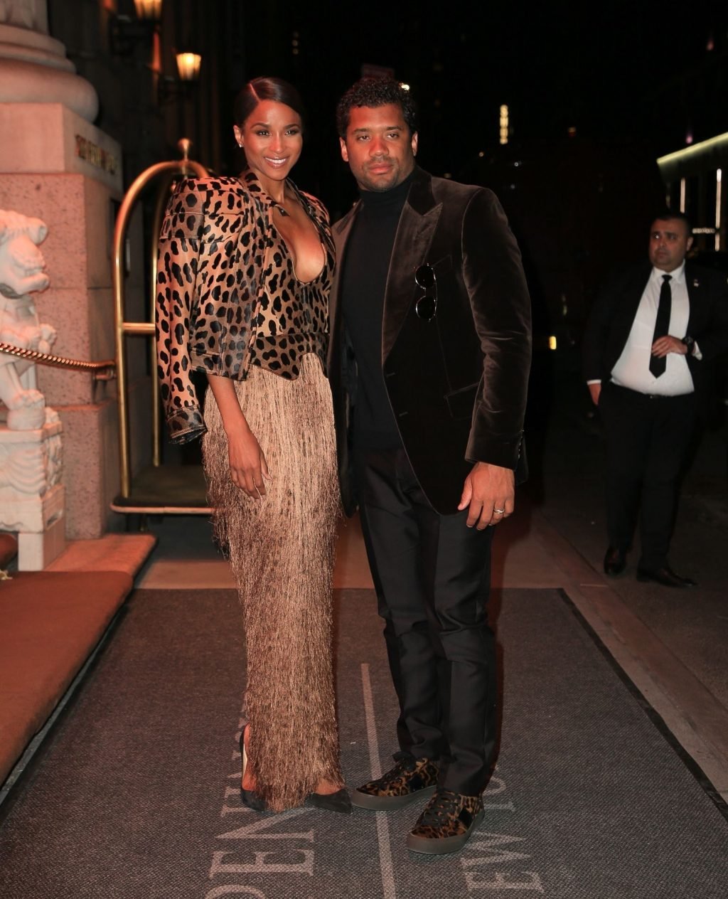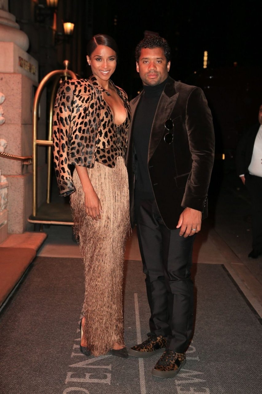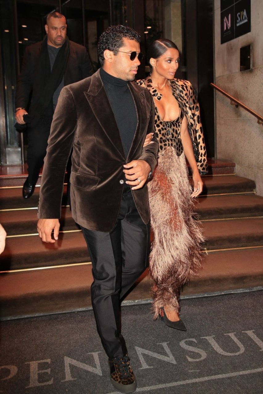 Ciara e Russell Wilson appaiono eleganti con stampe animalier abbinate mentre escono dall’hotel The Peninsula New York per una serata in città insieme, 13/03/2019.
