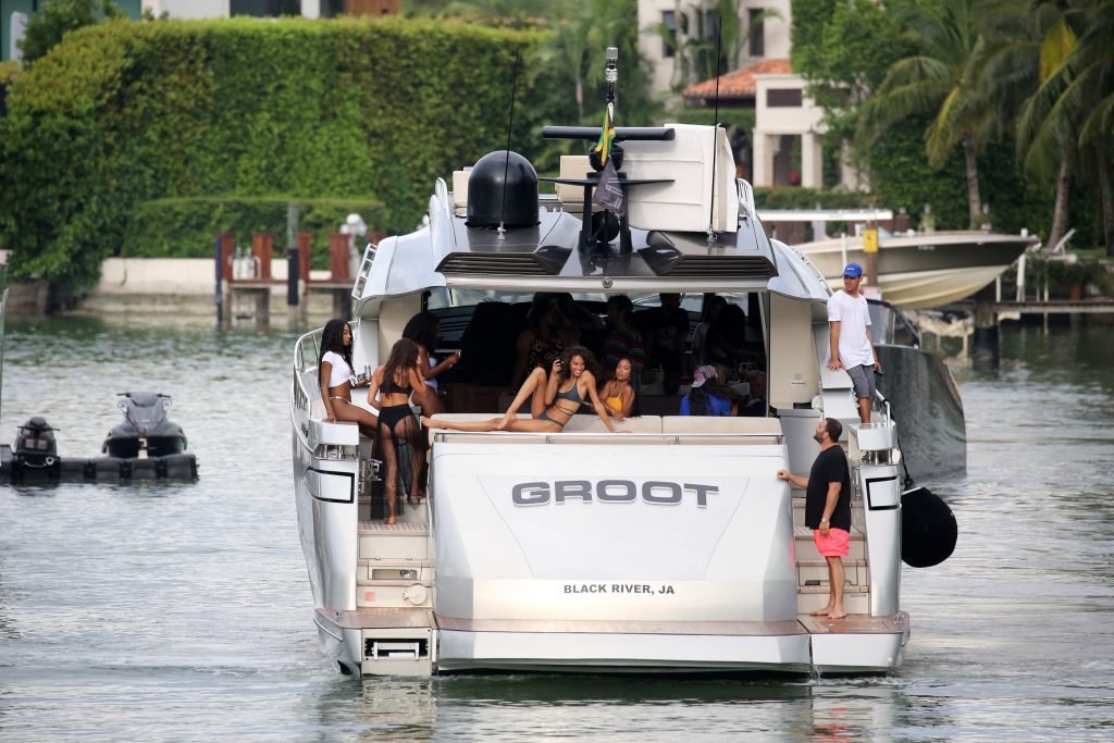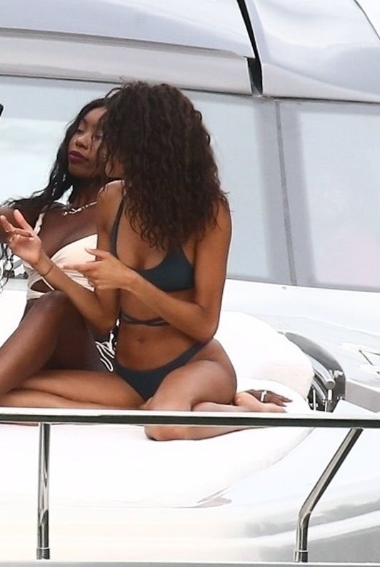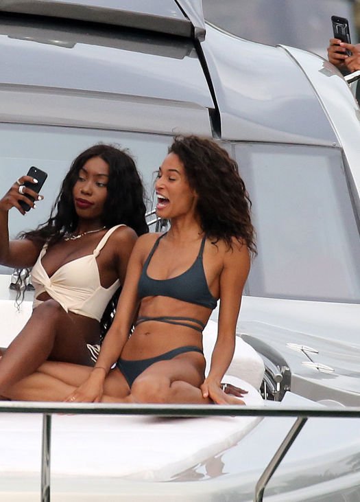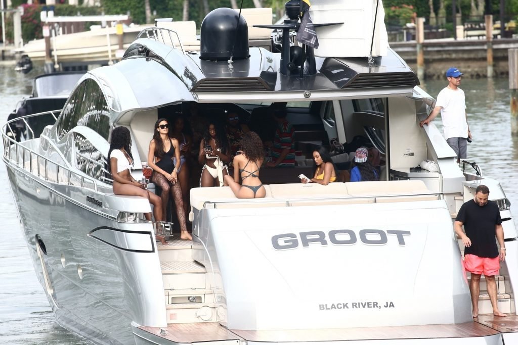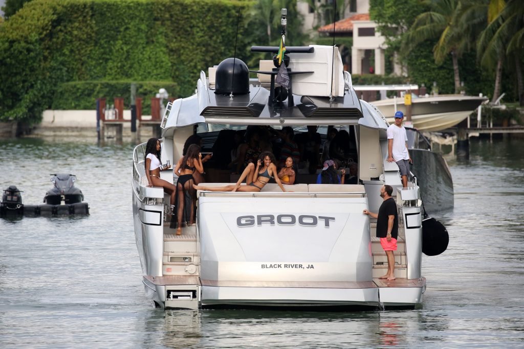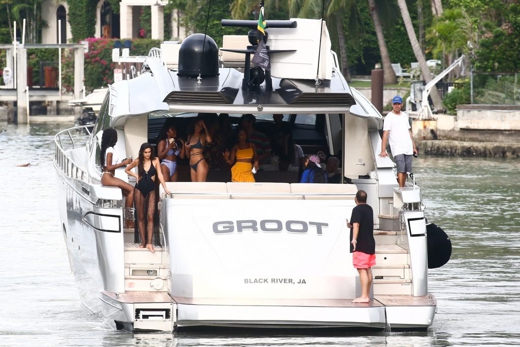 Cindy Bruna mostra le sue curve in bikini con altre ragazze su uno yacht a Miami, 28/07/2018. Le migliori amiche della modella stavano facendo il giro inaugurale sulla nuova barca del magnate dei nightclub Dave Grutman.