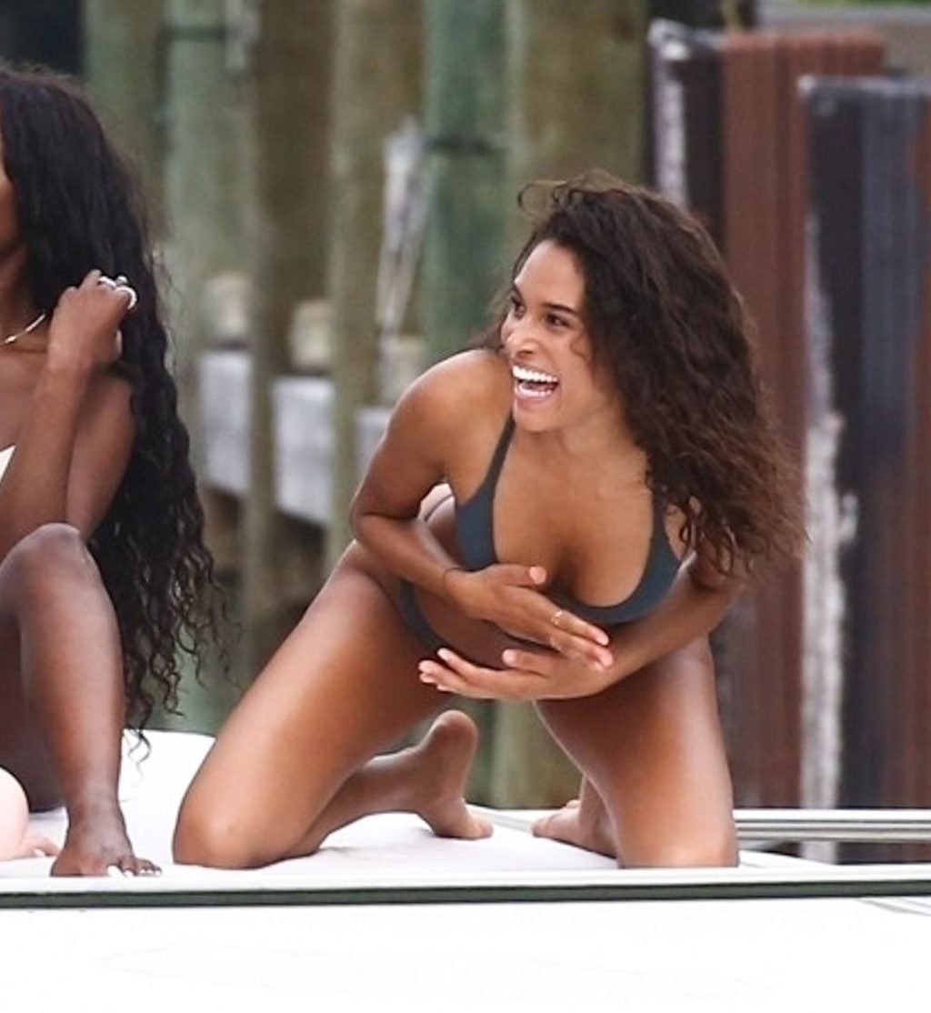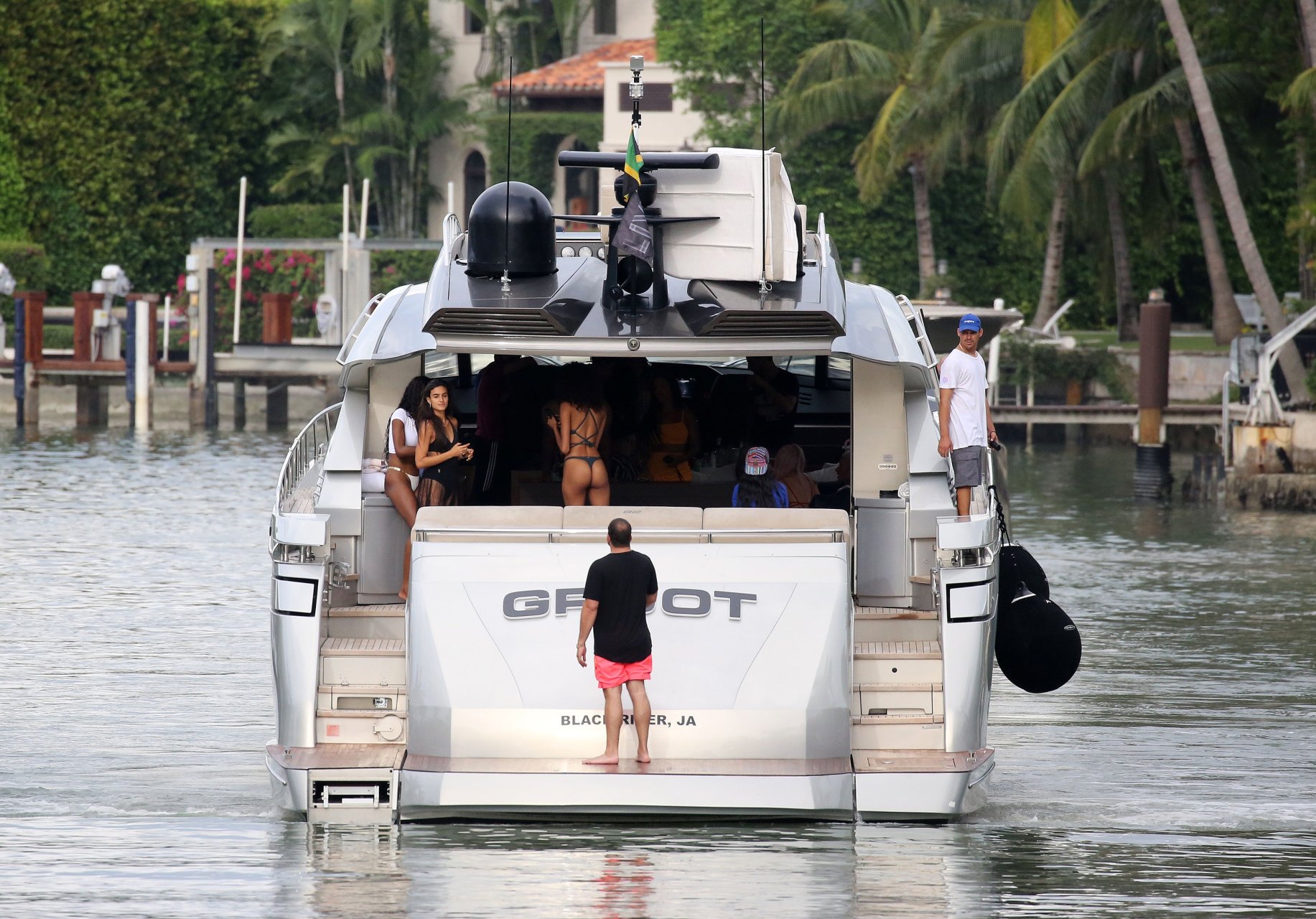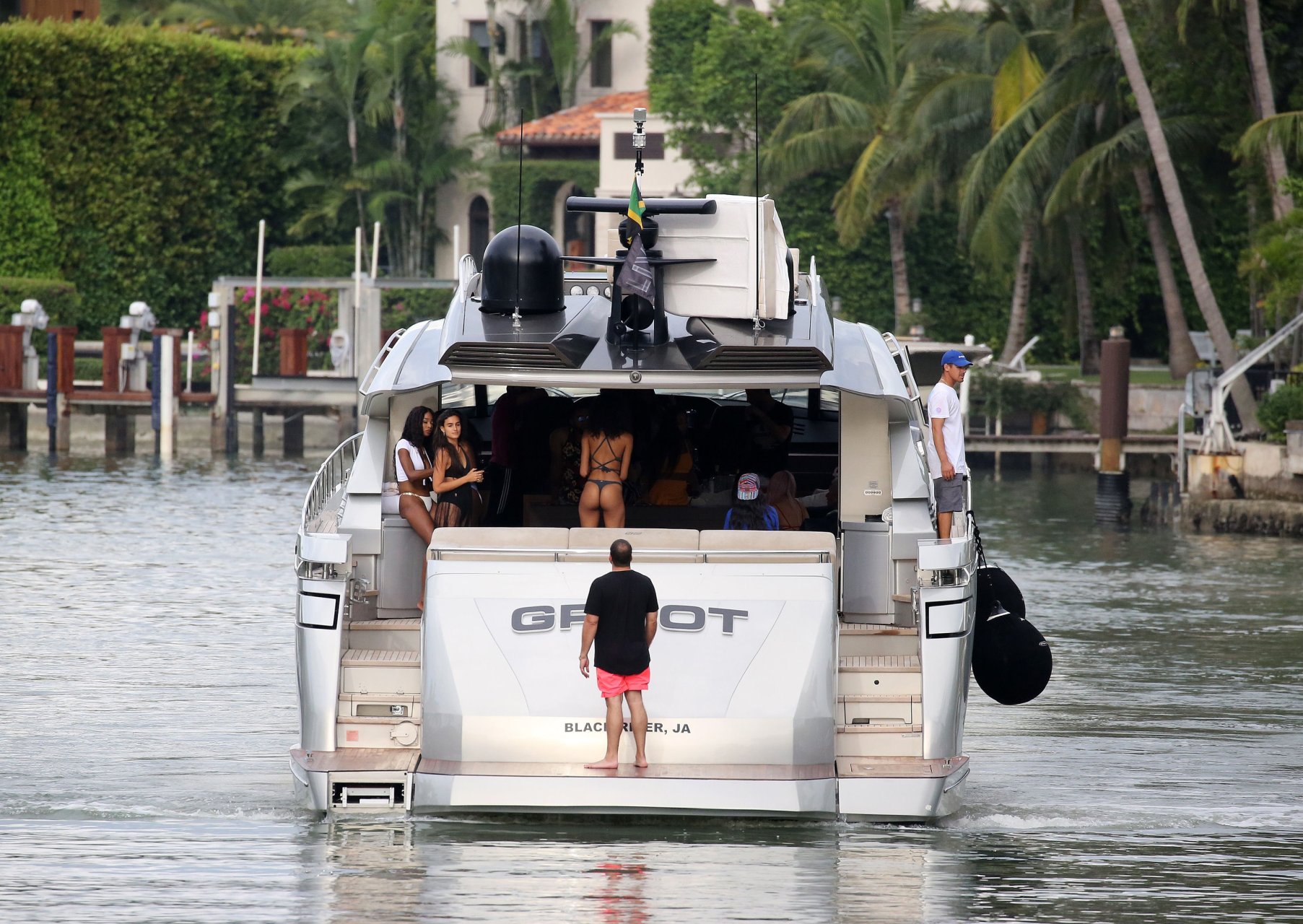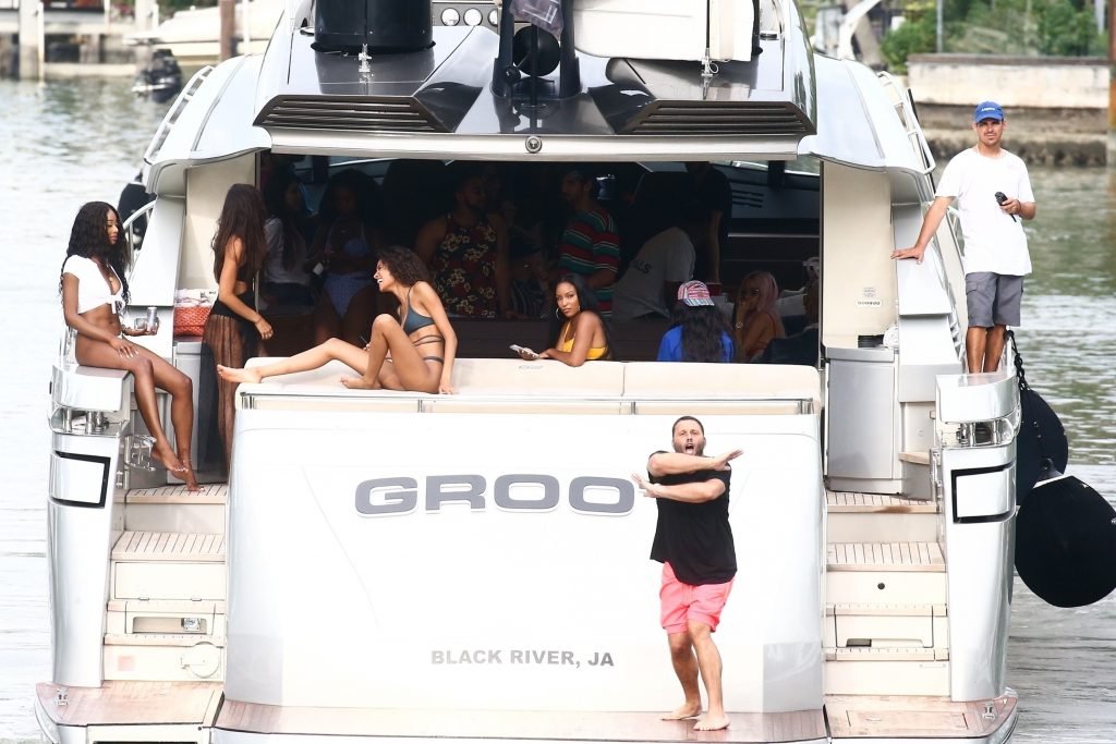 Cindy Bruna mostra le sue curve in bikini con altre ragazze su uno yacht a Miami, 28/07/2018. Le migliori amiche della modella stavano facendo il giro inaugurale sulla nuova barca del magnate dei nightclub Dave Grutman.