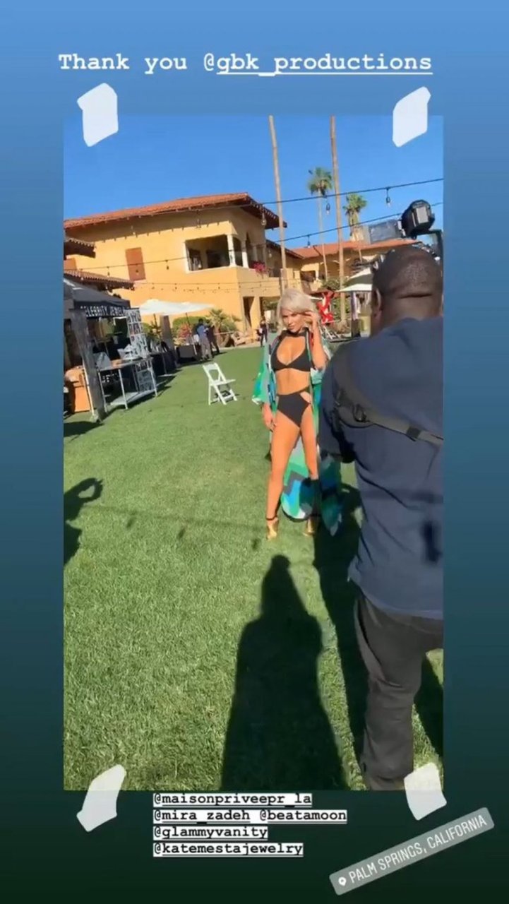 Busty CJ ‘Lana’ Perry arriva alla festa di Coachella a Indio, 12/04/2019. La star della WWE di 34 anni ha mostrato il suo seno indossando un bikini nero.