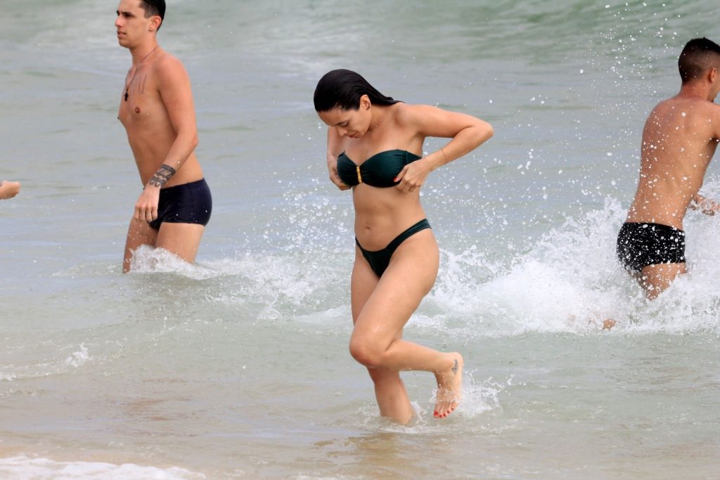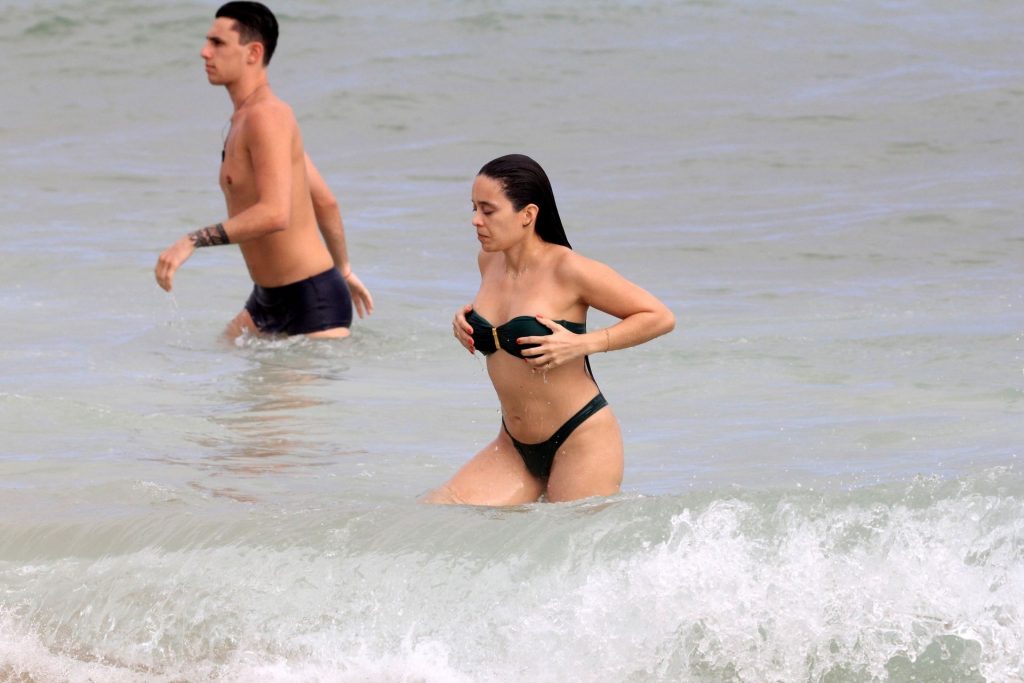 Marcelo e Clarisse mostrano i loro fisici tonici in minuscoli costumi da bagno mentre si godono la giornata in spiaggia e giocano a pallavolo.