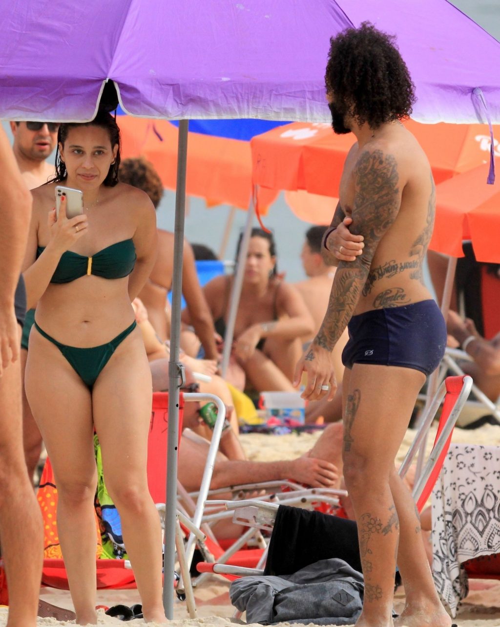 Marcelo Vieira da Silva Junior si gode una giornata in spiaggia con sua moglie Clarisse Alves e la loro famiglia – Rio de Janeiro, 27/12/2019.