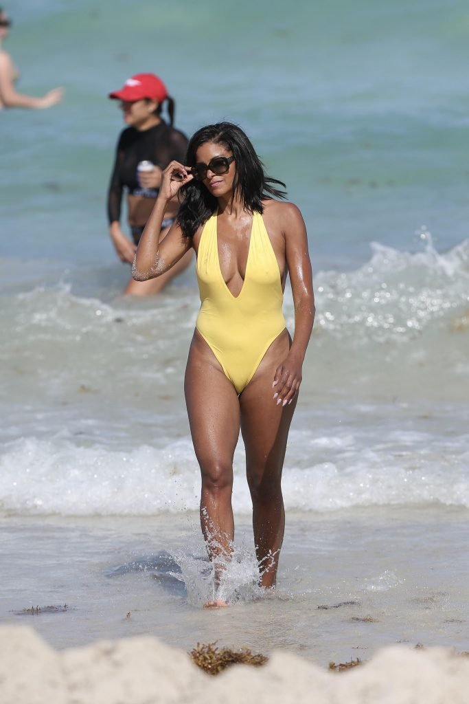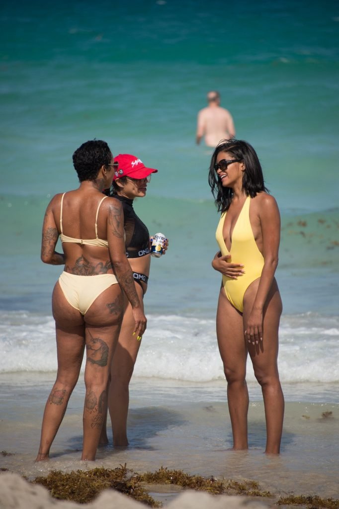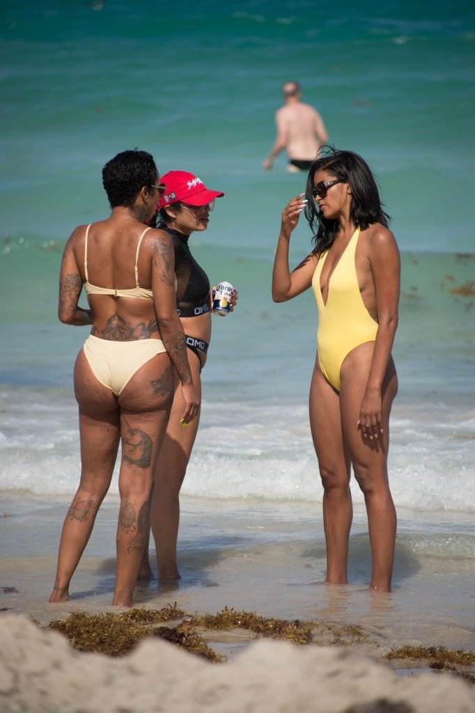 Claudia Jordan (Real Housewives of Atlanta) celebra il suo weekend di compleanno con gli amici sulla spiaggia di Miami Beach, 13/04/2018. Claudia Jordan è un’attrice americana, modella, star della TV reality. Età – 45. Nata – 12 aprile 1973.