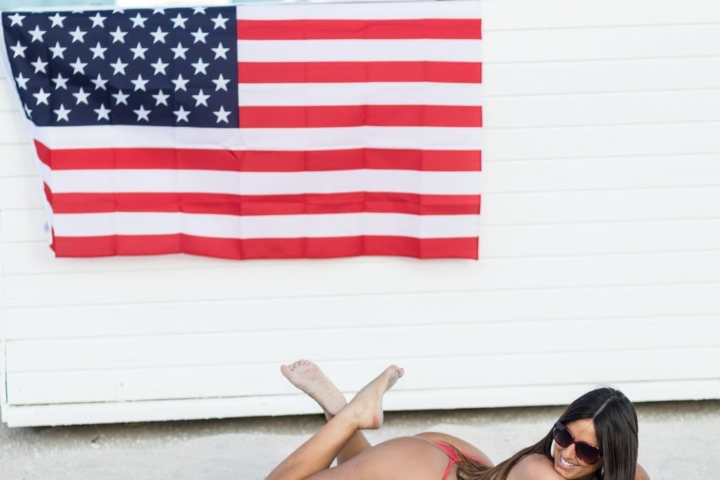 La modella americana e star della TV reality Claudia Romani celebra il suo diventare cittadina americana indossando un bikini a perizoma rosso e blu davanti a una bandiera americana, 04/02/2019. Ha condiviso la sua gioia per aver ottenuto la cittadinanza sui social media. Claudia sorrideva posando a South Beach con la bandiera mentre mostrava a tutti le sue grazie.