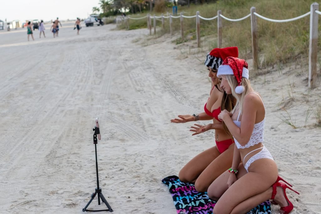Reality TV stars Claudia Romani and Jessica Edström (Pessi) sono state viste posare per un servizio fotografico a tema natalizio a South Beach, il 17/12/2018. Le modelle sono amiche da anni da quando entrambe vivevano in Danimarca. Indossavano lingerie rossa e bianca sexy e rivelatrice, tacchi alti e grandi sorrisi.