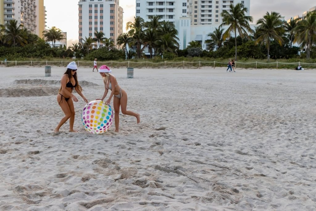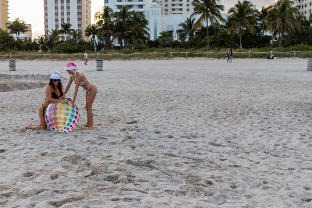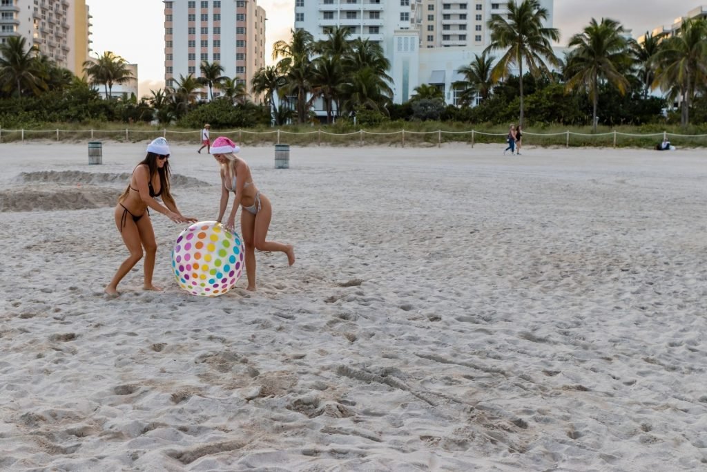 Le amiche modelle Claudia Romani e Jessica Edstrom sono ancora in vena natalizia a South Beach, 26/12/2018. La star italiana dei reality e la star finlandese dei reality, viaggiatrice mondiale, sono state viste divertirsi e giocare con una palla mentre si godevano la loro vacanza sulla spiaggia.