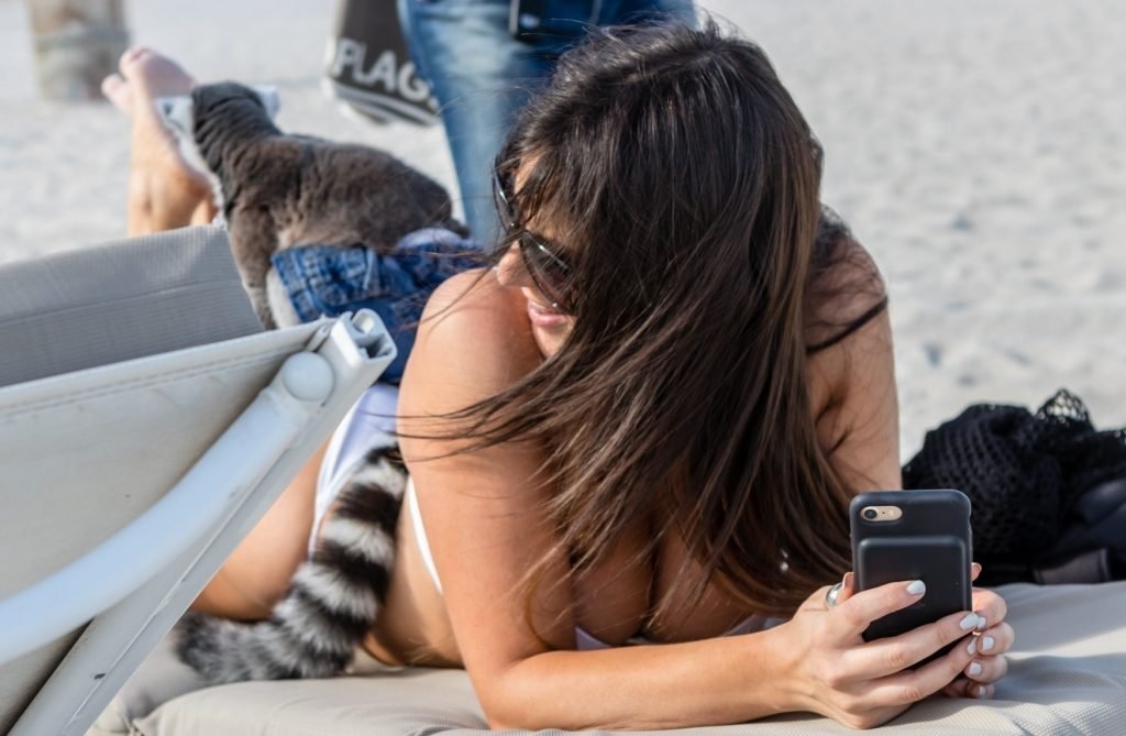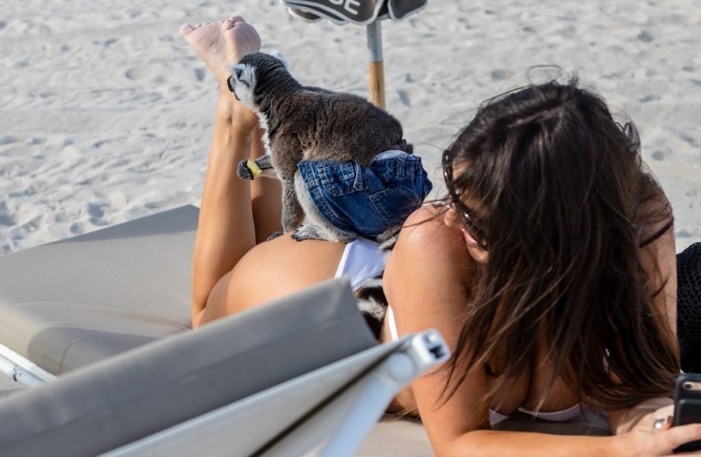 Modella e star della TV reality Claudia Romani (35) è vista a South Beach mentre gioca con un lemure, 21/01/2018.