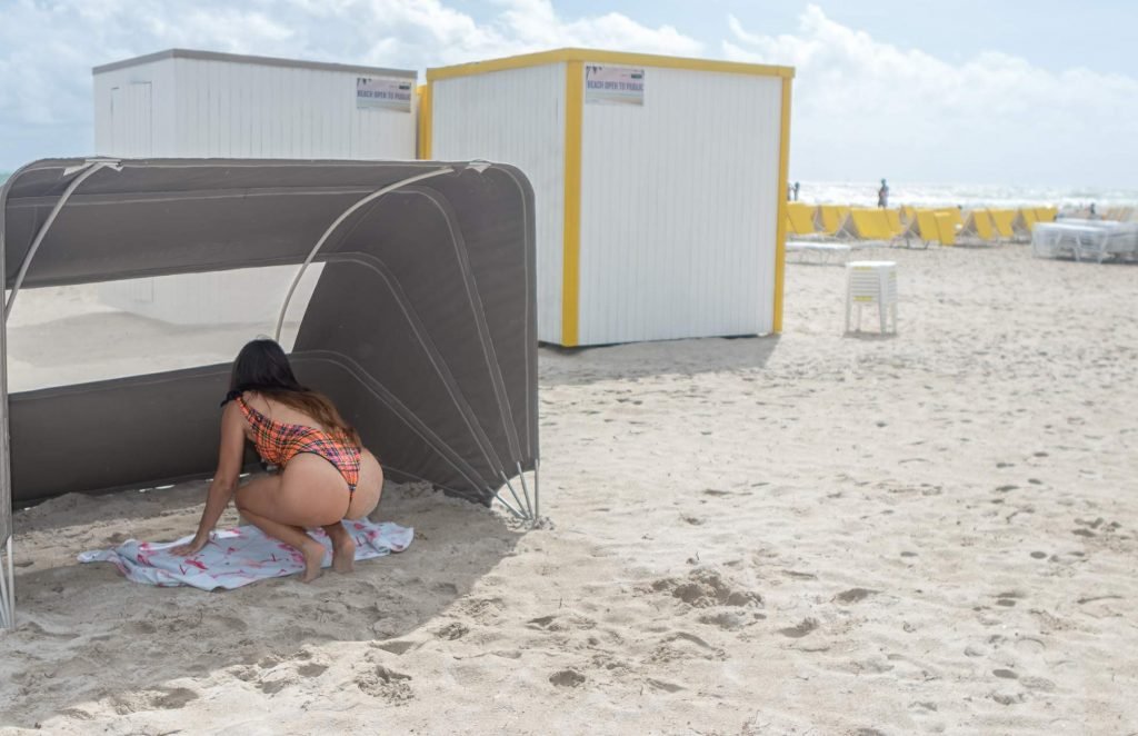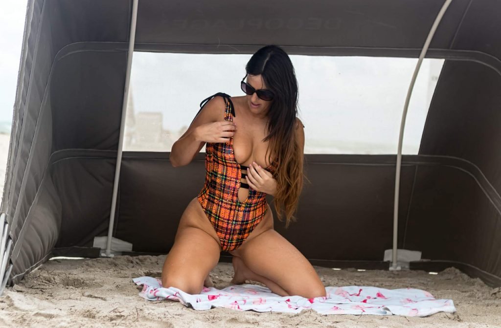 Reality star Claudia Romani (35) mostra le sue curve sulla spiaggia di South Beach, 12/04/2017.