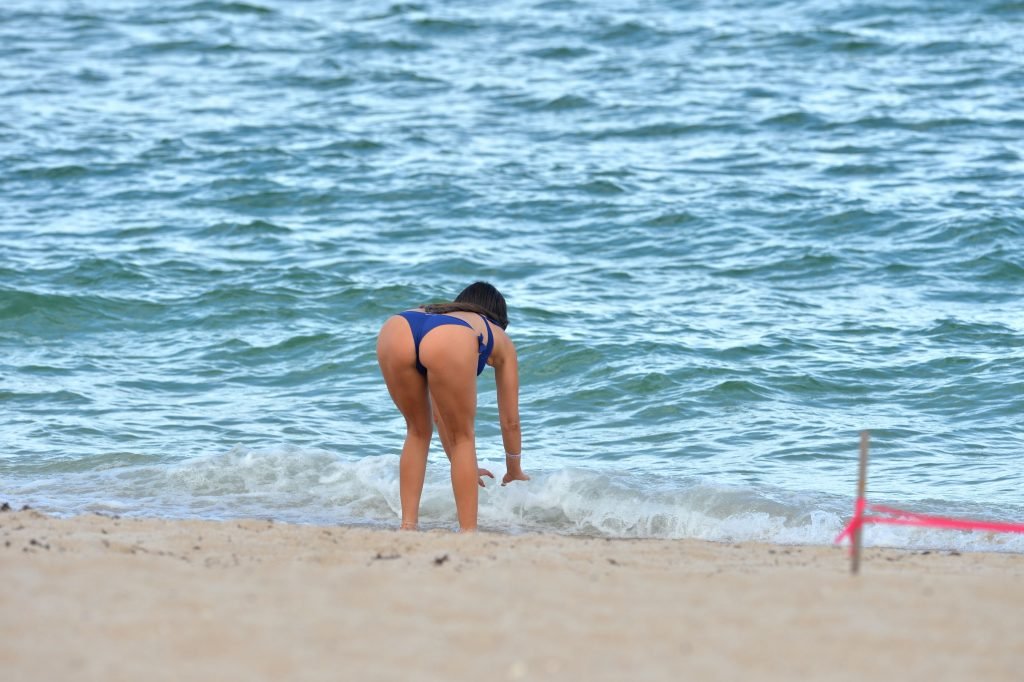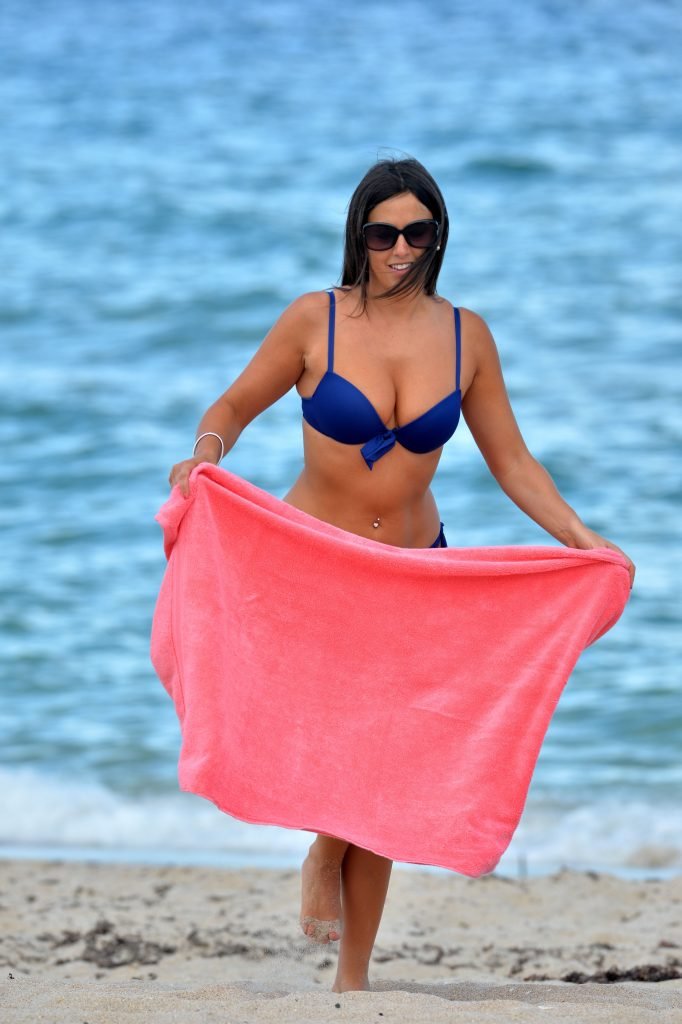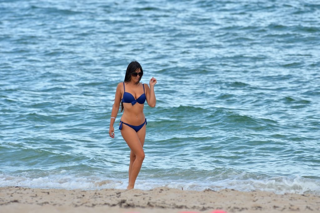 Claudia Romani appare incandescente mentre fa yoga in un minuscolo bikini blu a West Palm Beach, Florida, 30/07/2017. Claudia Romani è una star italiana della TV reality, modella di L’Aquila (Italia). Età – 35 anni.