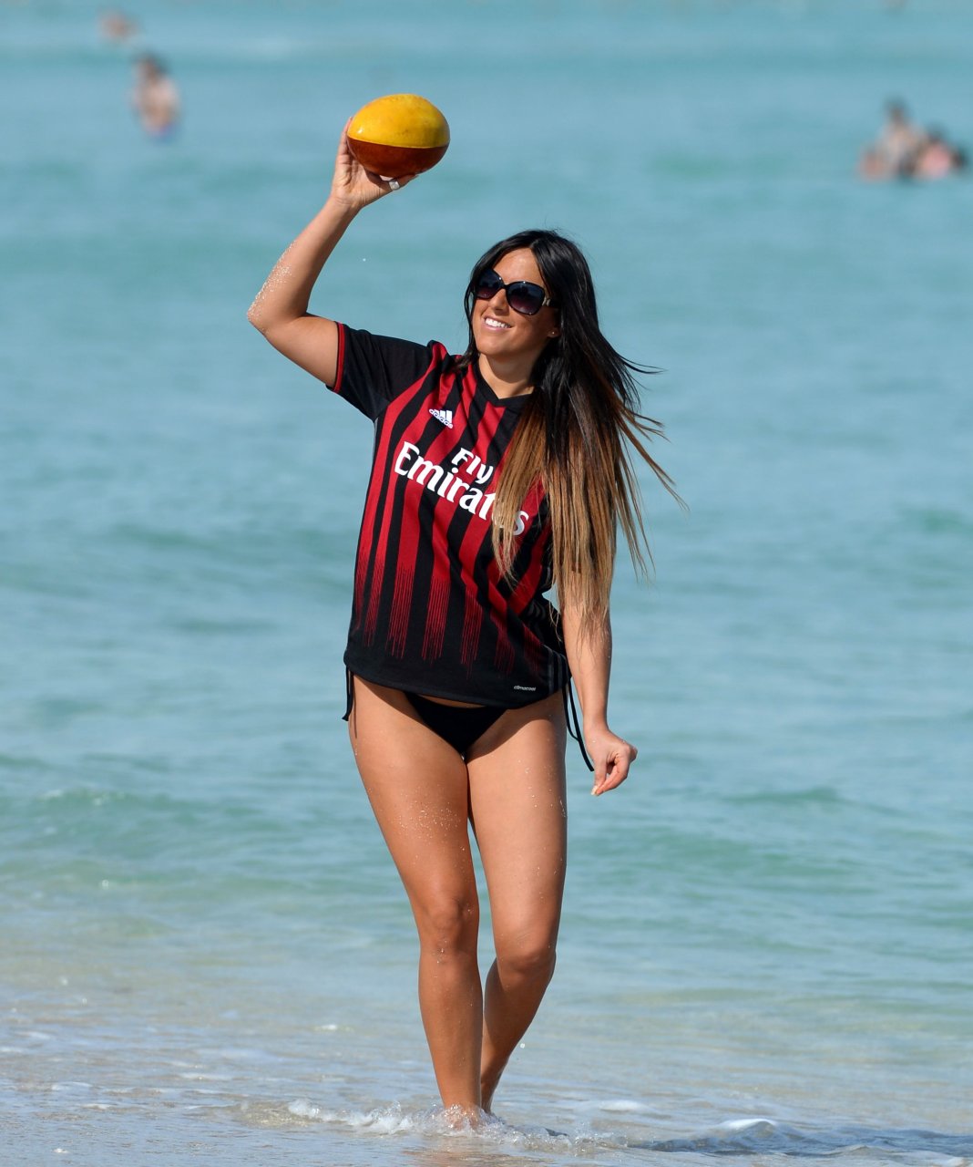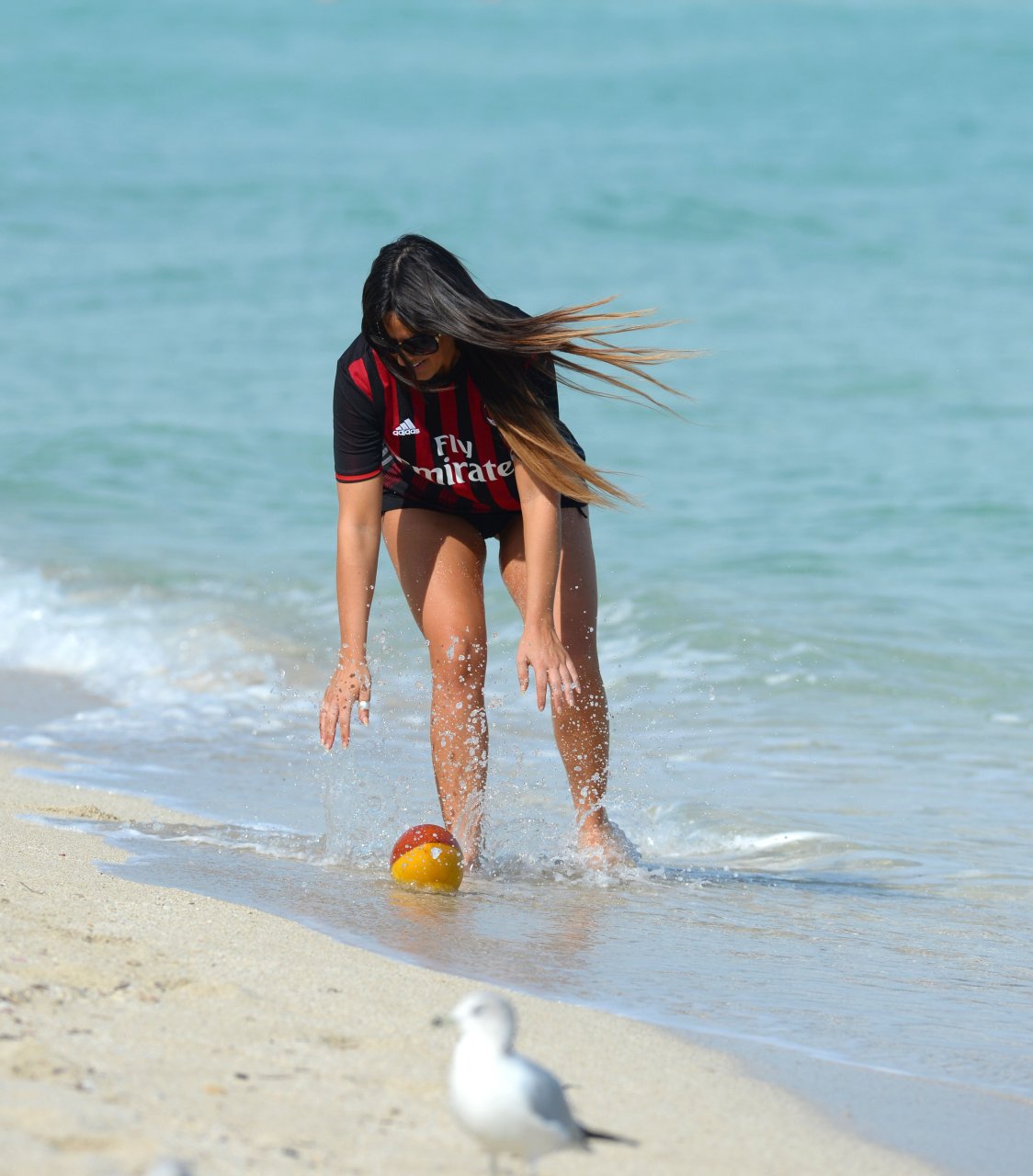 Claudia Romani sostiene il suo club di calcio preferito AC Milan a Miami, 31/01/2017. Claudia Romani è una modella (GQ, Maxim) di L’Aquila (Italia). È nata il 13 aprile 1982. Età: 34