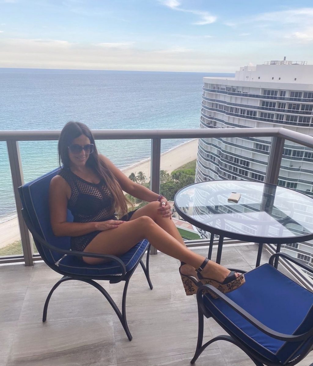 International model Claudia Romani ha trascorso la giornata al resort St Regis a Bal Harbor, 20/07/2020. La personalità televisiva indossava un bikini nero, zeppe e sfoggiava un asciugamano personalizzato. Claudia si è rilassata a bordo piscina e ha posato per foto apparendo in forma e abbronzata nello scenario mozzafiato.