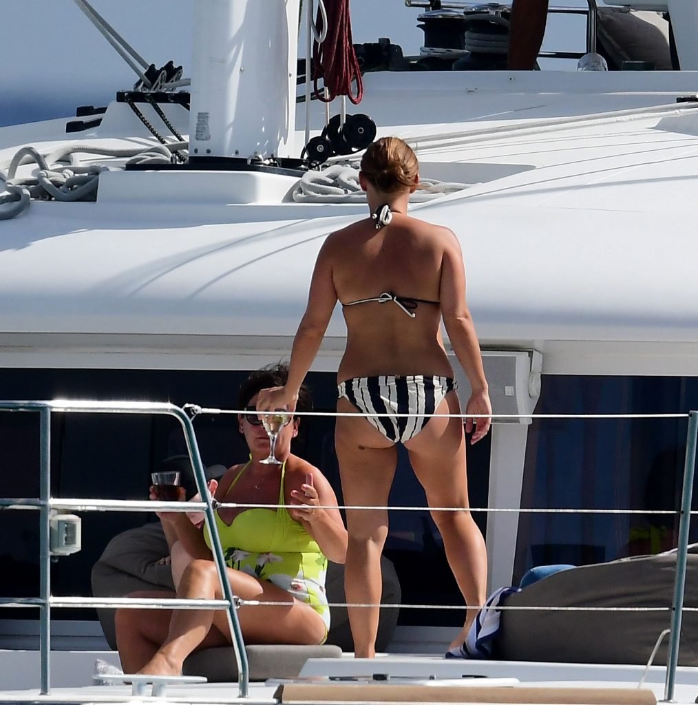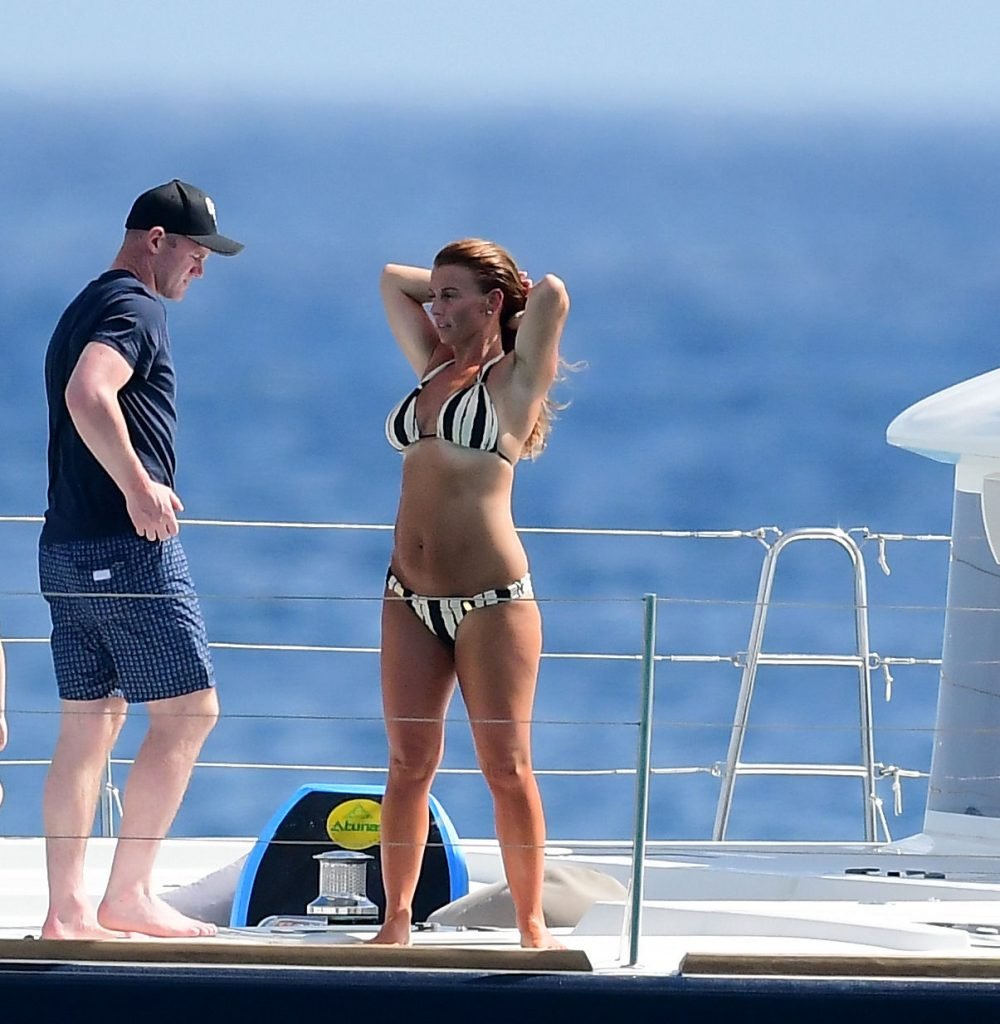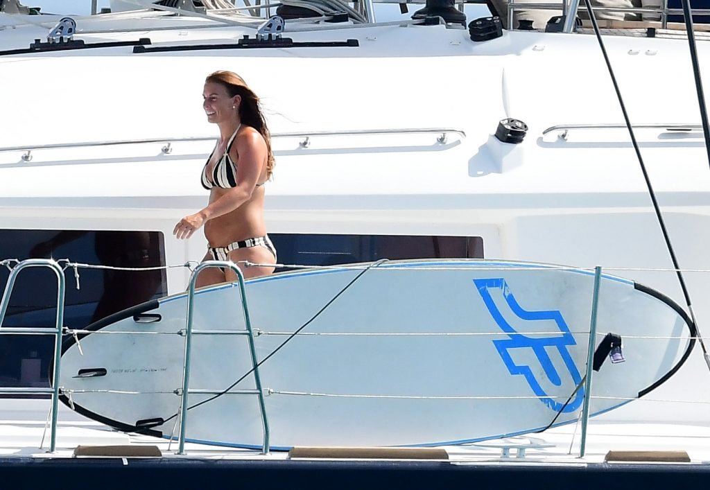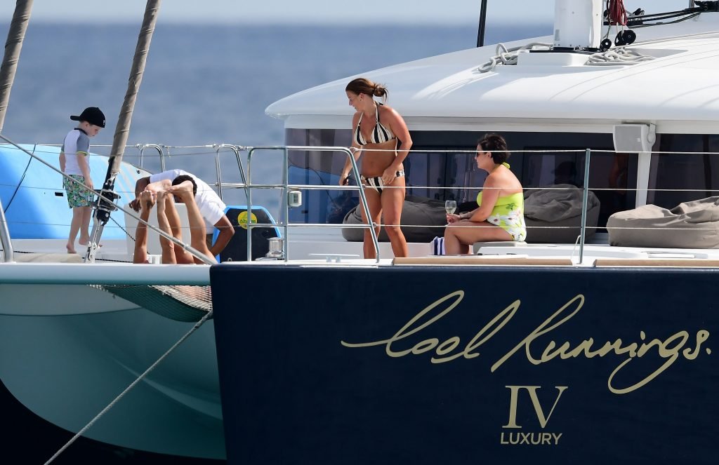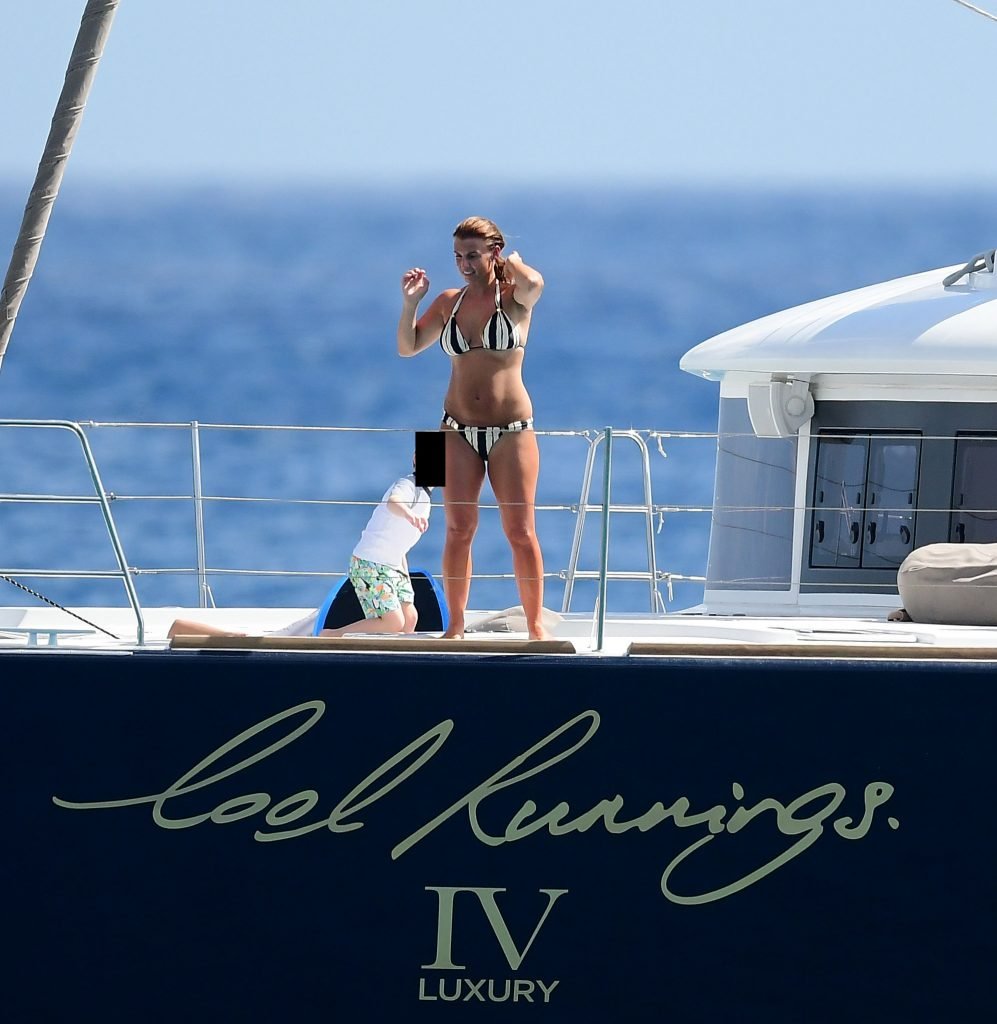 Coleen Rooney e la sua famiglia continuano la loro vacanza a Barbados, 28/05/2018. La giornalista di 32 anni indossava un bikini bianco e nero su uno yacht con il suo famoso marito, la madre e i figli.