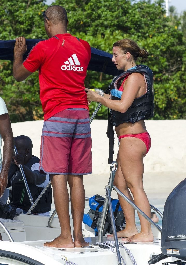 Journalist Coleen Rooney, 32, e la famiglia salgono su una barca a Barbados durante la loro vacanza a Bridgetown da casa, 25/05/2018. Il gruppo si gode le acque calde mentre partecipano all’isola.
