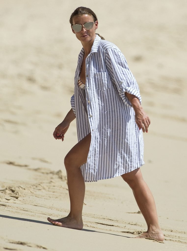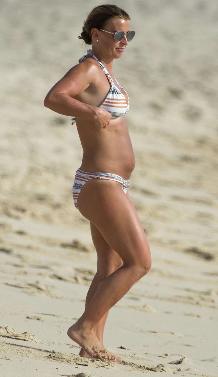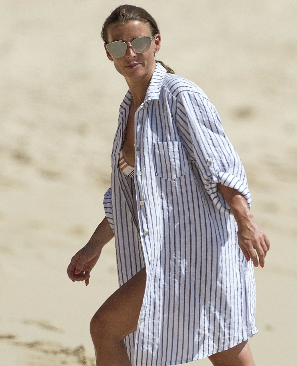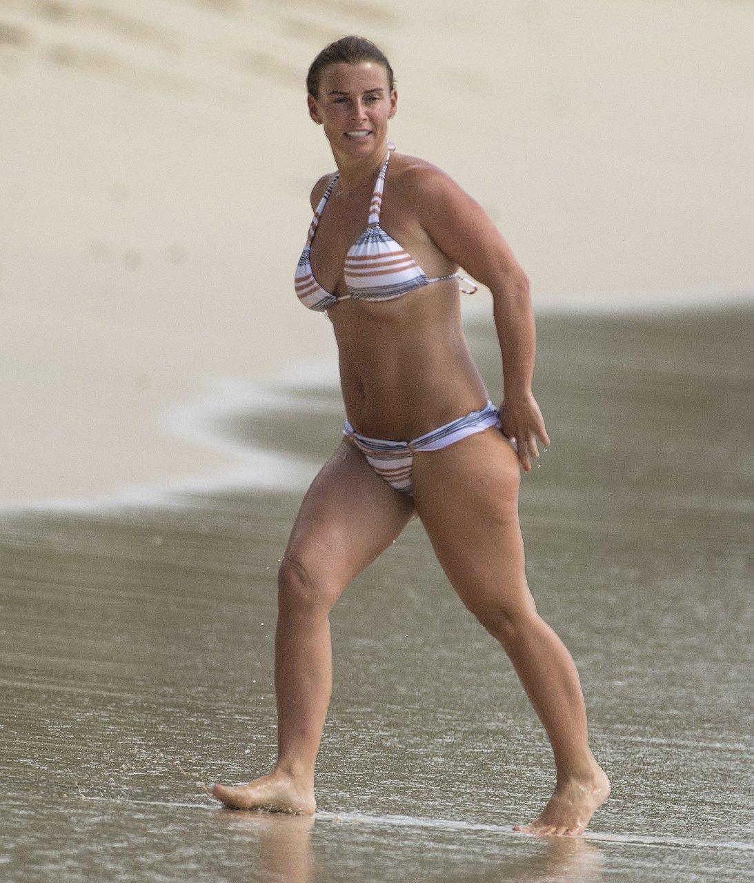 Coleen Rooney e la sua famiglia si godono il caldo sole nell’oceano durante una vacanza a Bridgetown, 24/05/2018. La WAG di 32 anni ha mostrato le sue curve con un bikini a fantasia mentre schizzava nell’acqua.