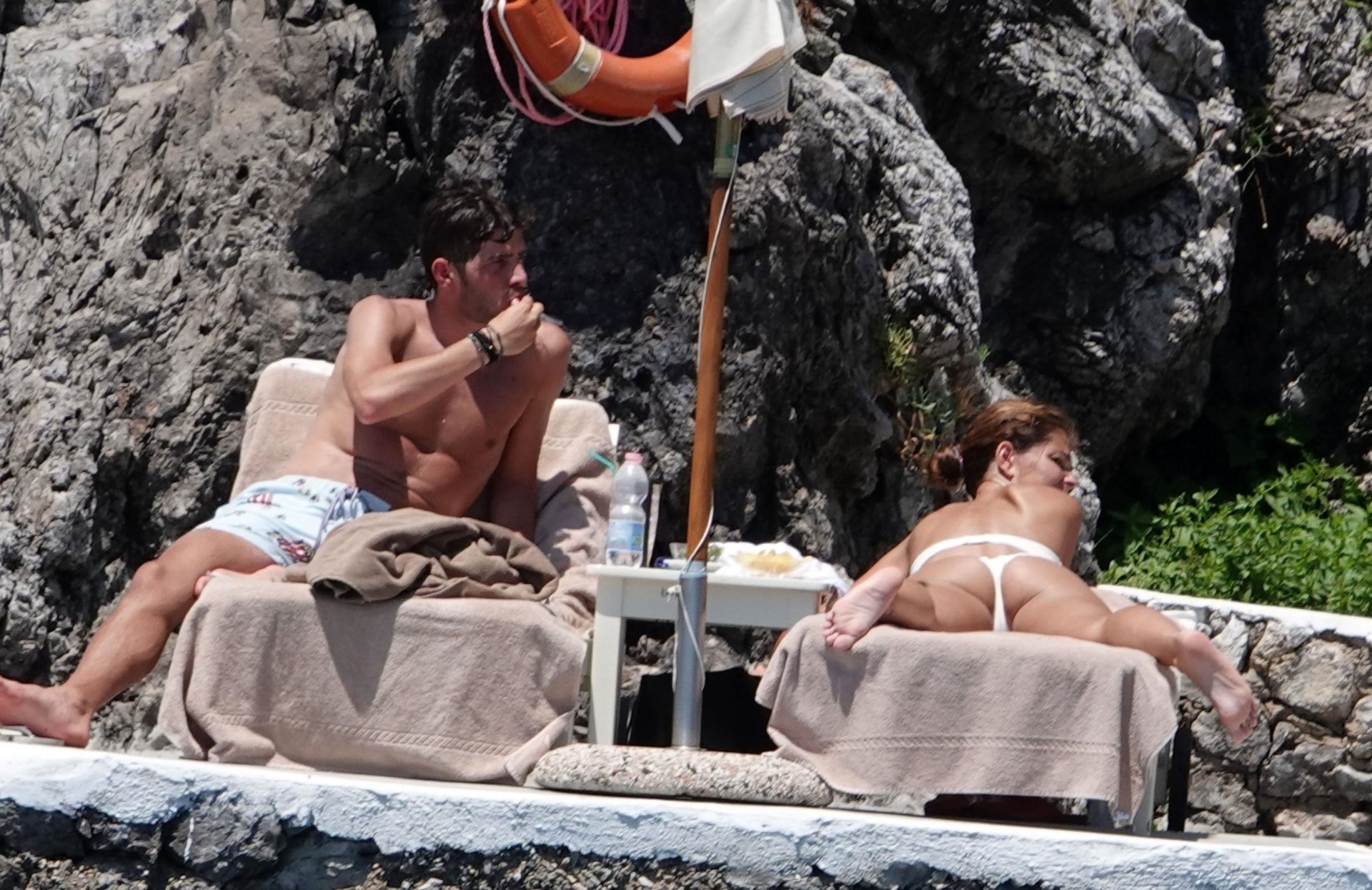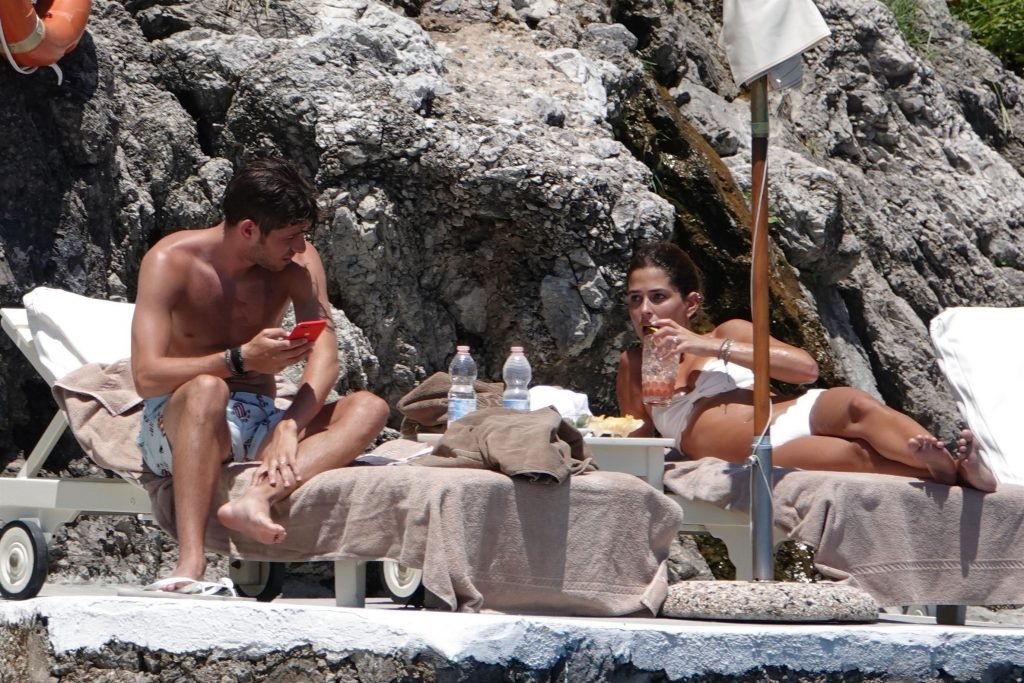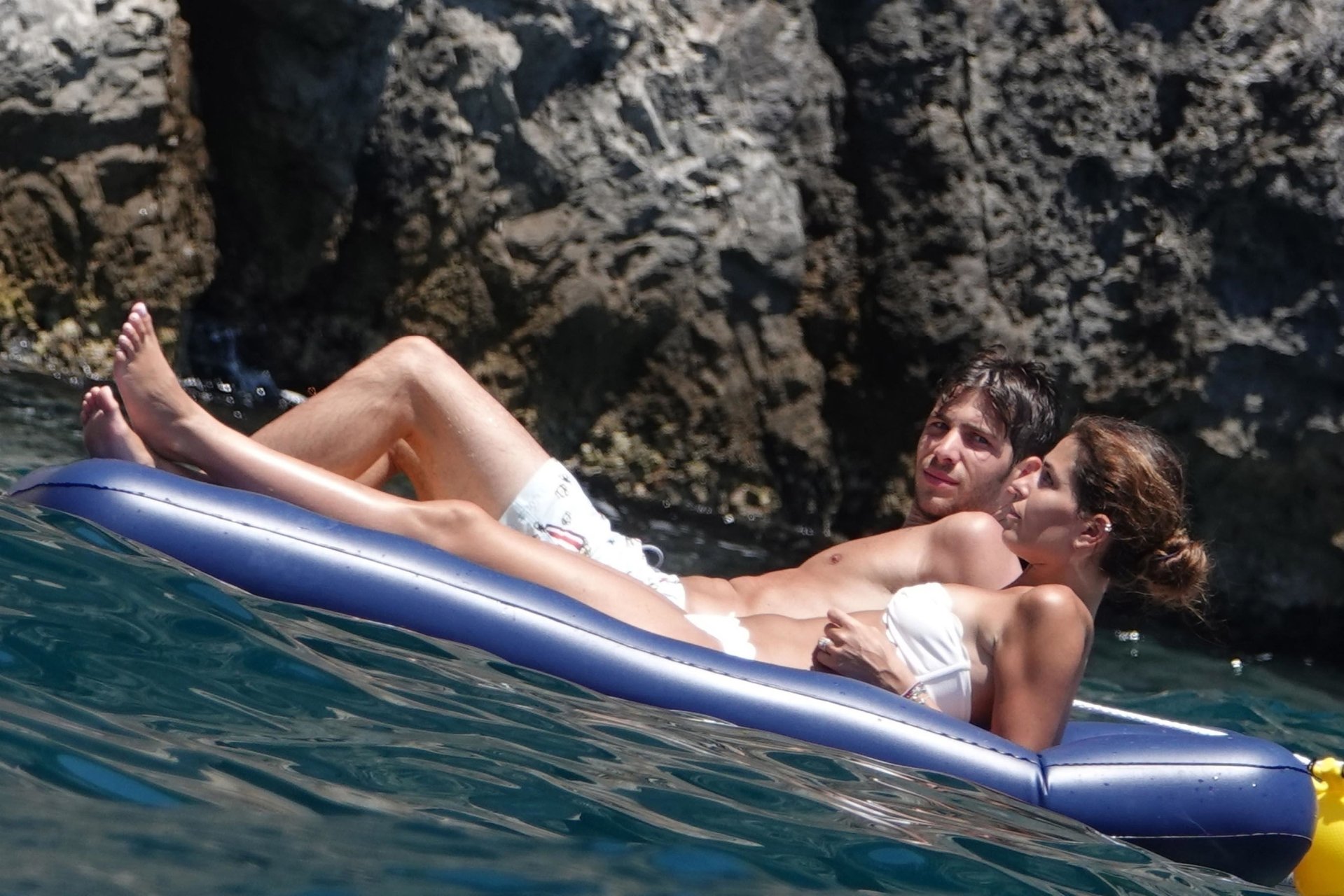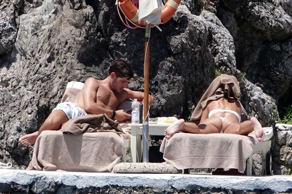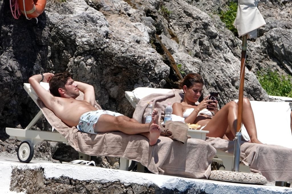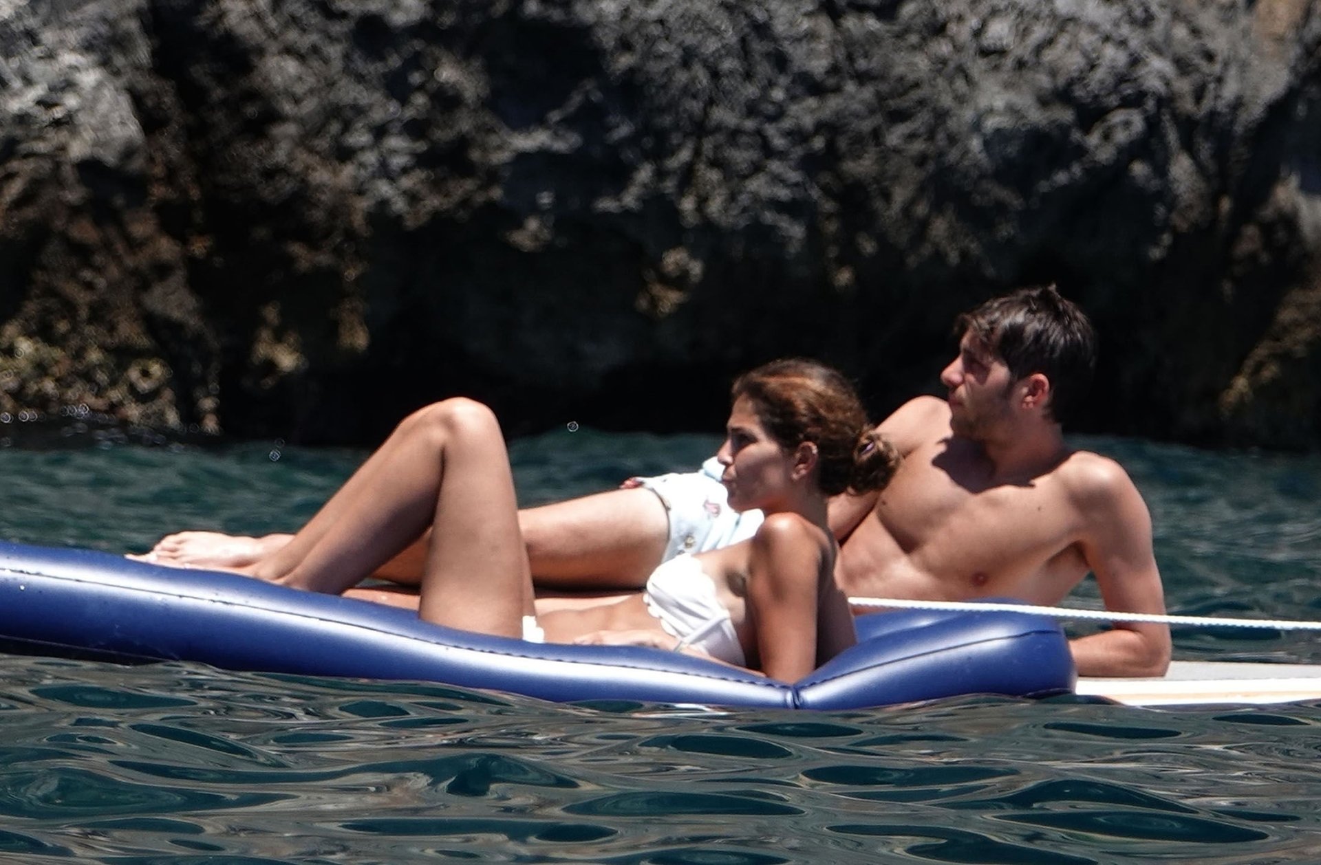 Il calciatore del Barcelona Sergi Roberto che si gode un po’ di tempo libero durante la sua pausa estiva nonostante non sia stato incluso nella squadra spagnola per la Coppa del Mondo è fotografato con la sua sexy moglie e modella Coral Simanovich (26) in vacanza sulla Costiera Amalfitana, 21/06/2018.