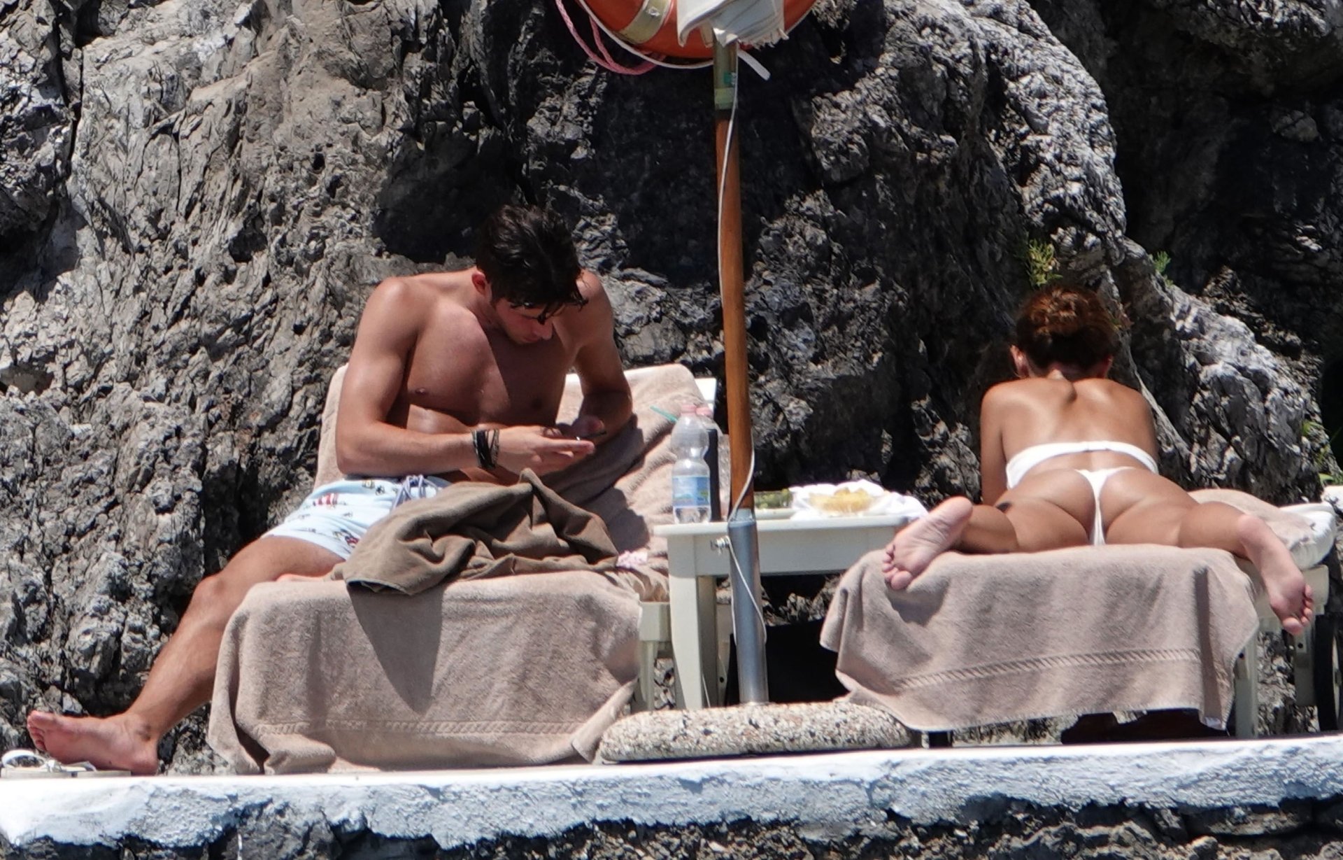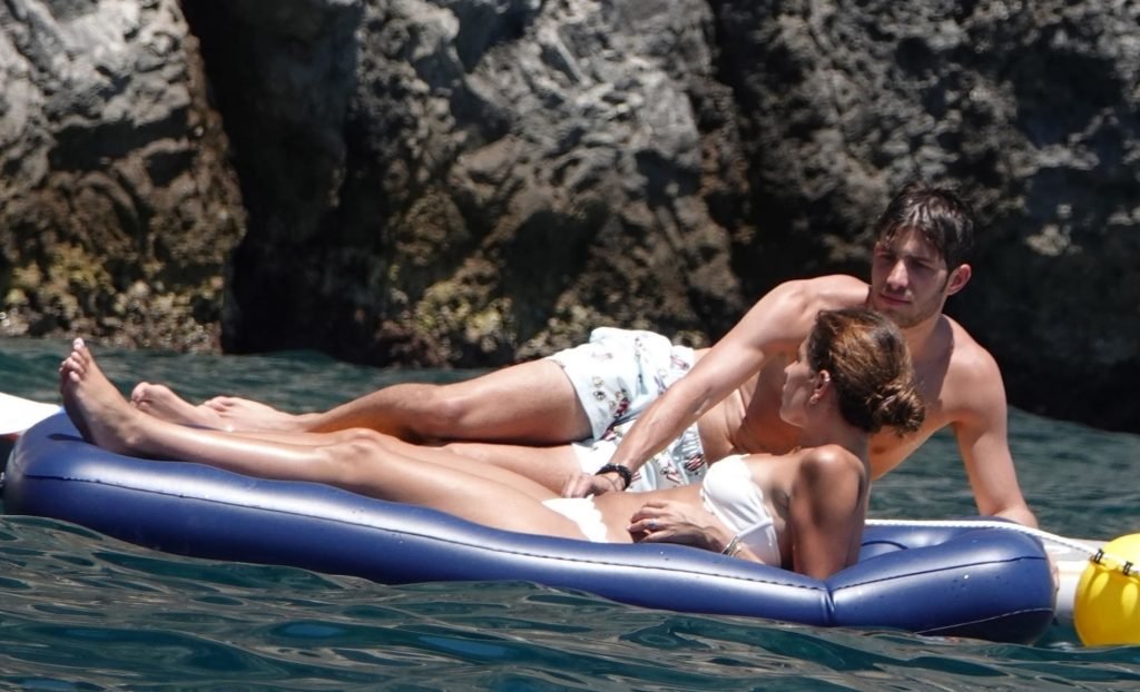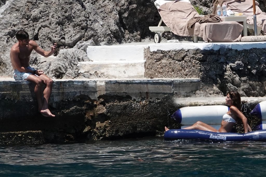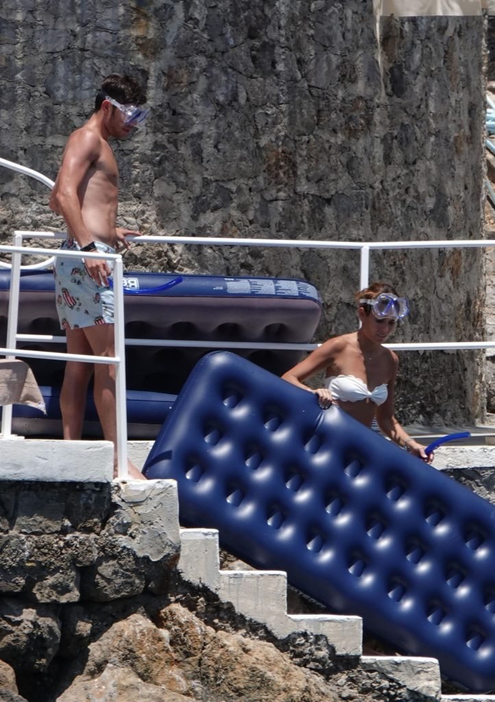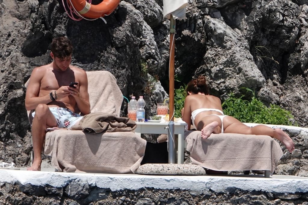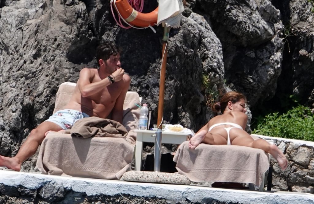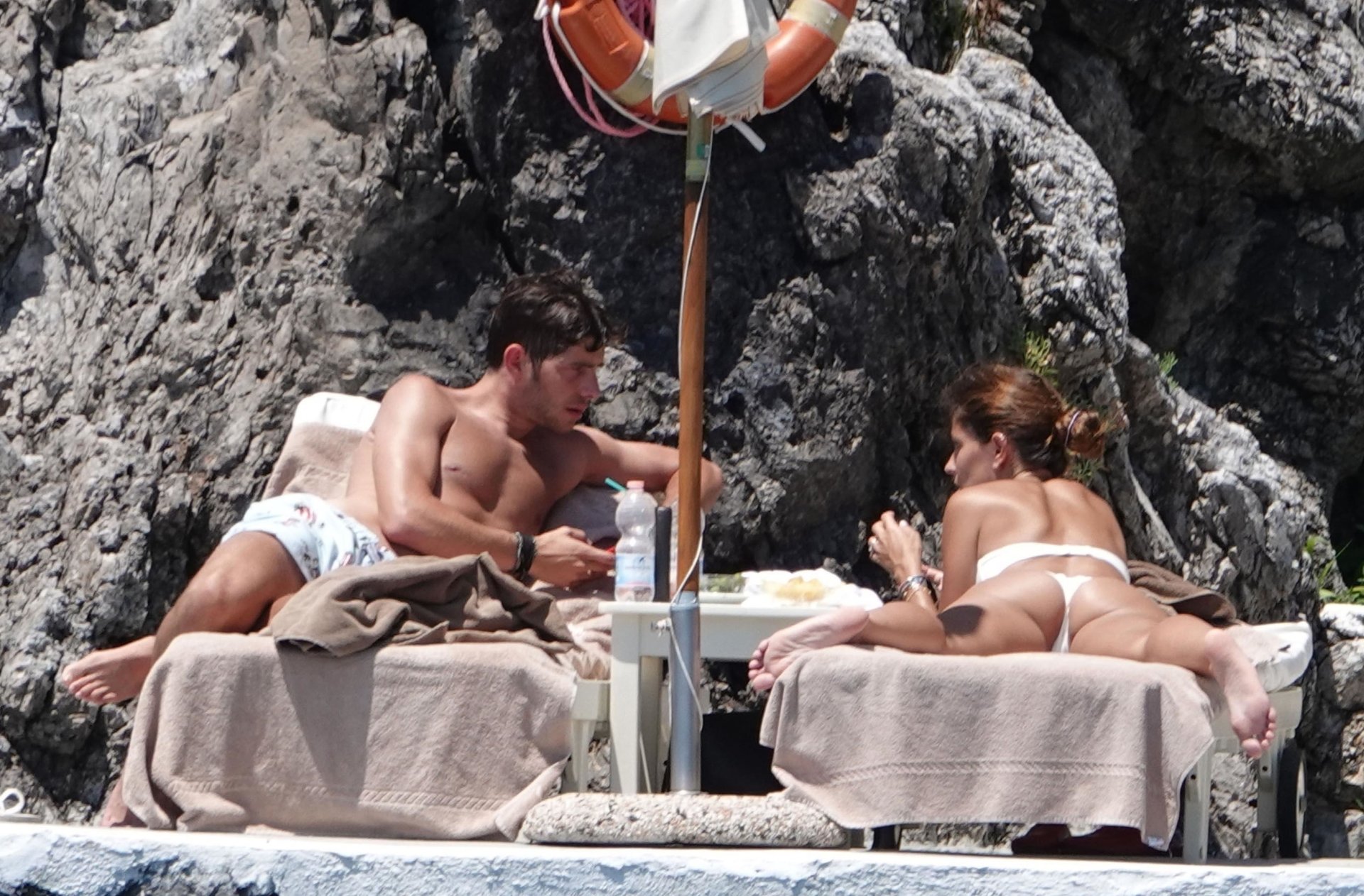 Il calciatore del Barcelona Sergi Roberto che si gode un po’ di tempo libero durante la sua pausa estiva nonostante non sia stato incluso nella squadra spagnola per la Coppa del Mondo è fotografato con la sua sexy moglie e modella Coral Simanovich (26) in vacanza sulla Costiera Amalfitana, 21/06/2018.
