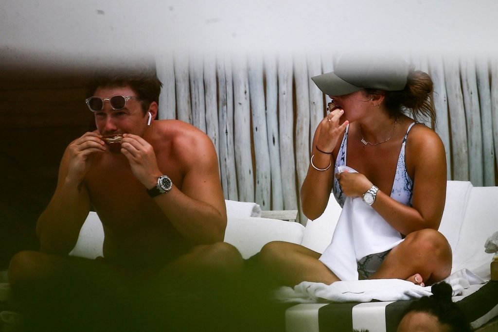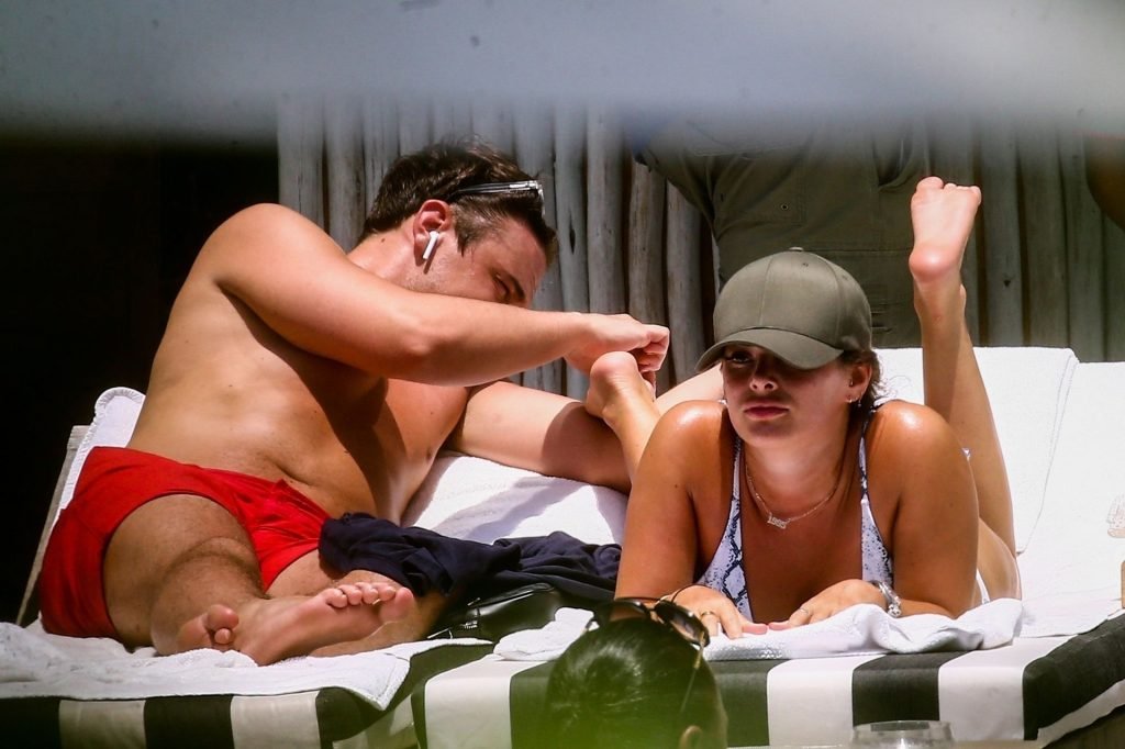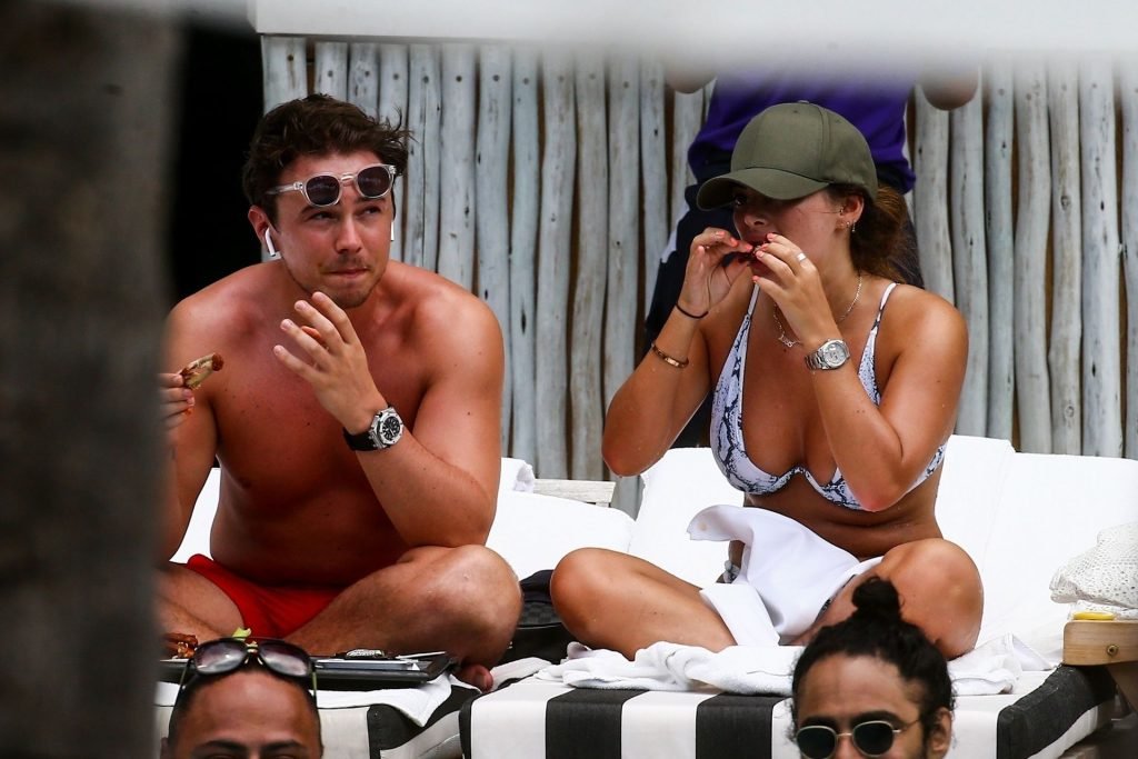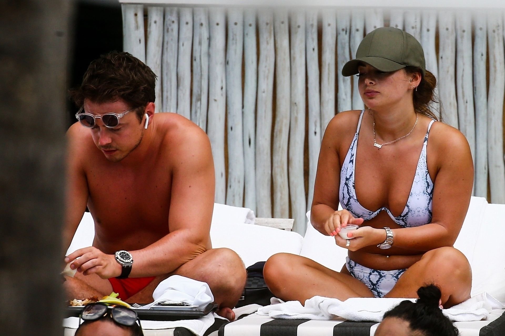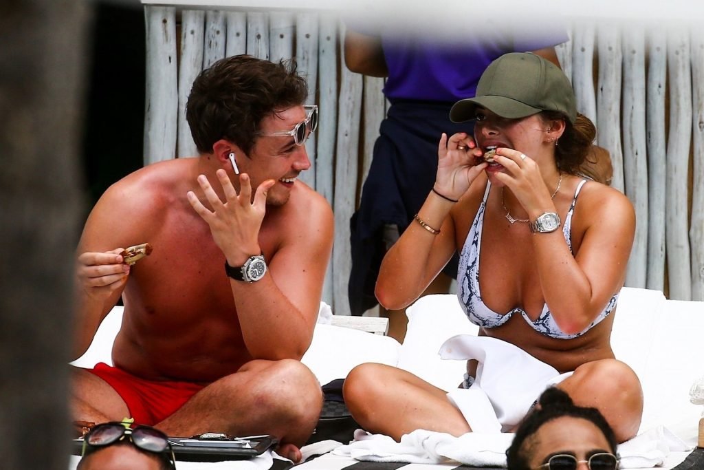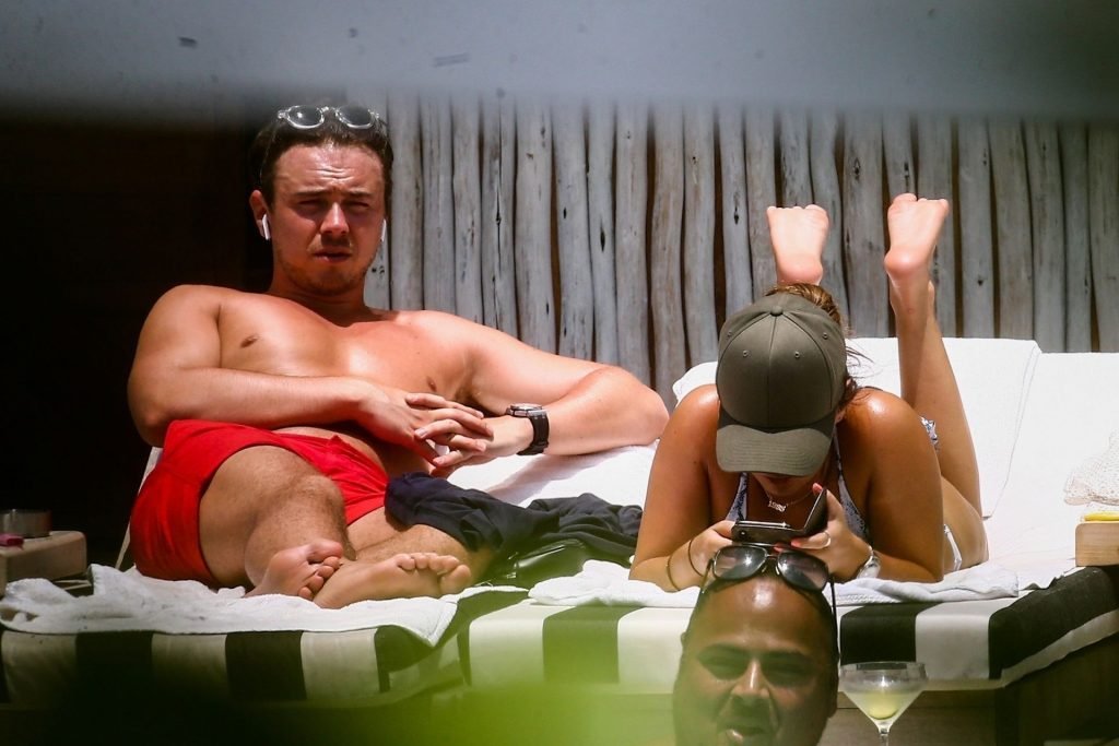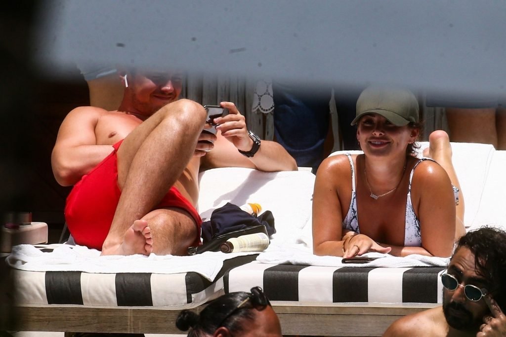 Courtney Green di TOWIE e il fidanzato Calum Bushby si godono una vacanza in spiaggia a Miami, 09/06/2019.