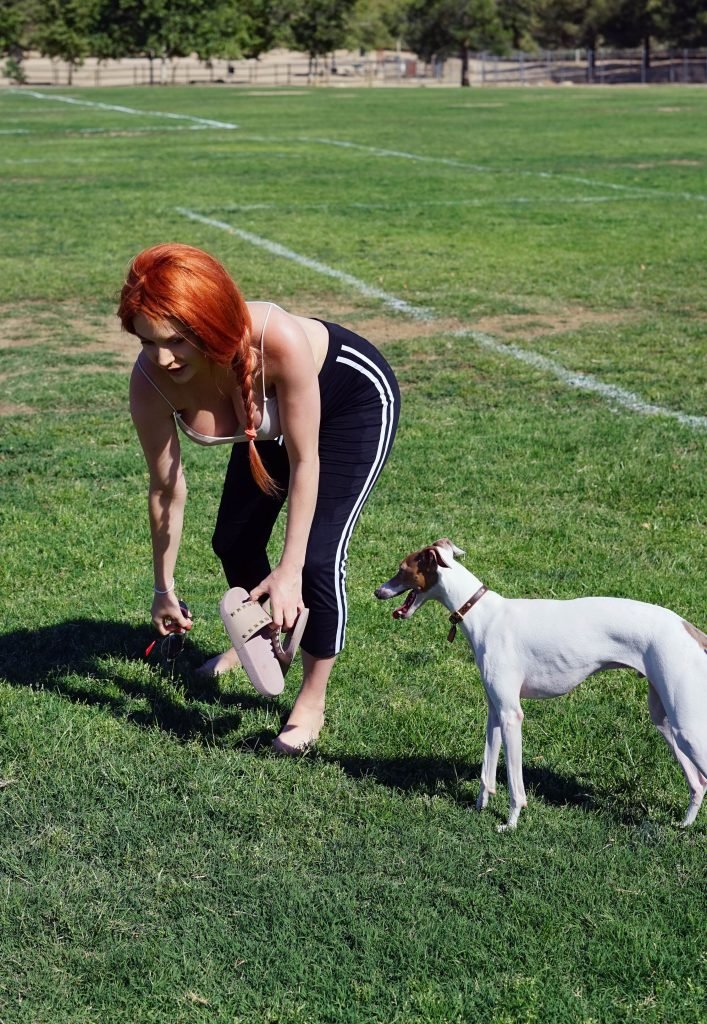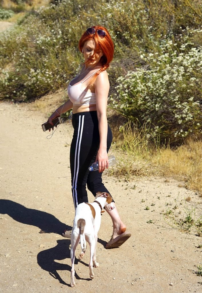 Courtney Stodden (23) si rinfresca durante un’escursione nelle colline di Hollywood, 14/06/2018. Courtney era accompagnata dal suo fidato levriero italiano cappuccino. Ha recentemente pubblicato un nuovo singolo ‘Me Too’ che riflette sulle sue esperienze con aggressioni sessuali.