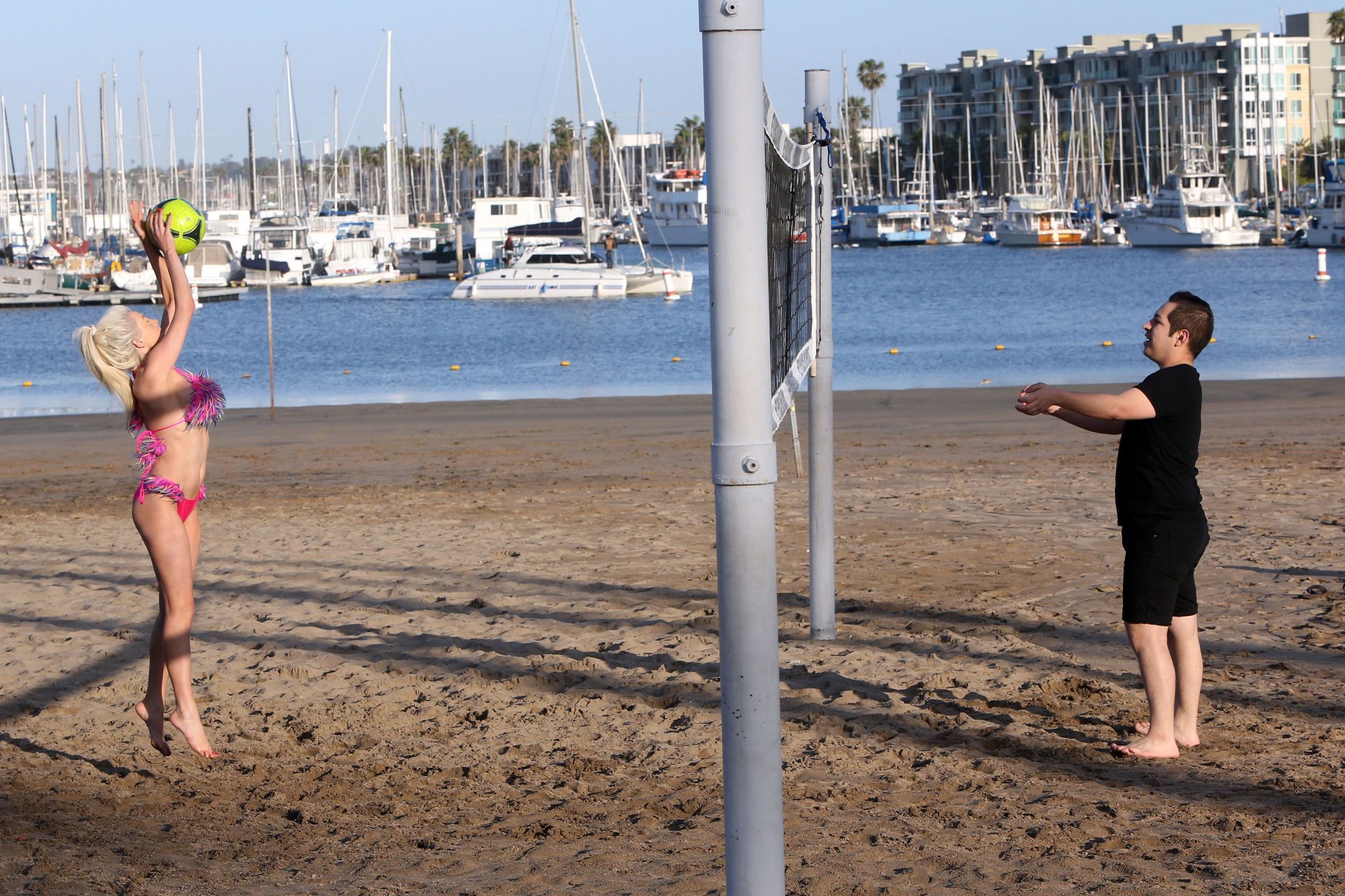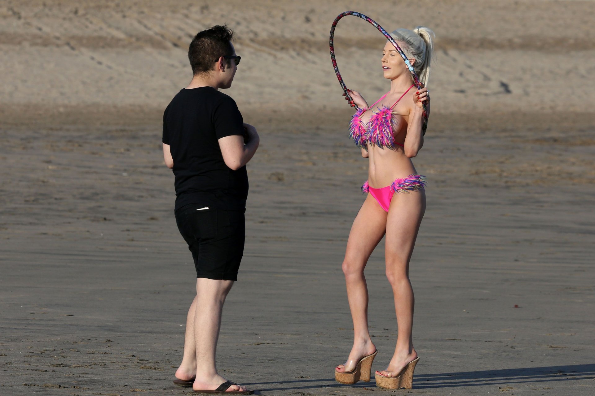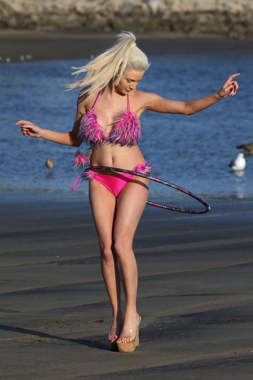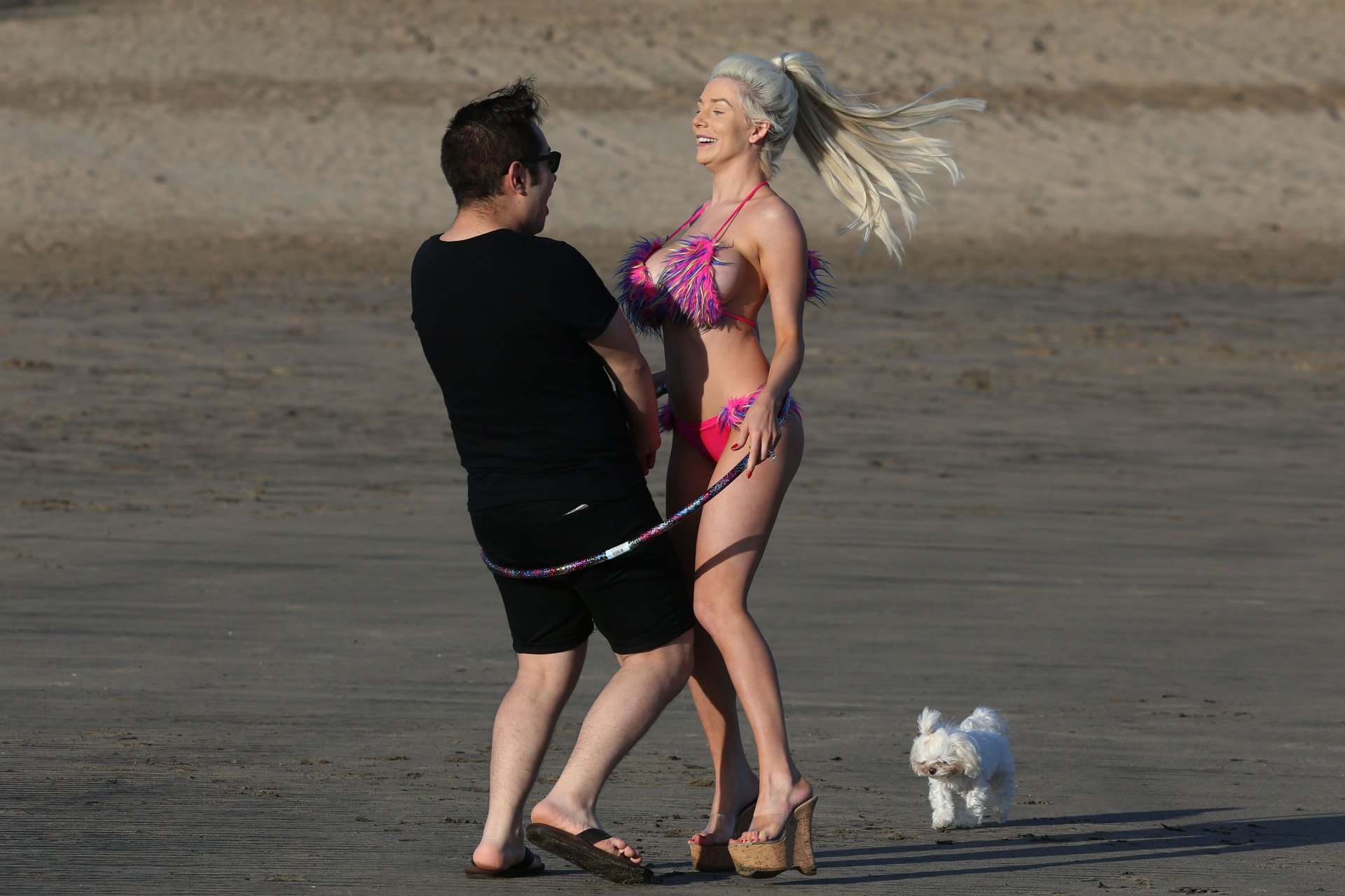 Courtney Stodden si reca in spiaggia con un bikini rosa insieme al suo cane e a uno sconosciuto strano a Los Angeles, 23/03/2016. Courtney Stodden è una concorrente americana di reality show. Età 21 anni (29 agosto 1994). Altezza 160 cm.