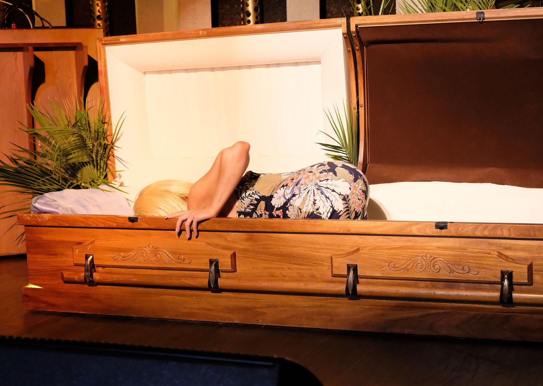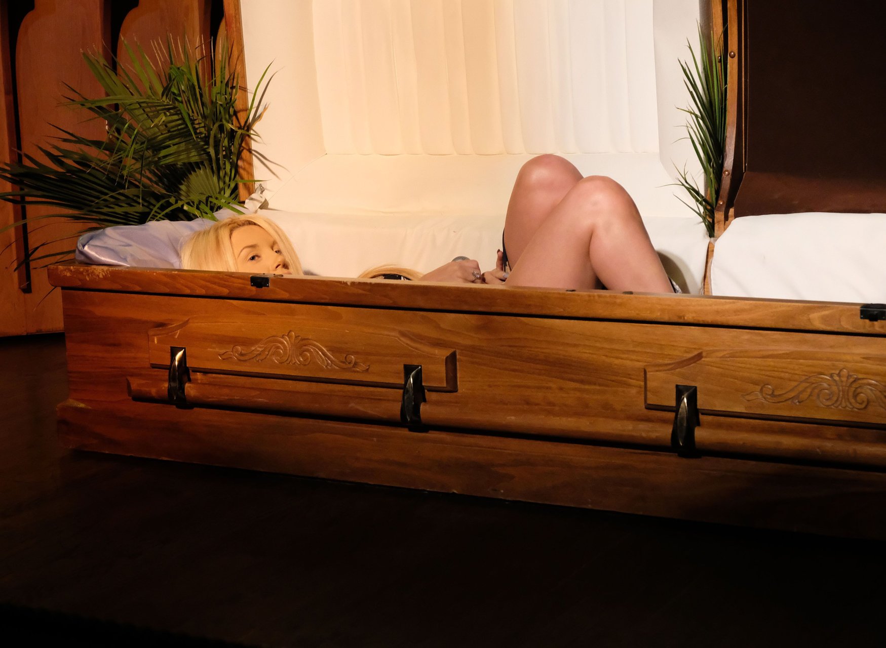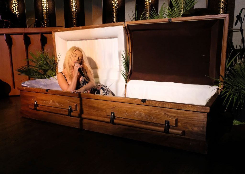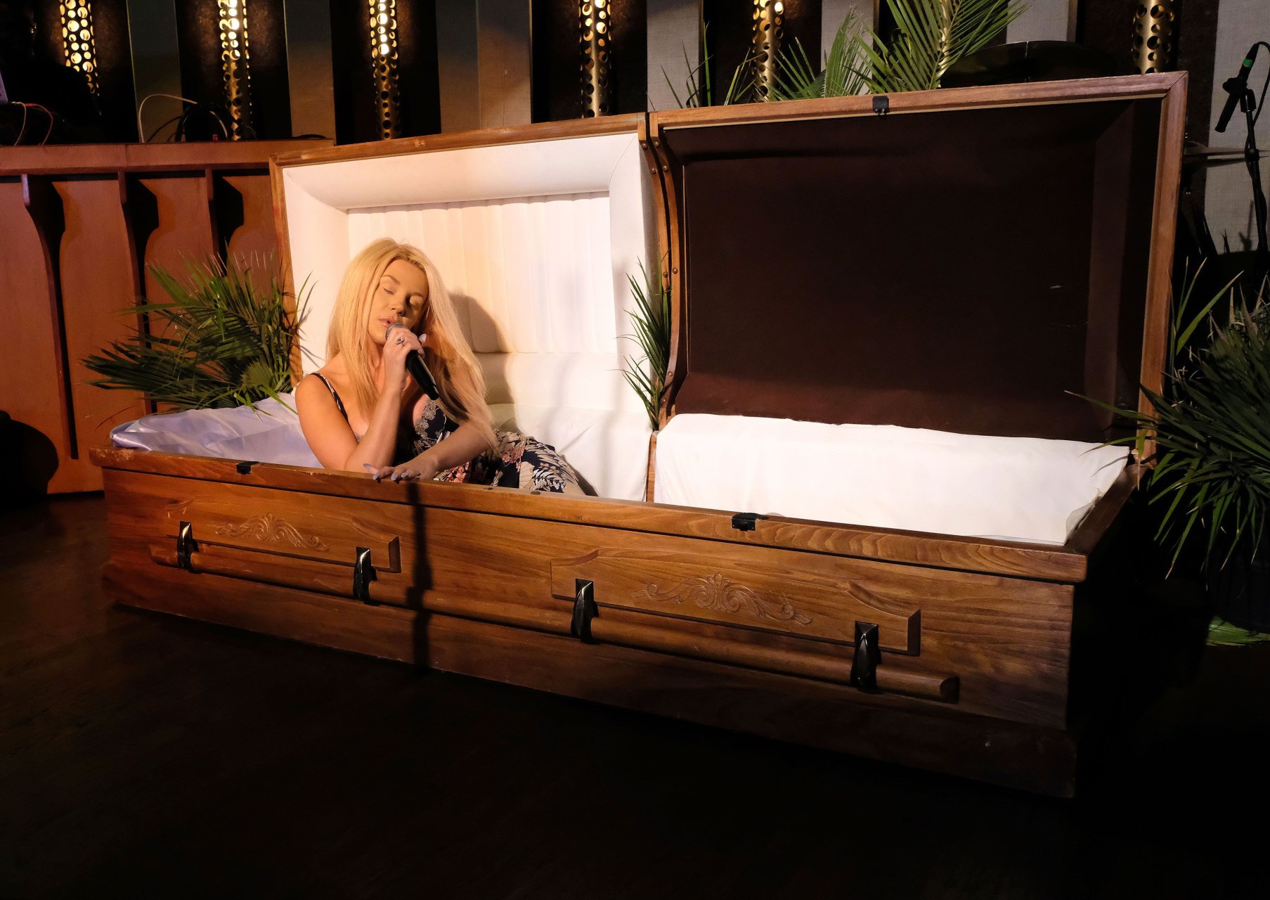 Busty Courtney Stodden ha registrato un video strano in una bara per la sua esibizione al Pepperment Club di Los Angeles, 08/03/2018.