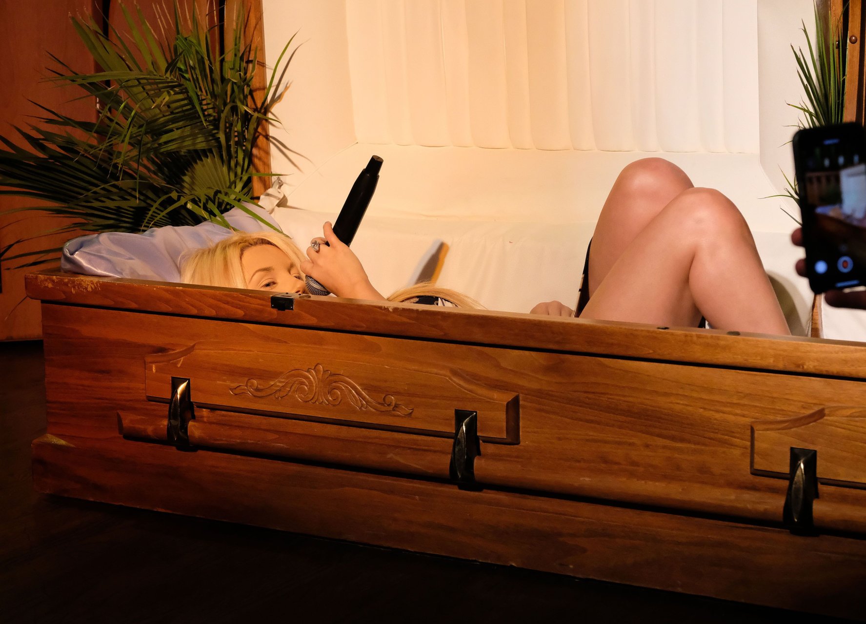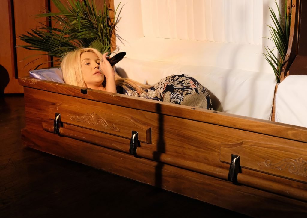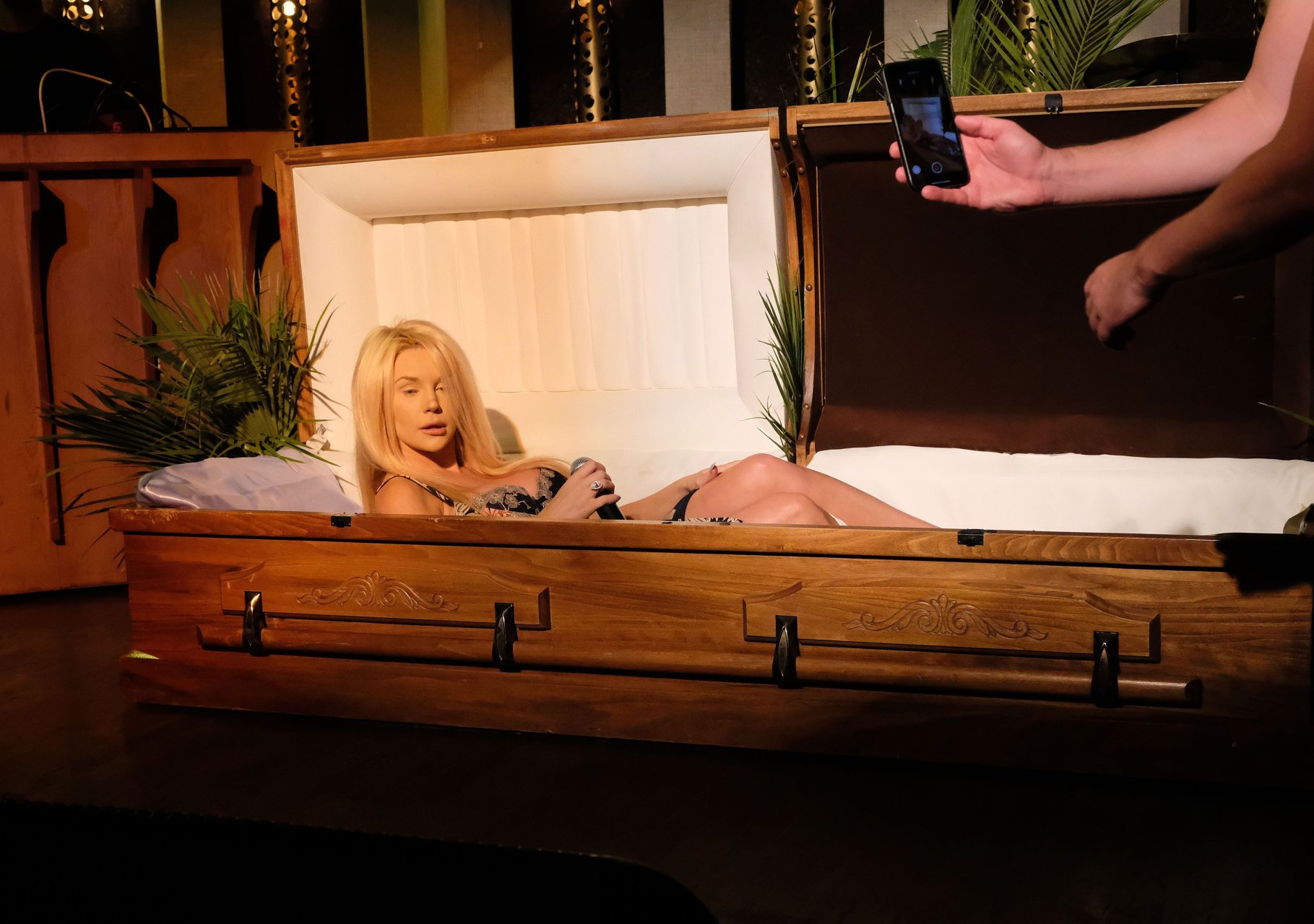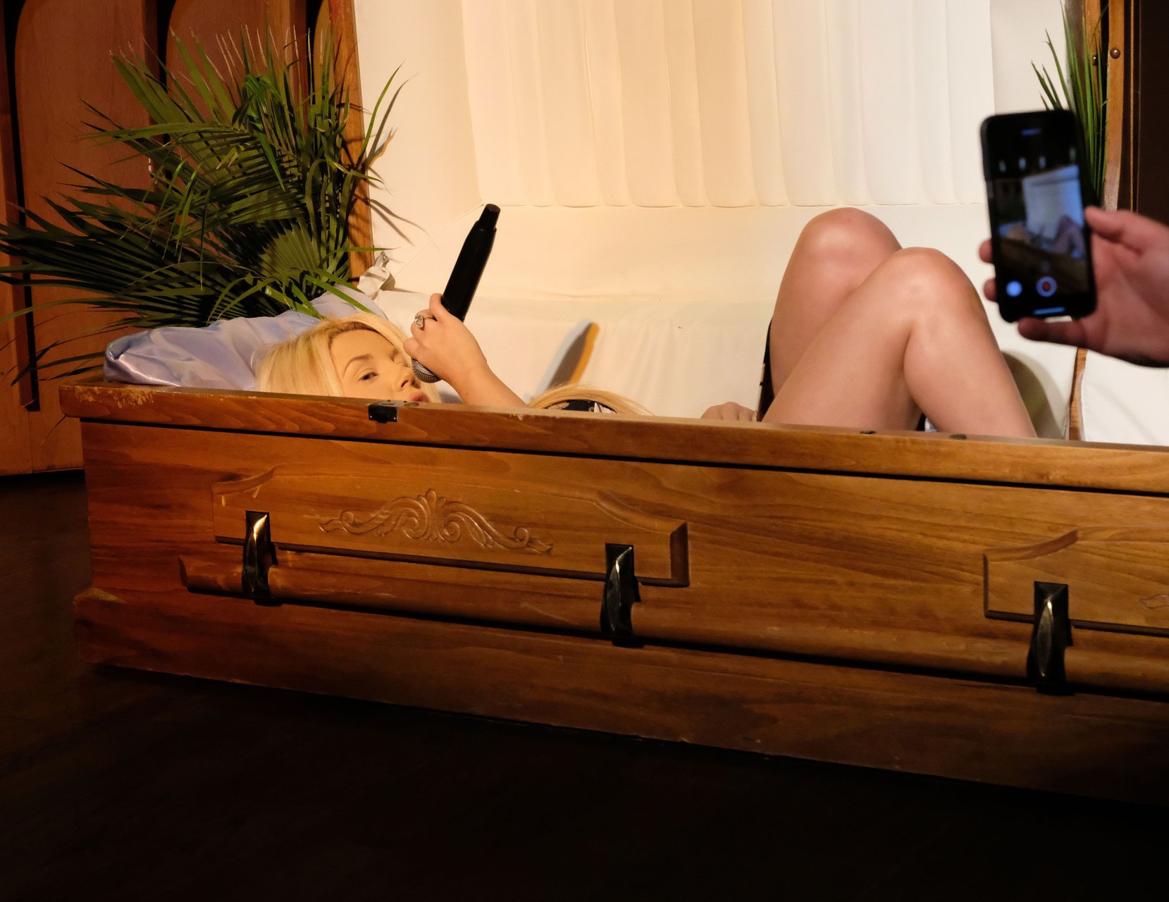 Busty Courtney Stodden ha registrato un video strano in una bara per la sua esibizione al Pepperment Club di Los Angeles, 08/03/2018.