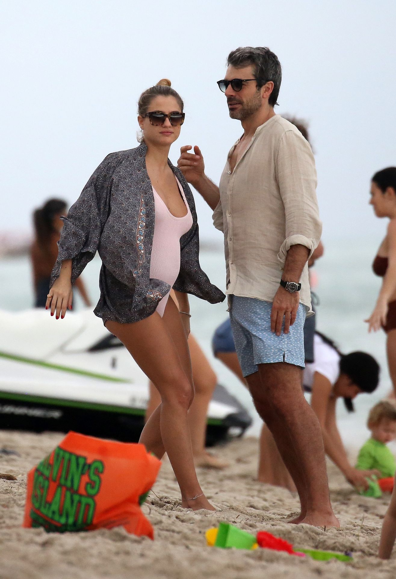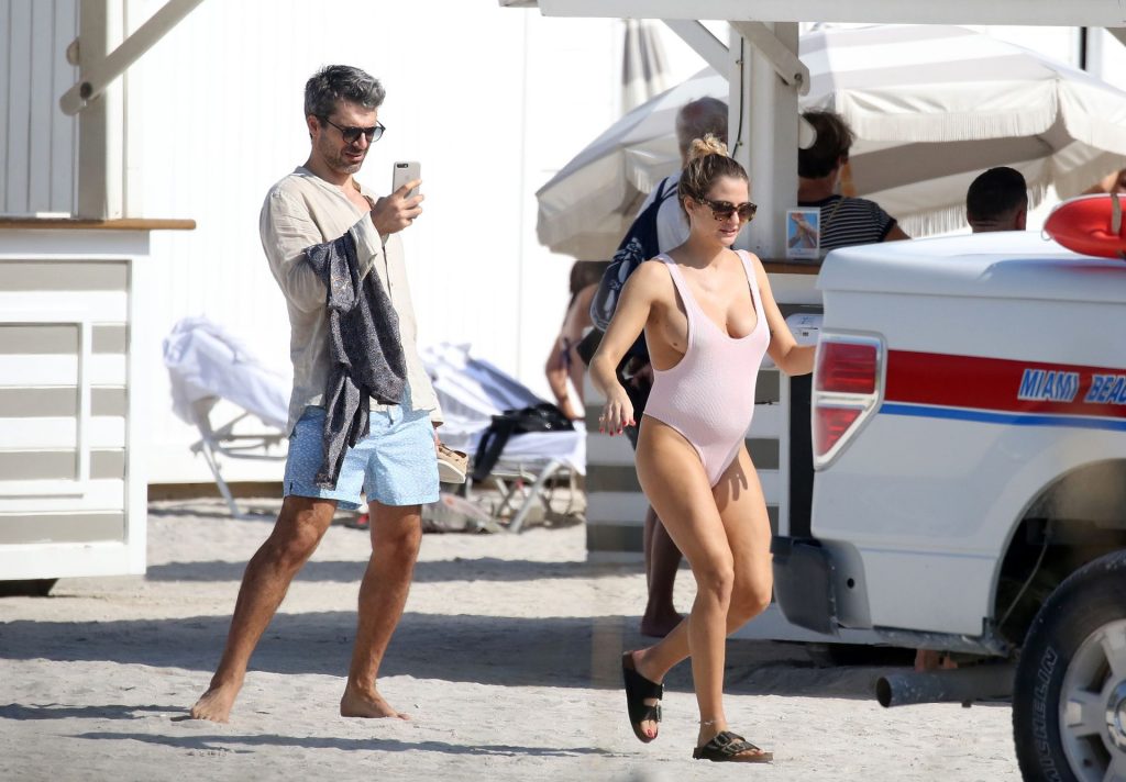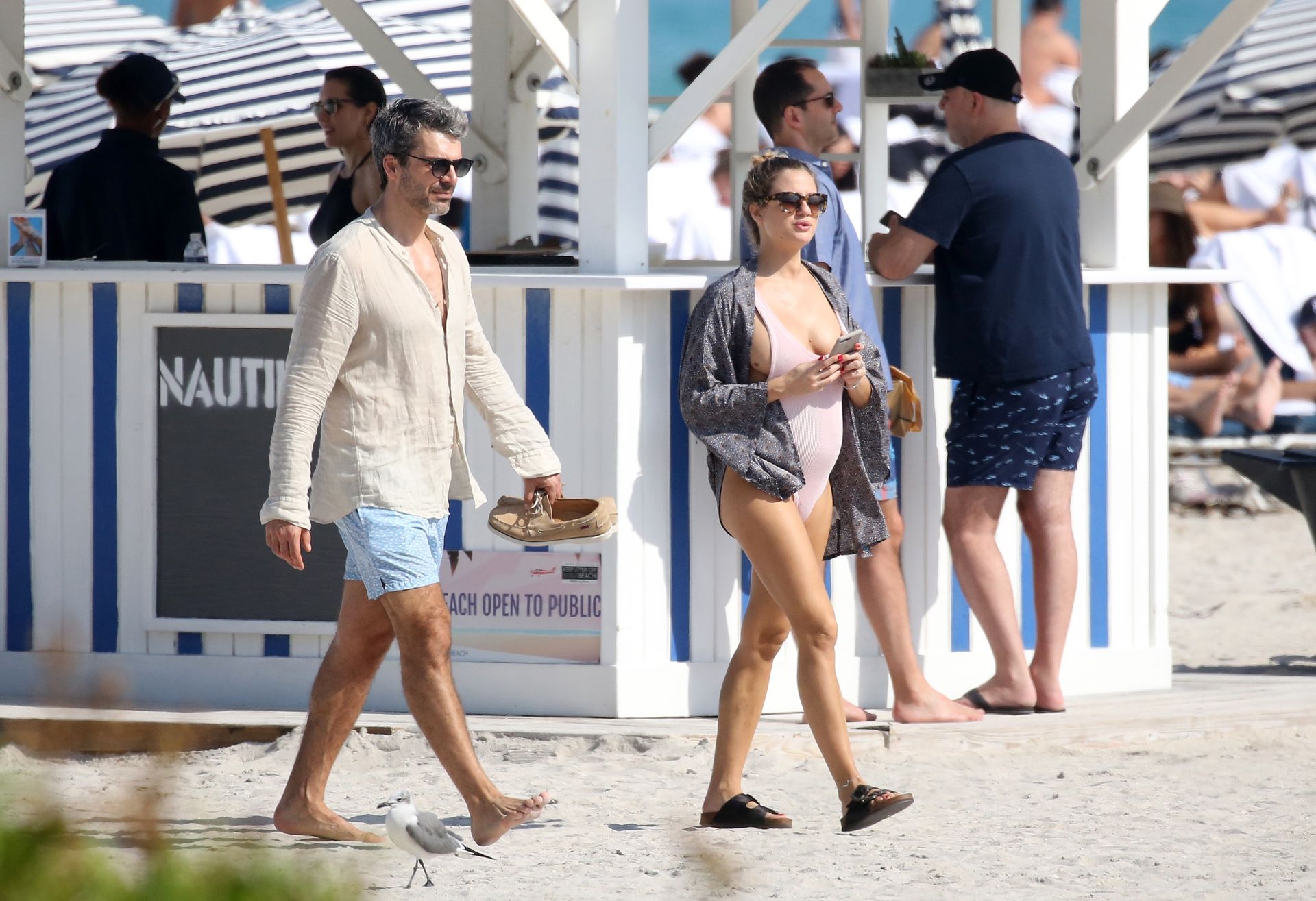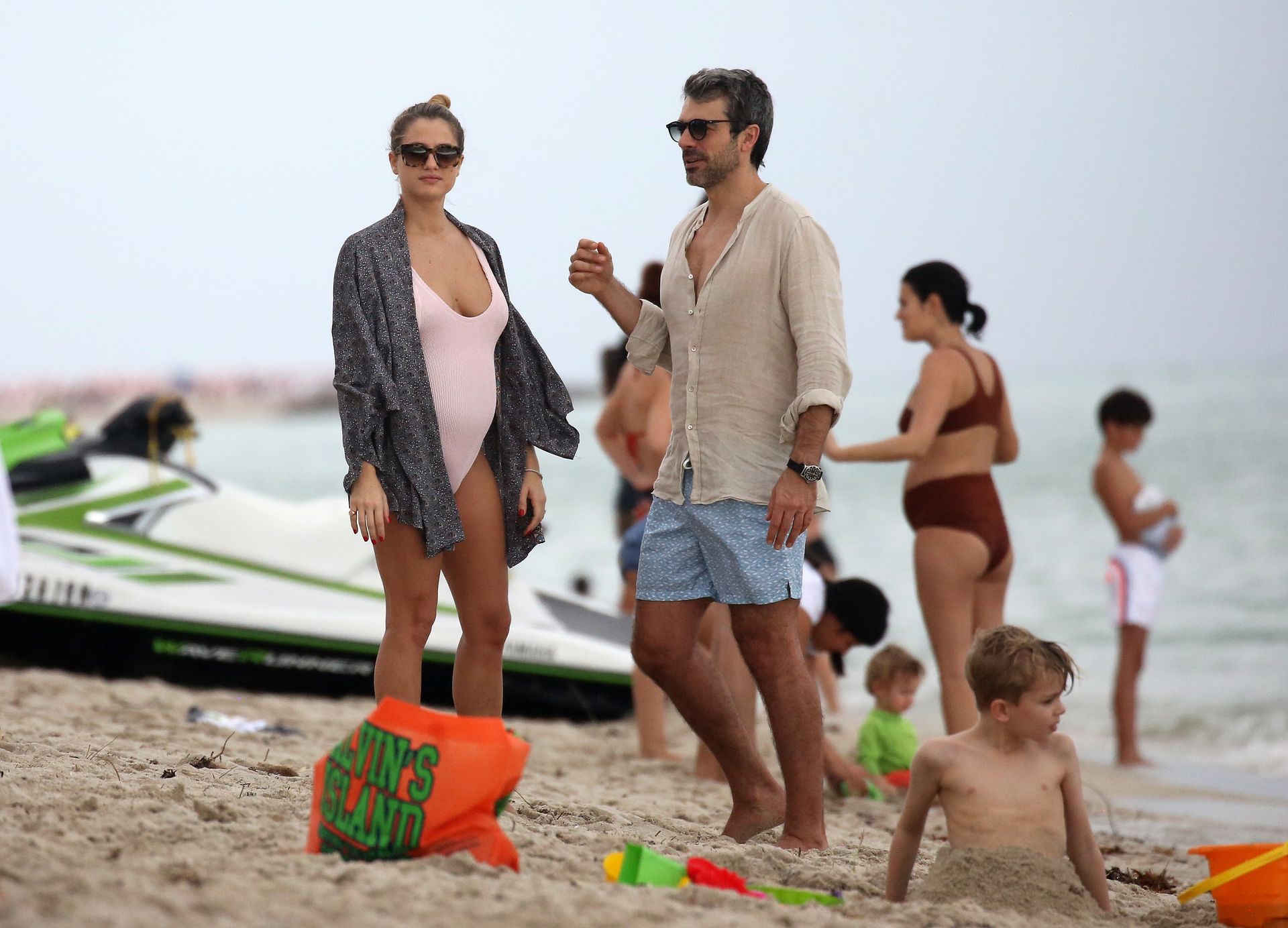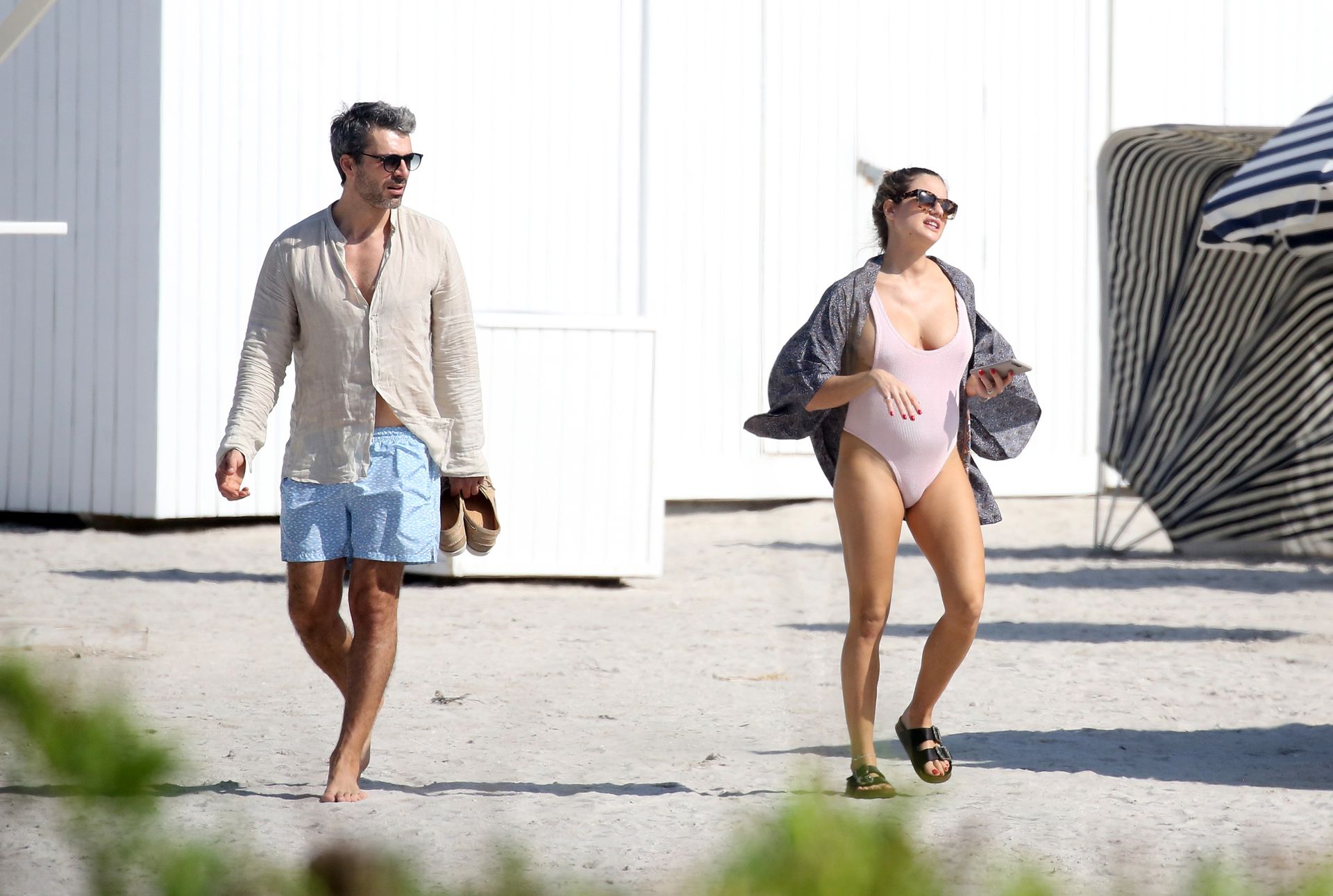 L’attrice Cristina Marino mostra il suo pancione e tutte le sue nuove curve in un costume da bagno molto rivelatore mentre si gode la spiaggia con Luca Argentero a Miami la vigilia di Capodanno, 31/12/2019.