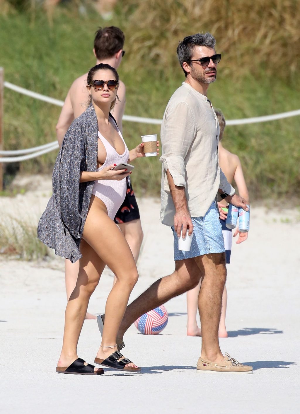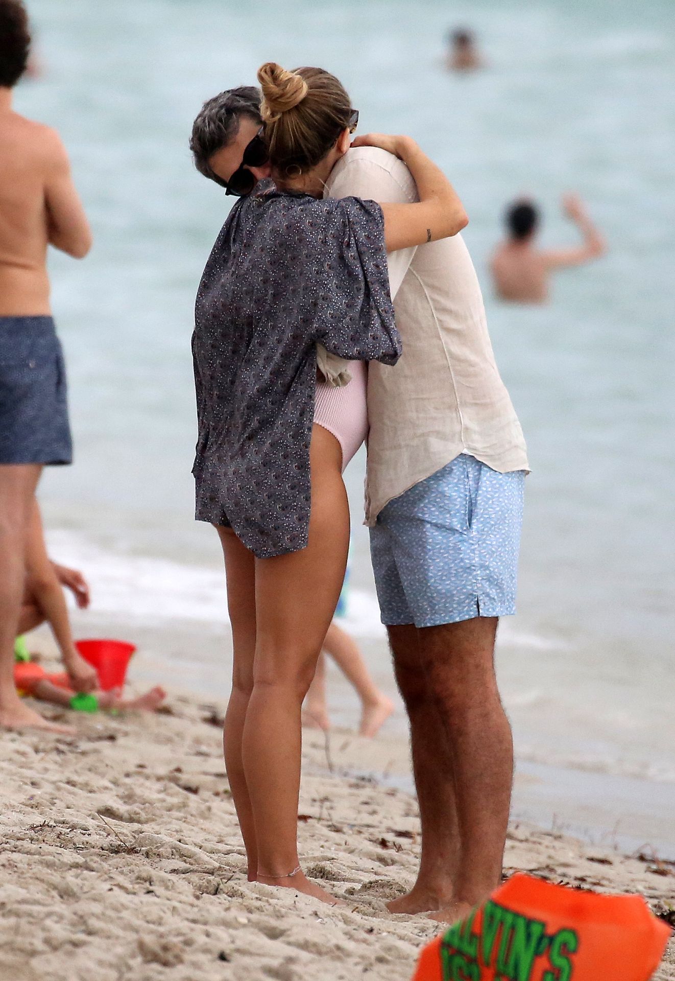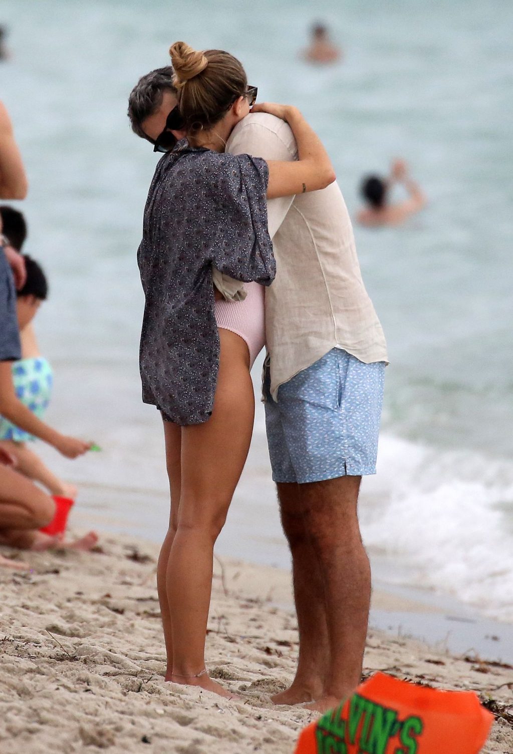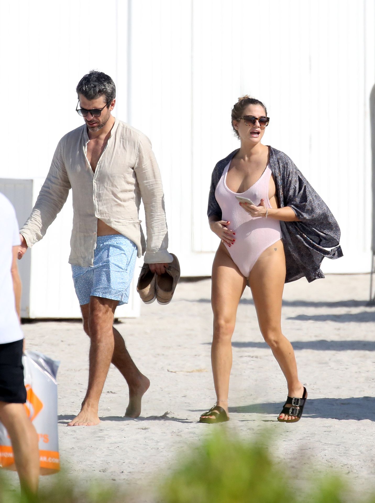 L’attrice Cristina Marino mostra il suo pancione e tutte le sue nuove curve in un costume da bagno molto rivelatore mentre si gode la spiaggia con Luca Argentero a Miami la vigilia di Capodanno, 31/12/2019.