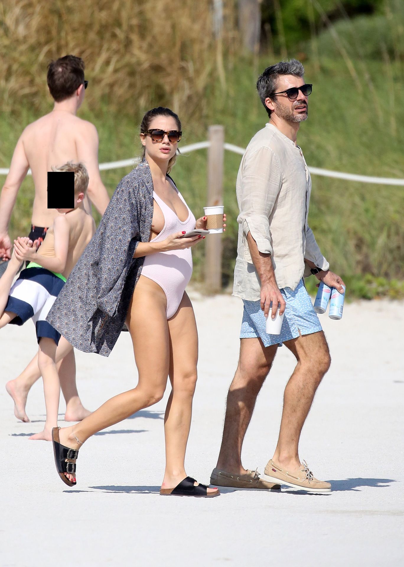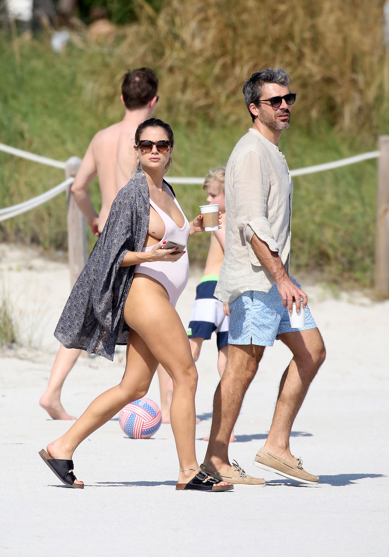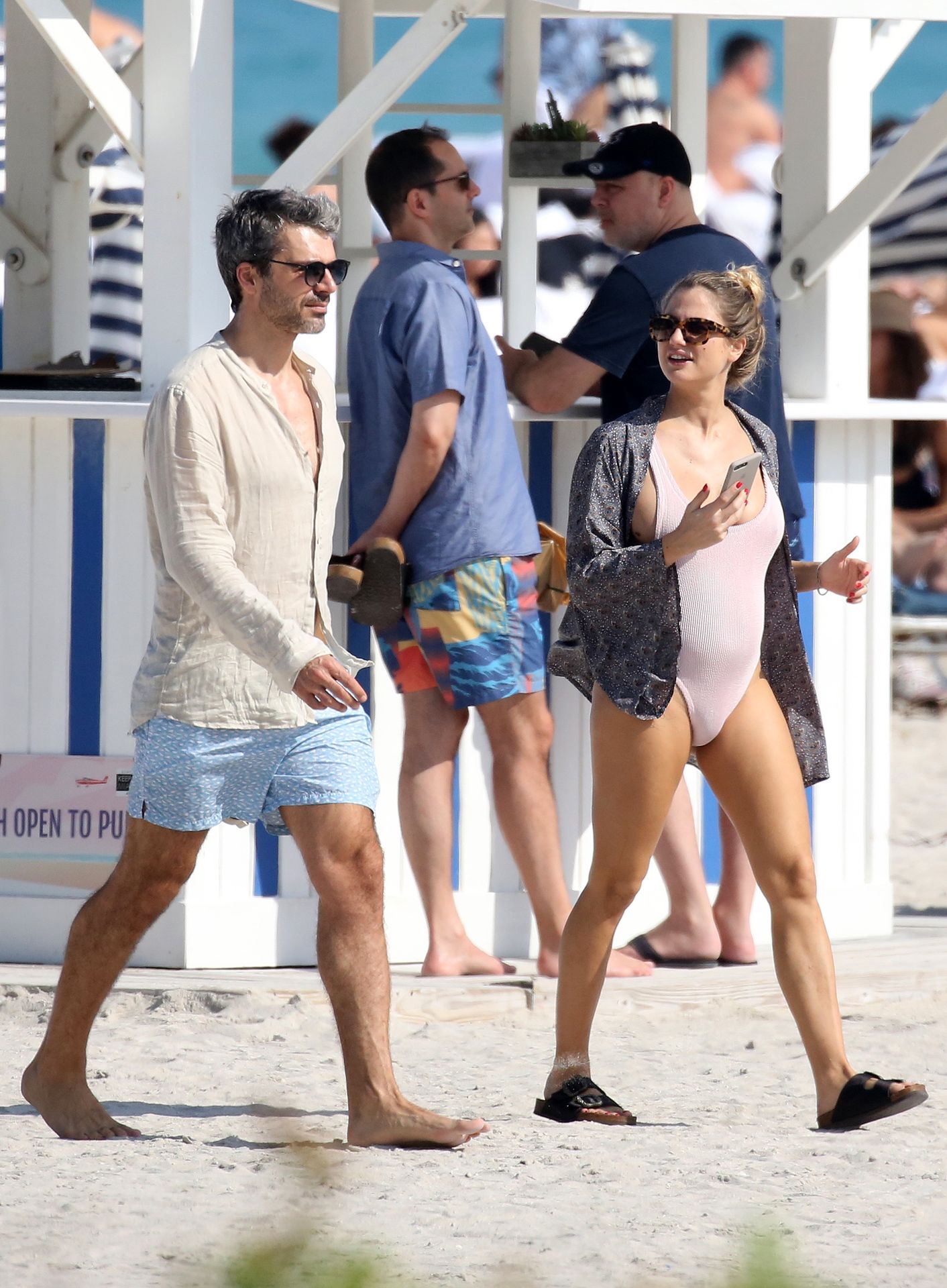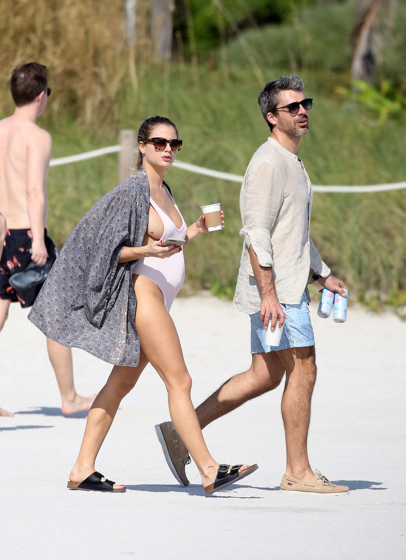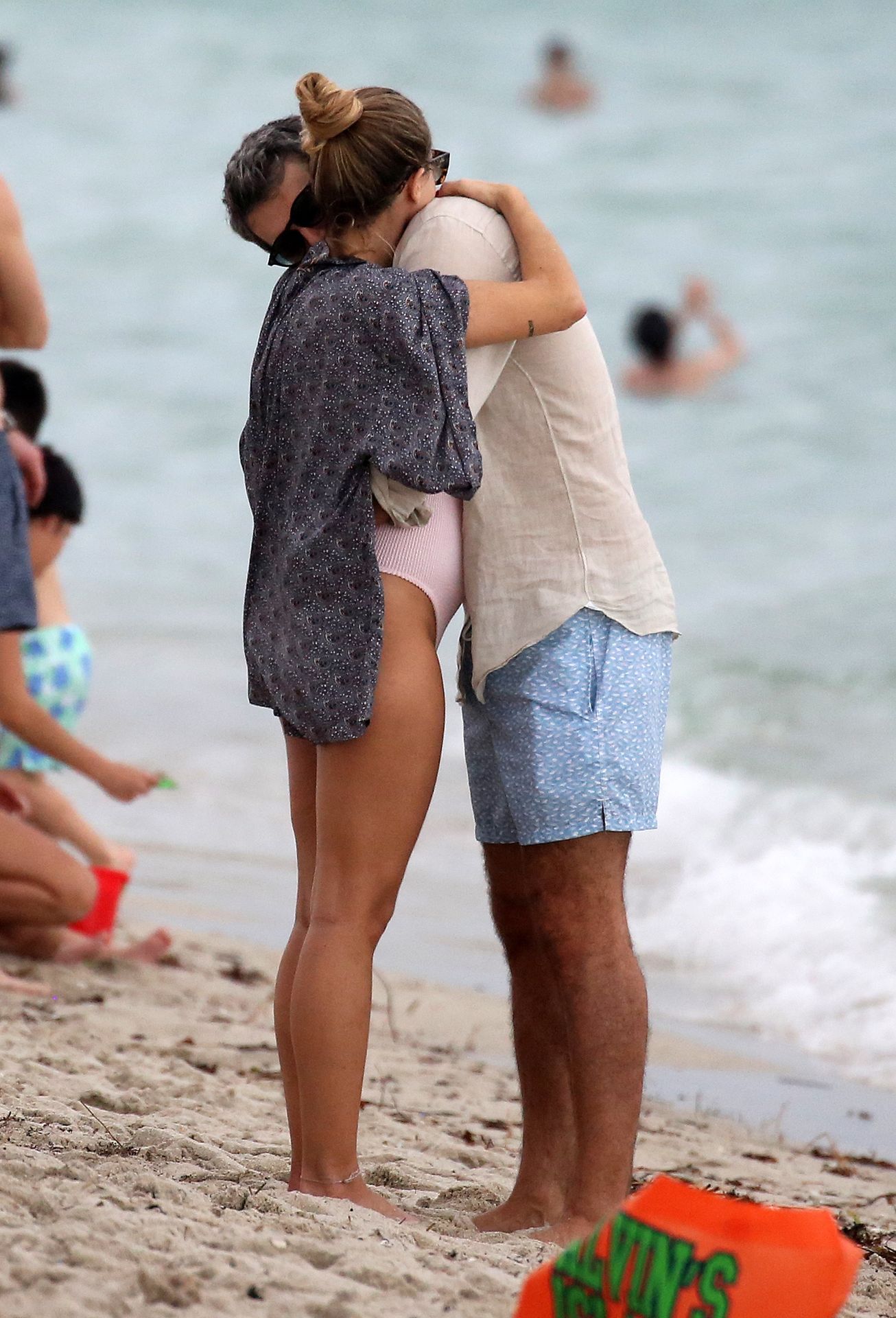 L’attrice Cristina Marino mostra il suo pancione e tutte le sue nuove curve in un costume da bagno molto rivelatore mentre si gode la spiaggia con Luca Argentero a Miami la vigilia di Capodanno, 31/12/2019.