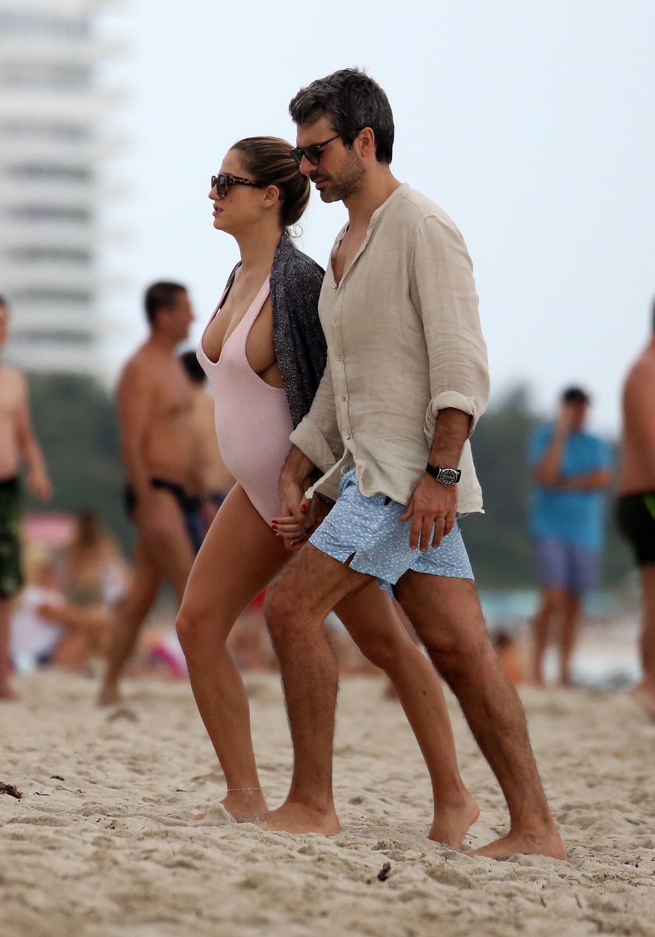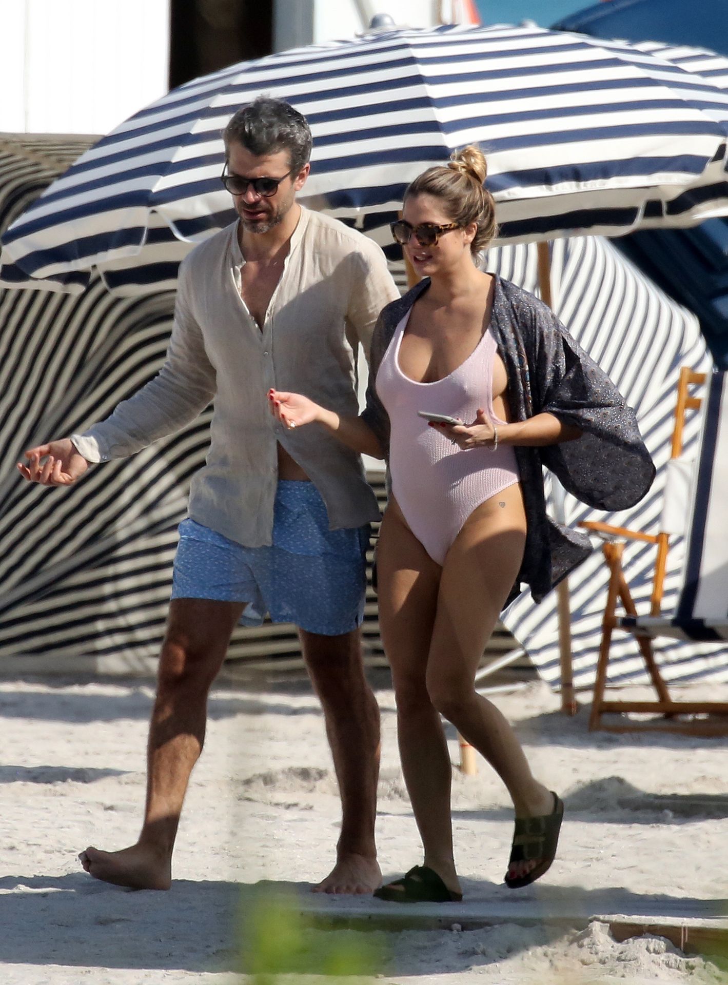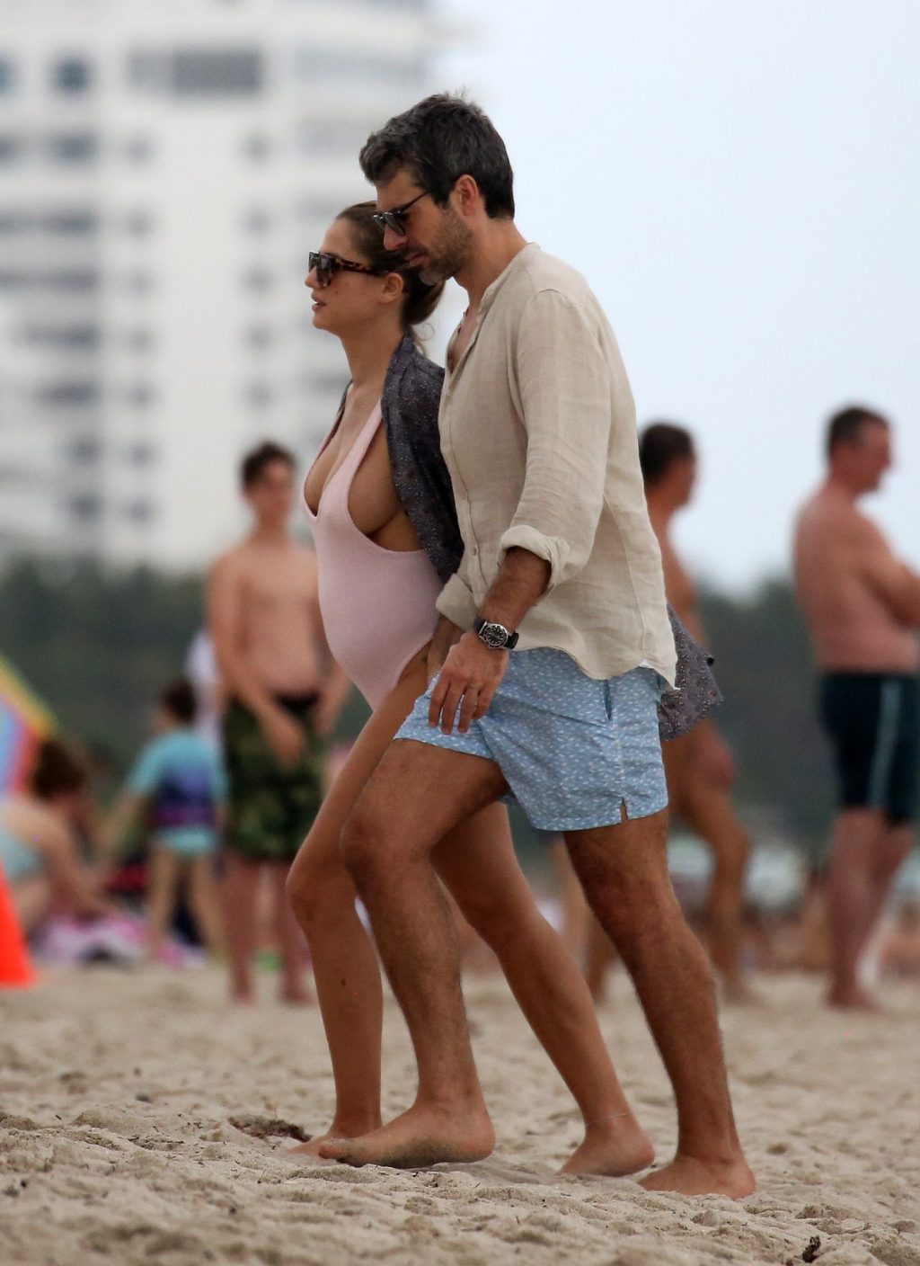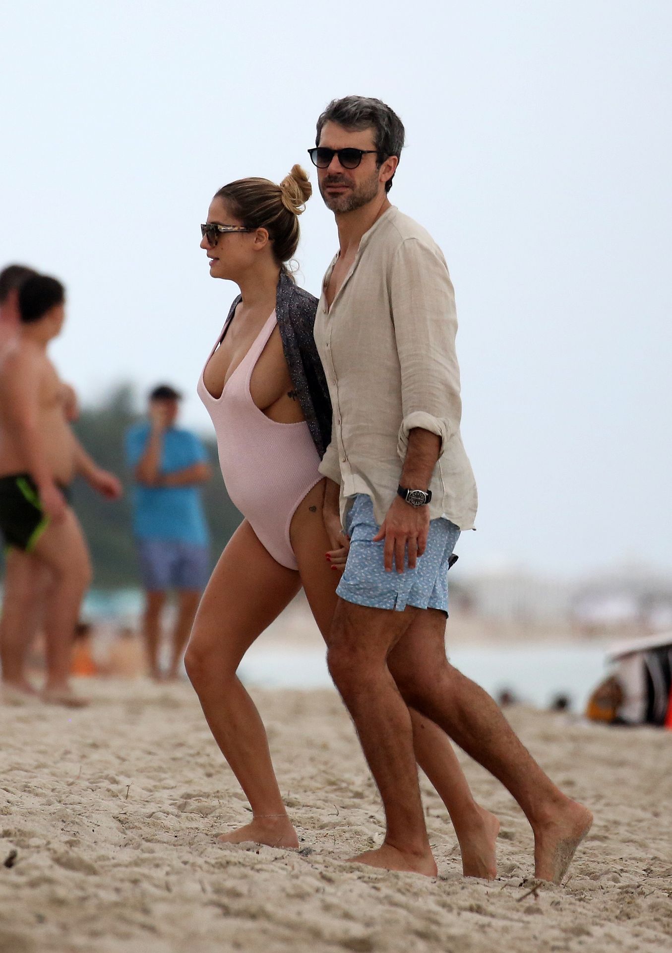 L’attrice Cristina Marino mostra il suo pancione e tutte le sue nuove curve in un costume da bagno molto rivelatore mentre si gode la spiaggia con Luca Argentero a Miami la vigilia di Capodanno, 31/12/2019.