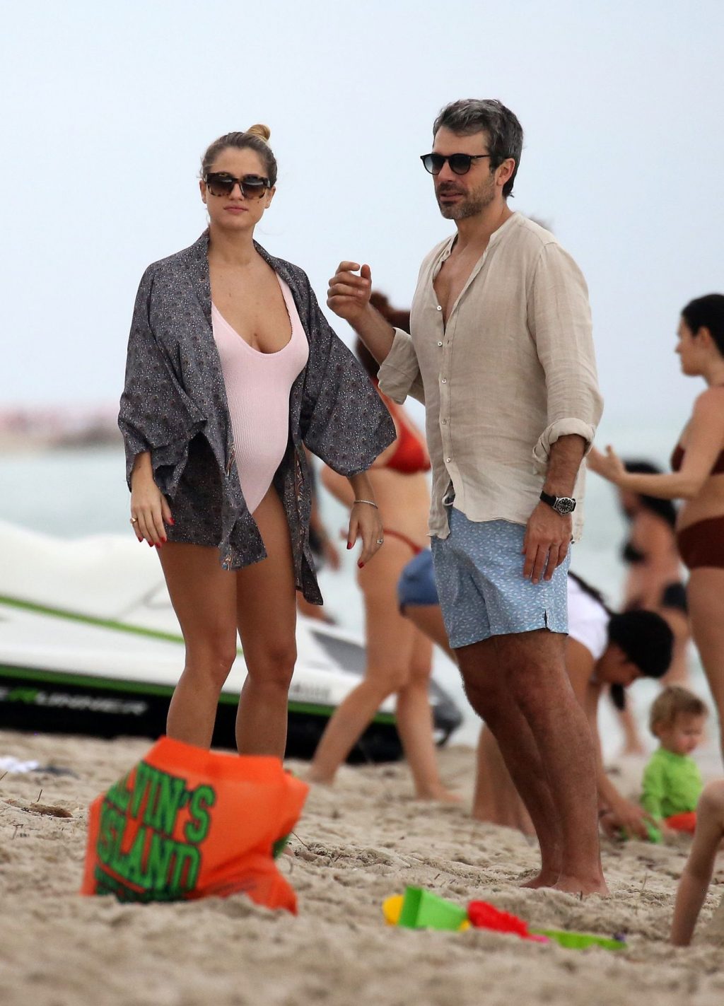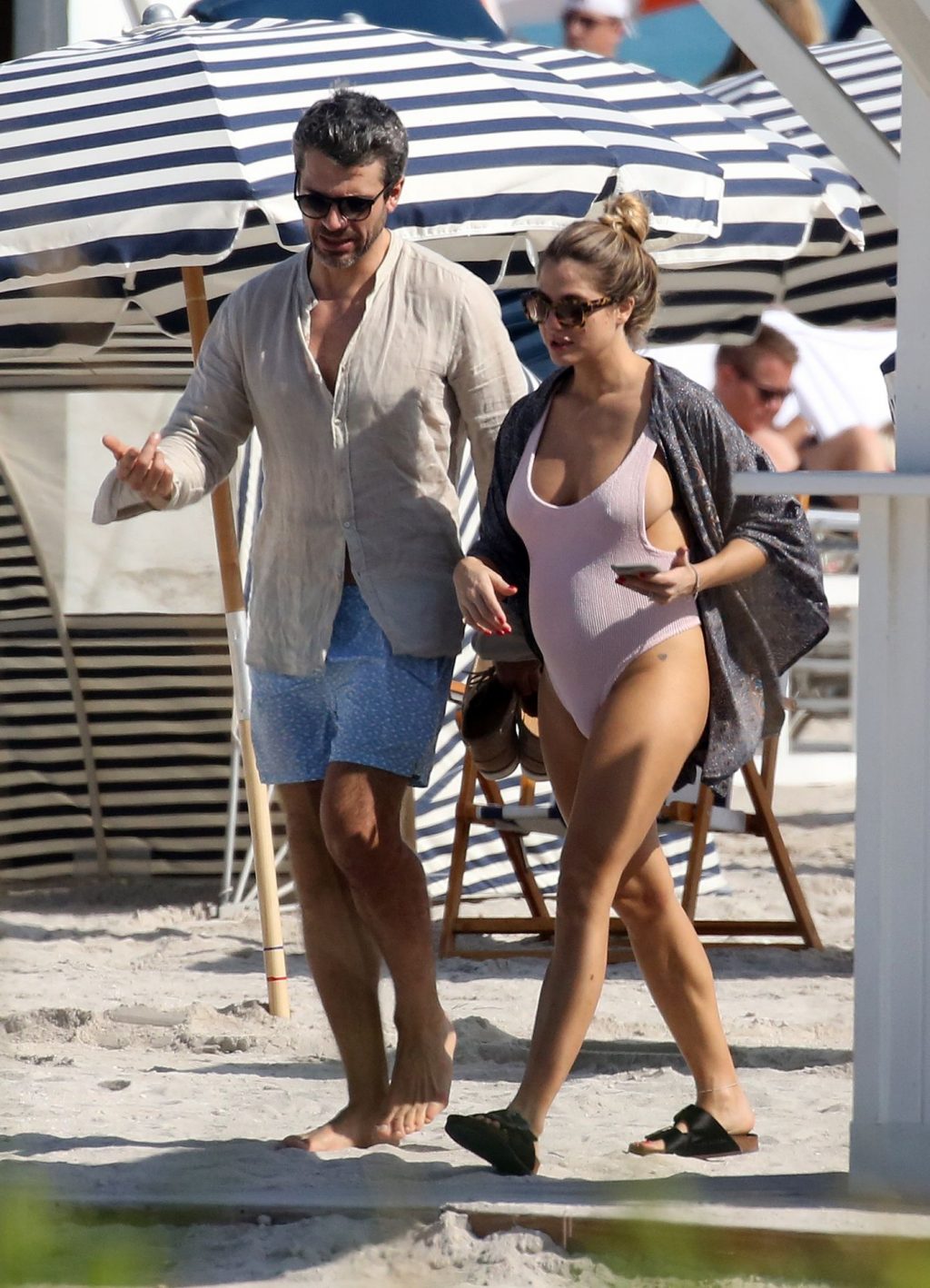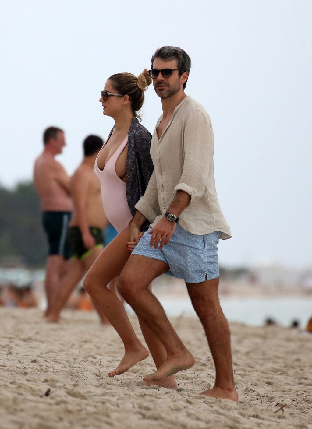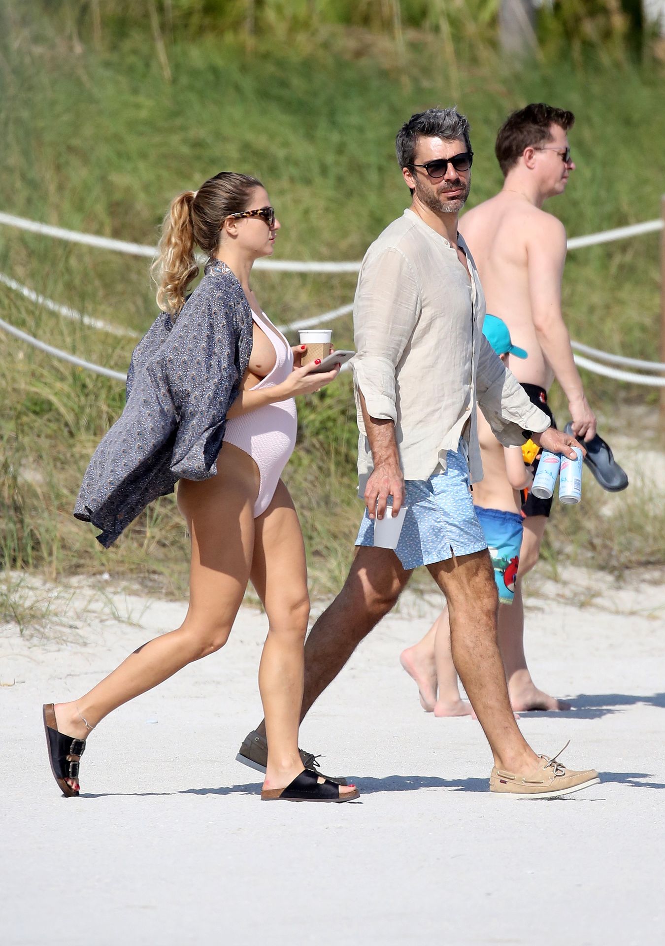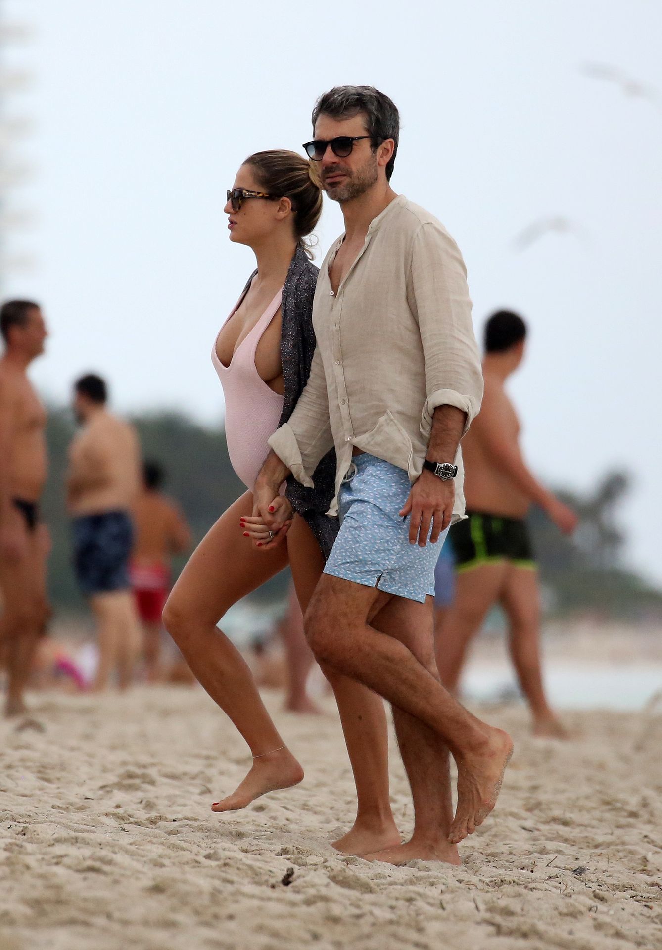 L’attrice Cristina Marino mostra il suo pancione e tutte le sue nuove curve in un costume da bagno molto rivelatore mentre si gode la spiaggia con Luca Argentero a Miami la vigilia di Capodanno, 31/12/2019.