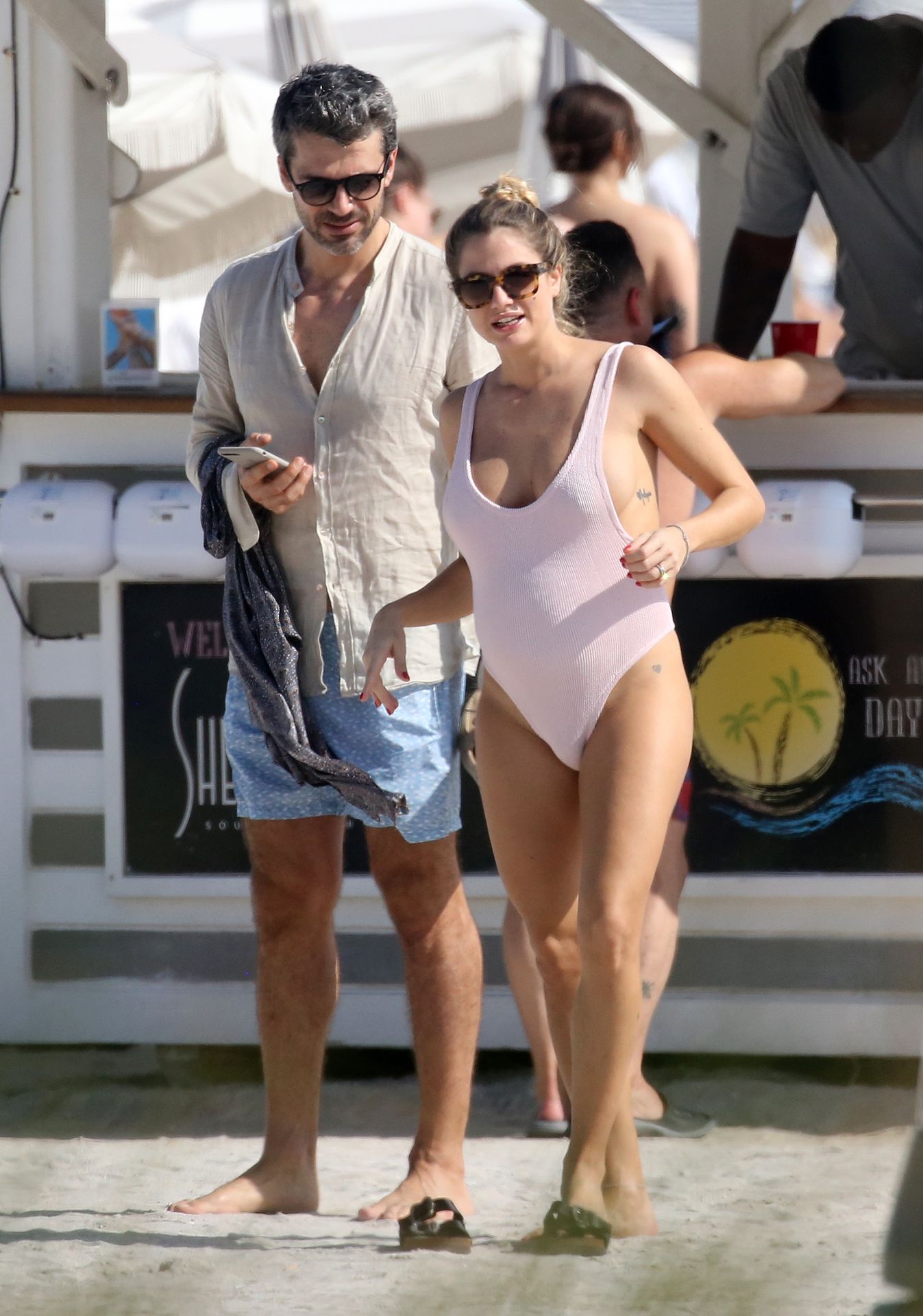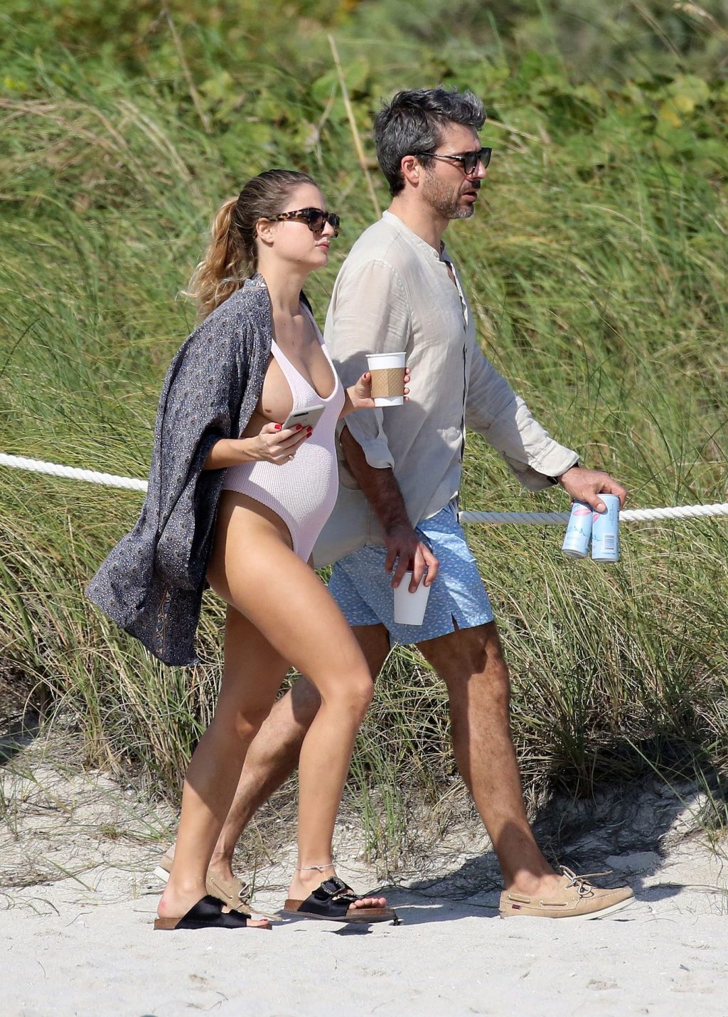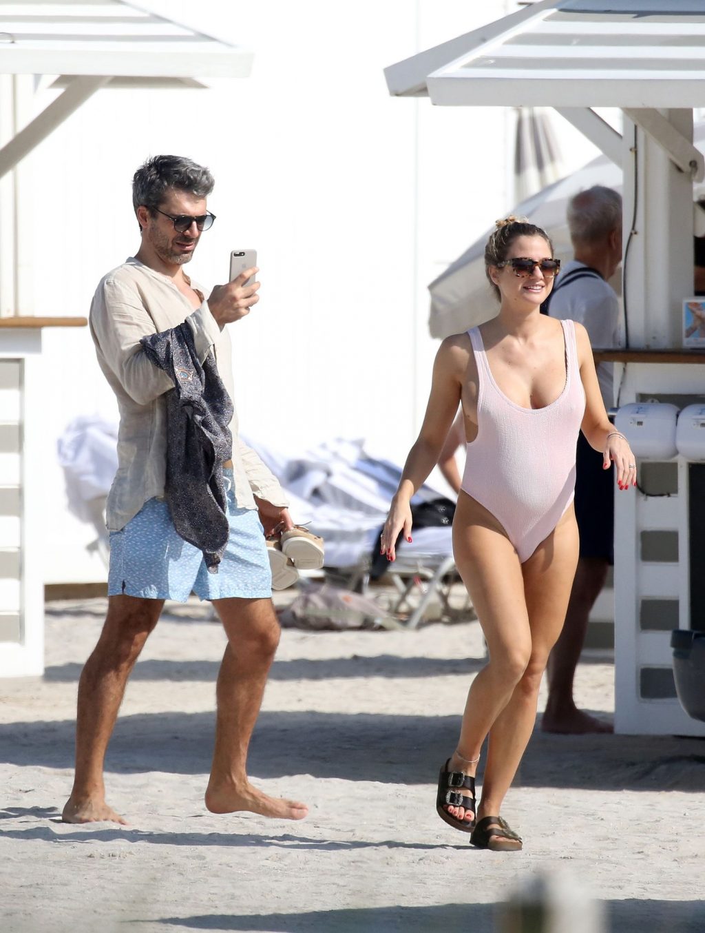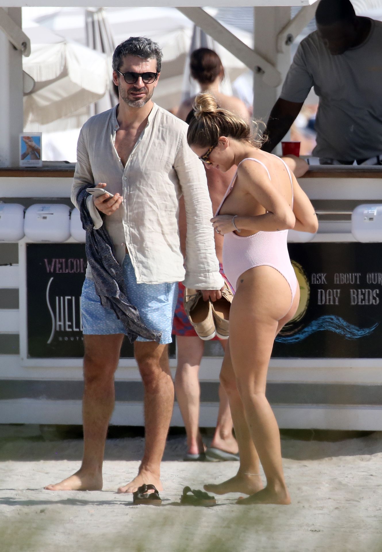 L’attrice Cristina Marino mostra il suo pancione e tutte le sue nuove curve in un costume da bagno molto rivelatore mentre si gode la spiaggia con Luca Argentero a Miami la vigilia di Capodanno, 31/12/2019.