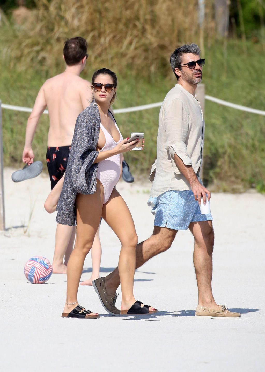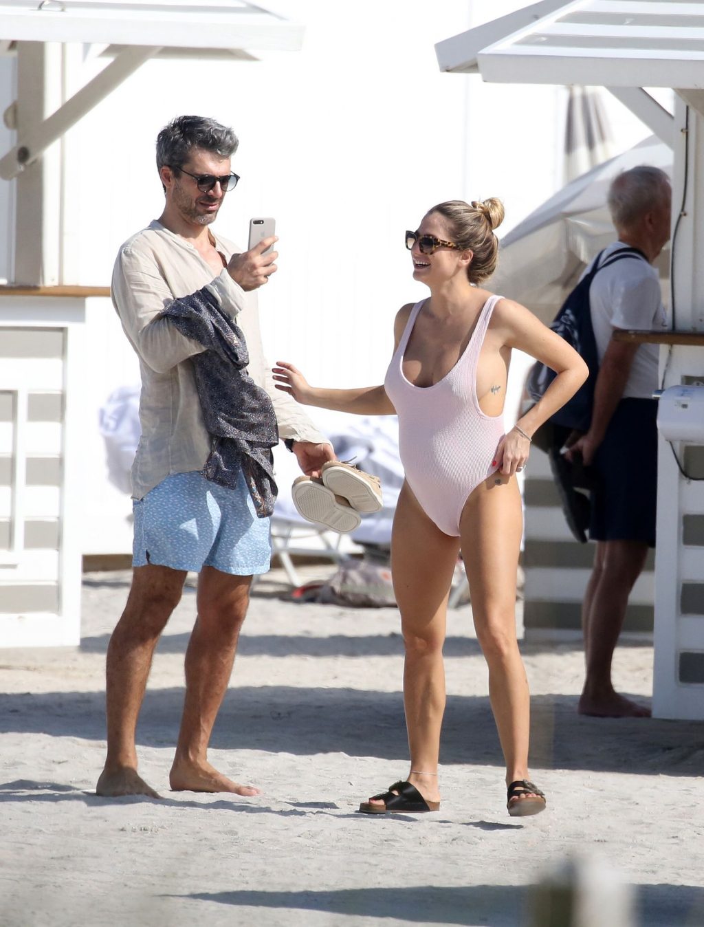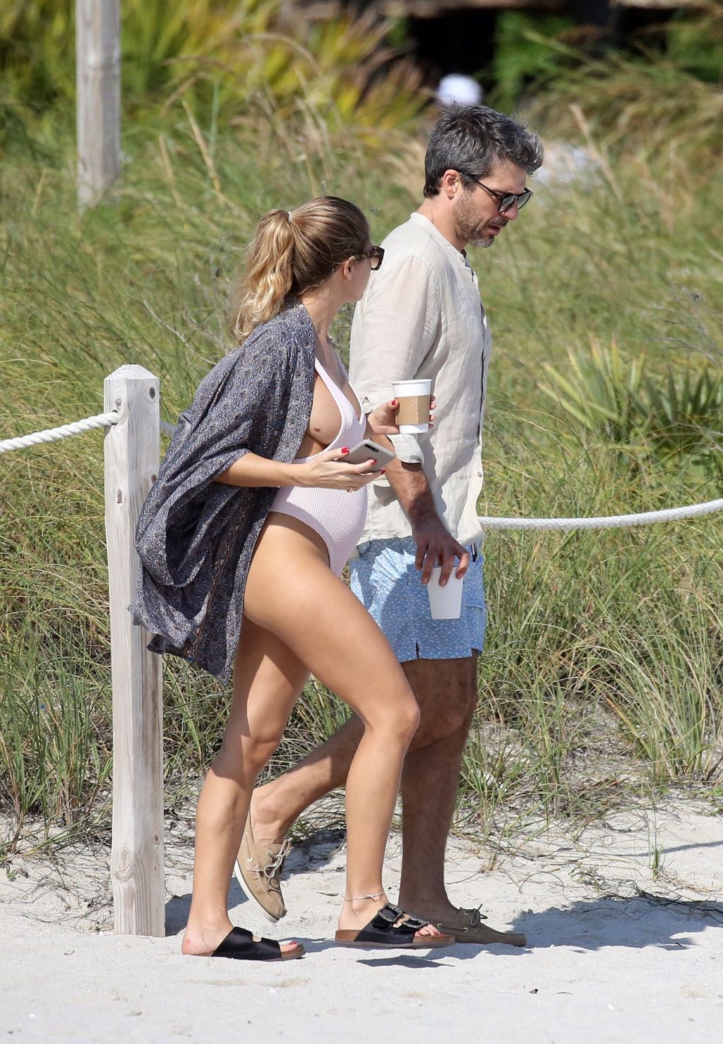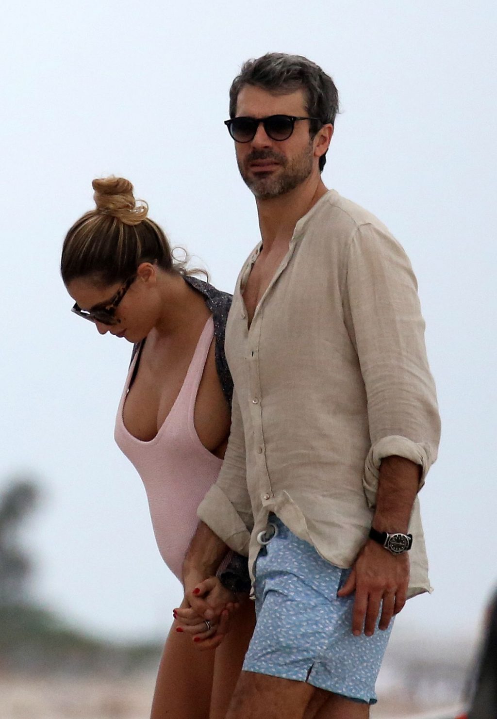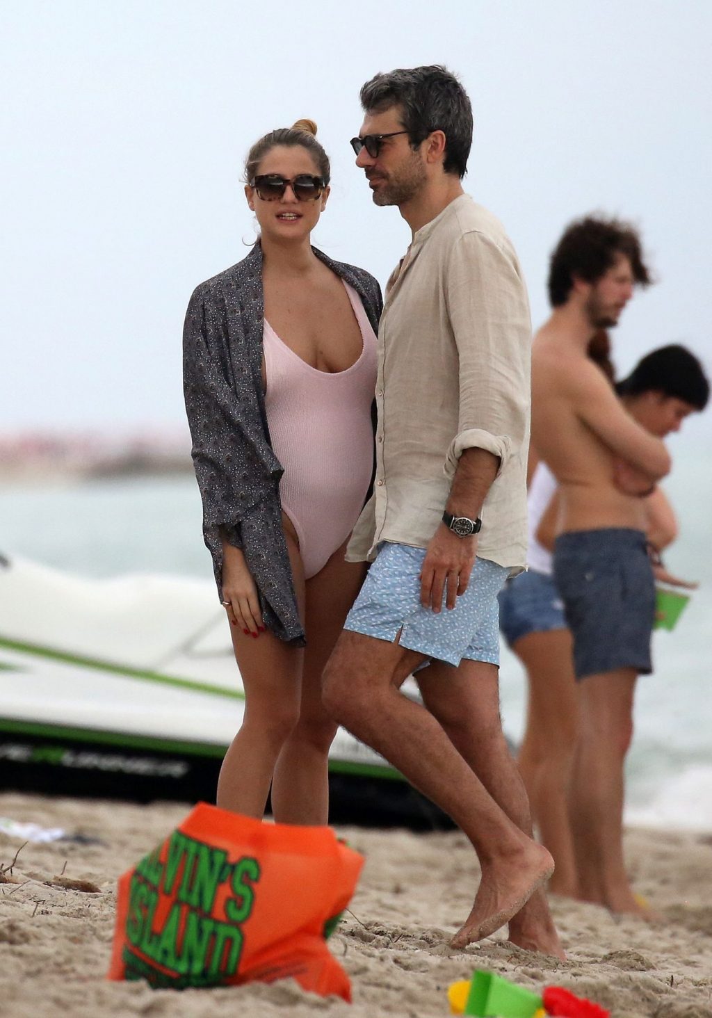 L’attrice Cristina Marino mostra il suo pancione e tutte le sue nuove curve in un costume da bagno molto rivelatore mentre si gode la spiaggia con Luca Argentero a Miami la vigilia di Capodanno, 31/12/2019.