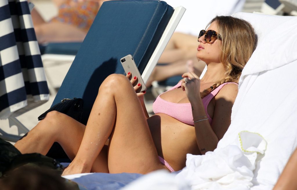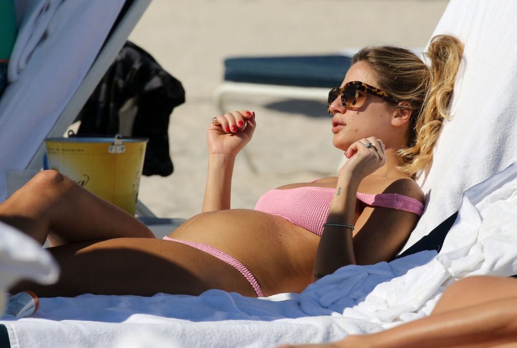 L’attrice Cristina Marino mostra il suo pancione e tutte le sue nuove curve in un bikini rosa sulla spiaggia di Miami il giorno di Capodanno, 01/01/2020.