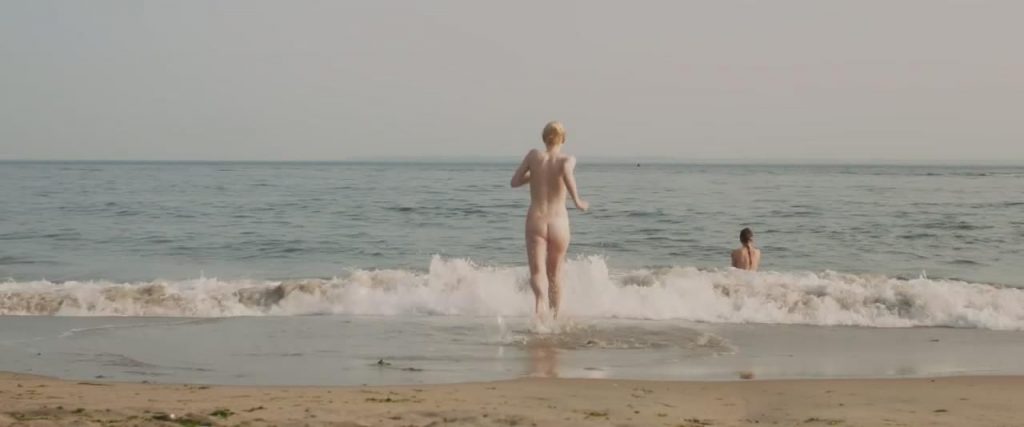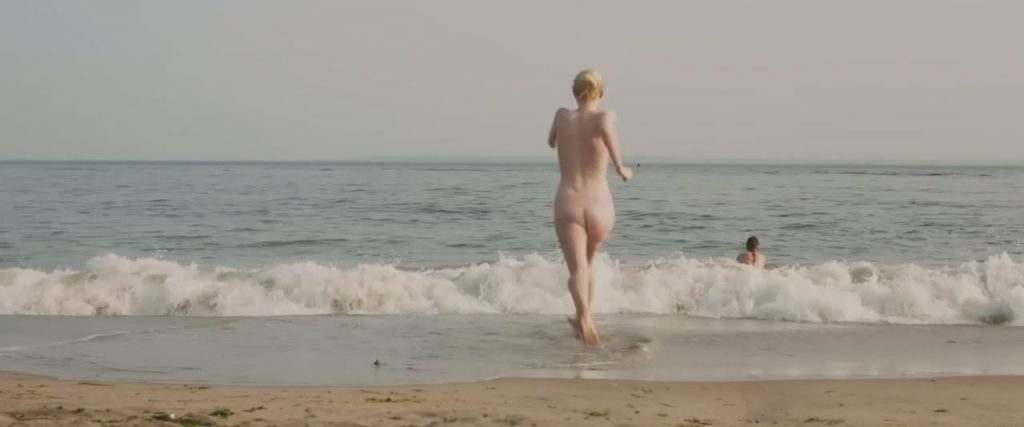 Dakota Fanning e Elizabeth Olsen in spiaggia dove Elizabeth è topless mentre nasconde i suoi seni incoraggiando Dakota a spogliarsi per un po’ di skinny-dipping. Una scena da Very Good Girls.