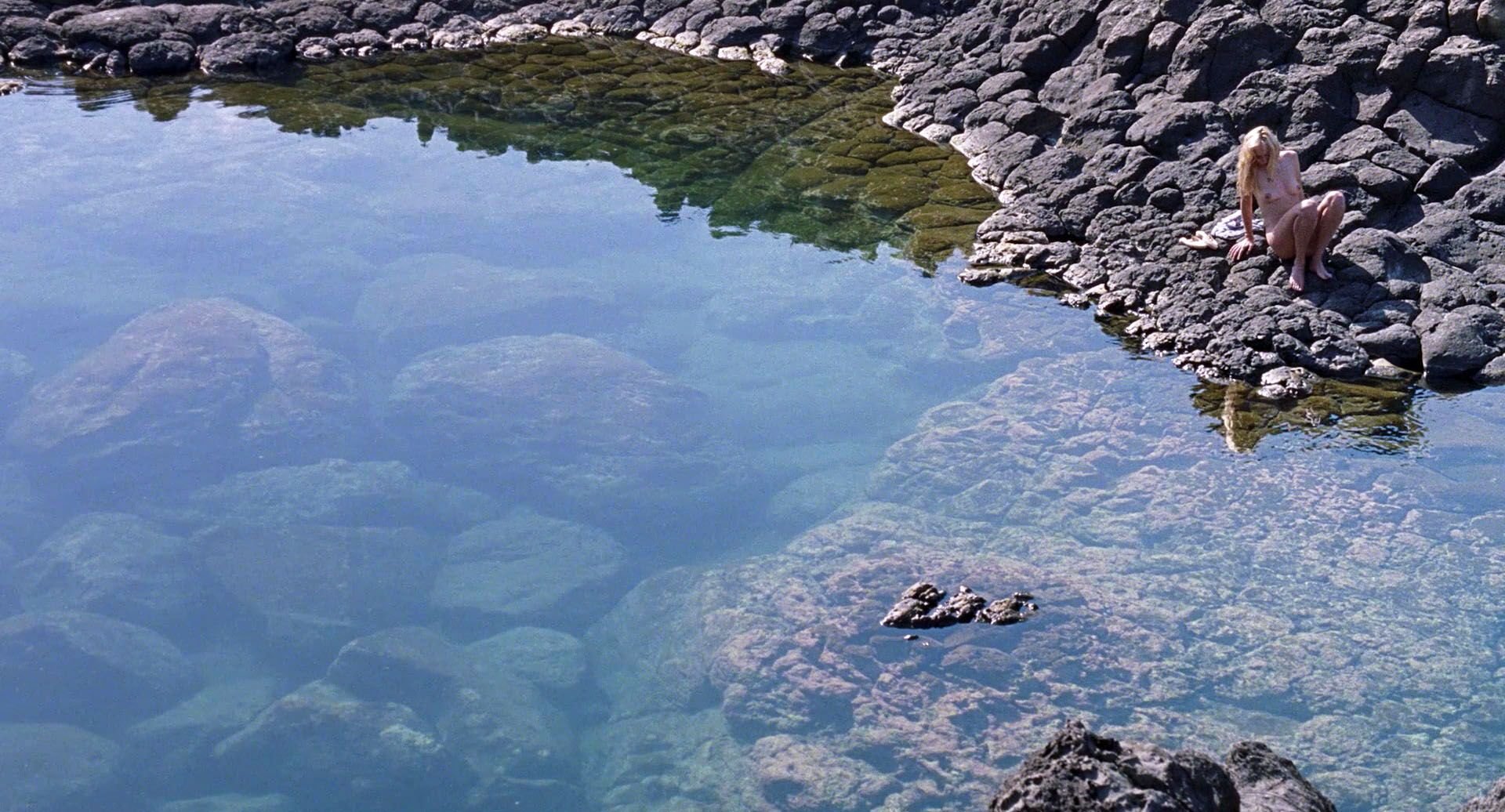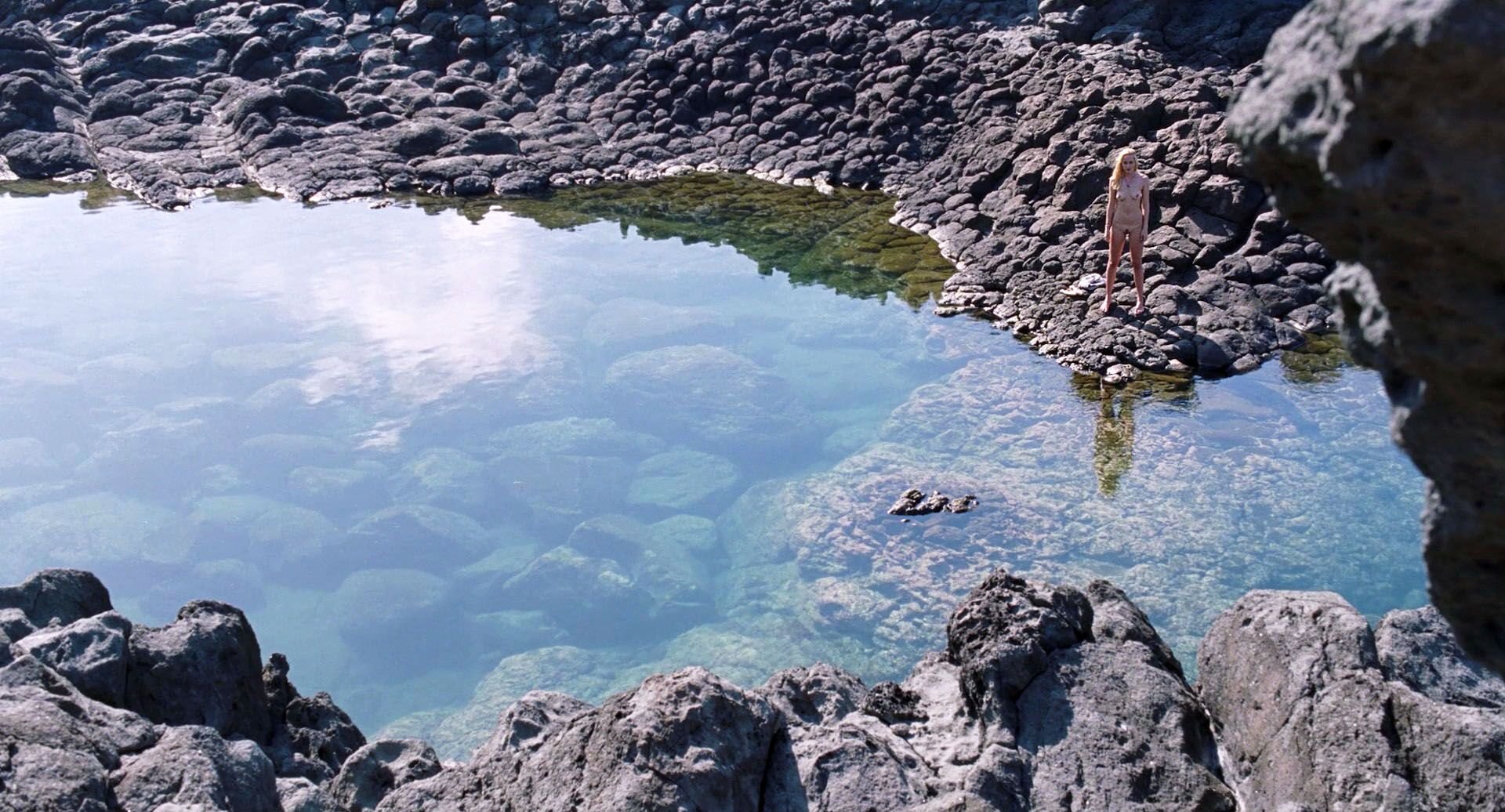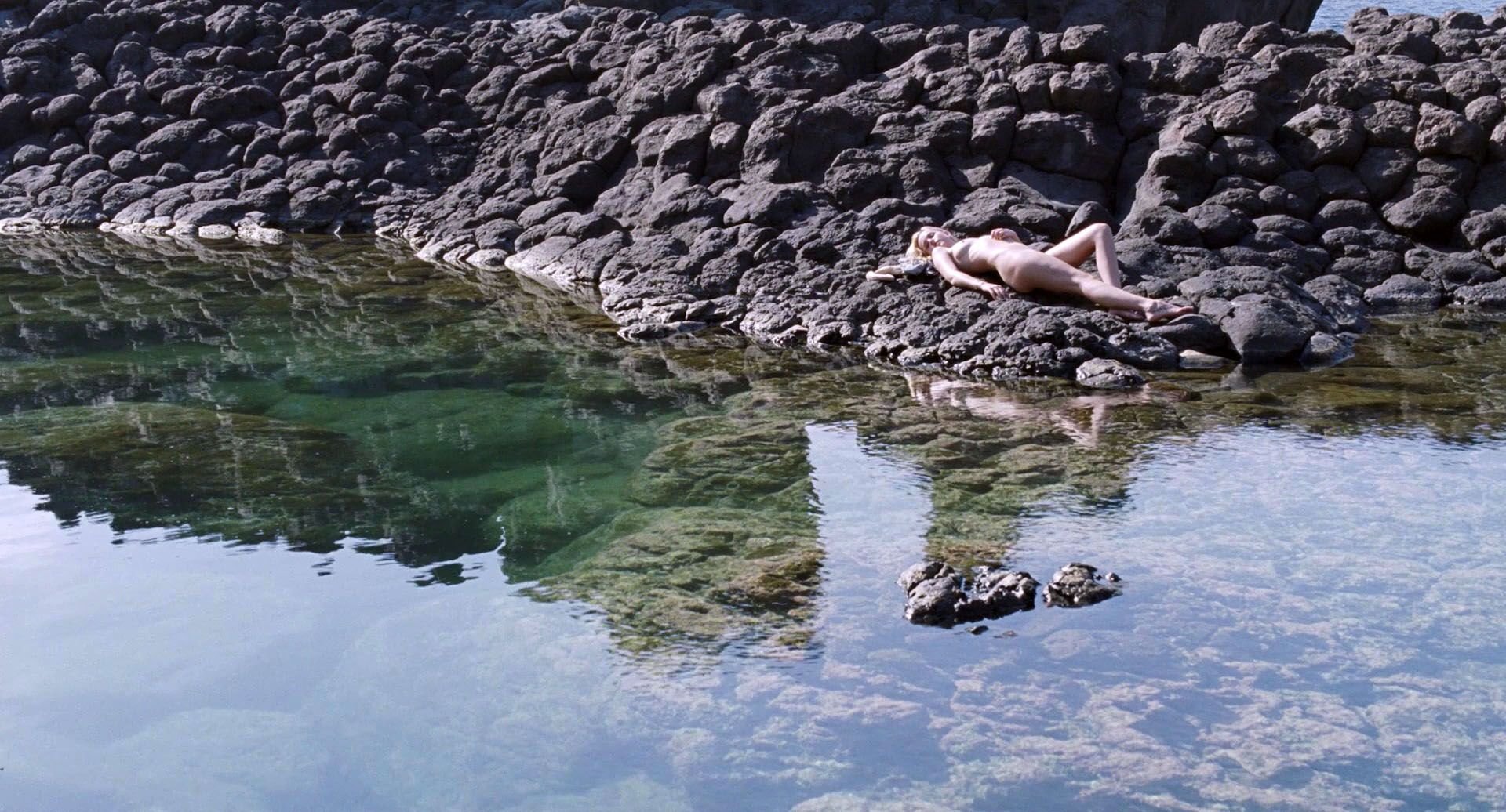 Dakota Johnson con seno completamente scoperto e peluria in vista, in piedi vicino a uno stagno cercando di sedurre Matthias Schoenaerts. Poi si sdraia sulle rocce.