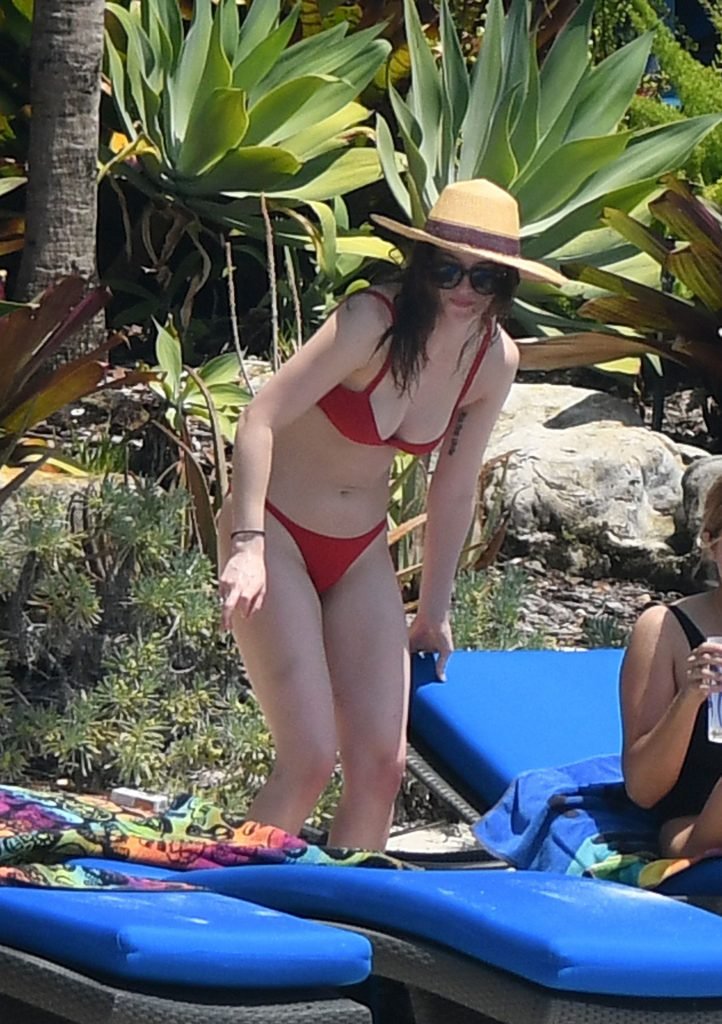 Esclusiva, Miami, FL – 31/03/2017 – L’attrice di Cinquanta sfumature di grigio Dakota Johnson indossa un bikini rosso mentre si rilassa con amici a Miami