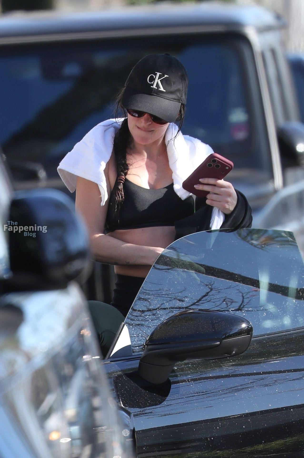La star di The Fappening Dakota Johnson resta sexy uscendo dalla palestra a LA, con il sudore che brilla su quel corpo tonico dopo un allenamento intenso. La star 36enne di Materialists indossa leggings che abbracciano perfettamente il suo sedere e le gambe, crop top che mostra addominali scolpiti e un accenno di seno.
