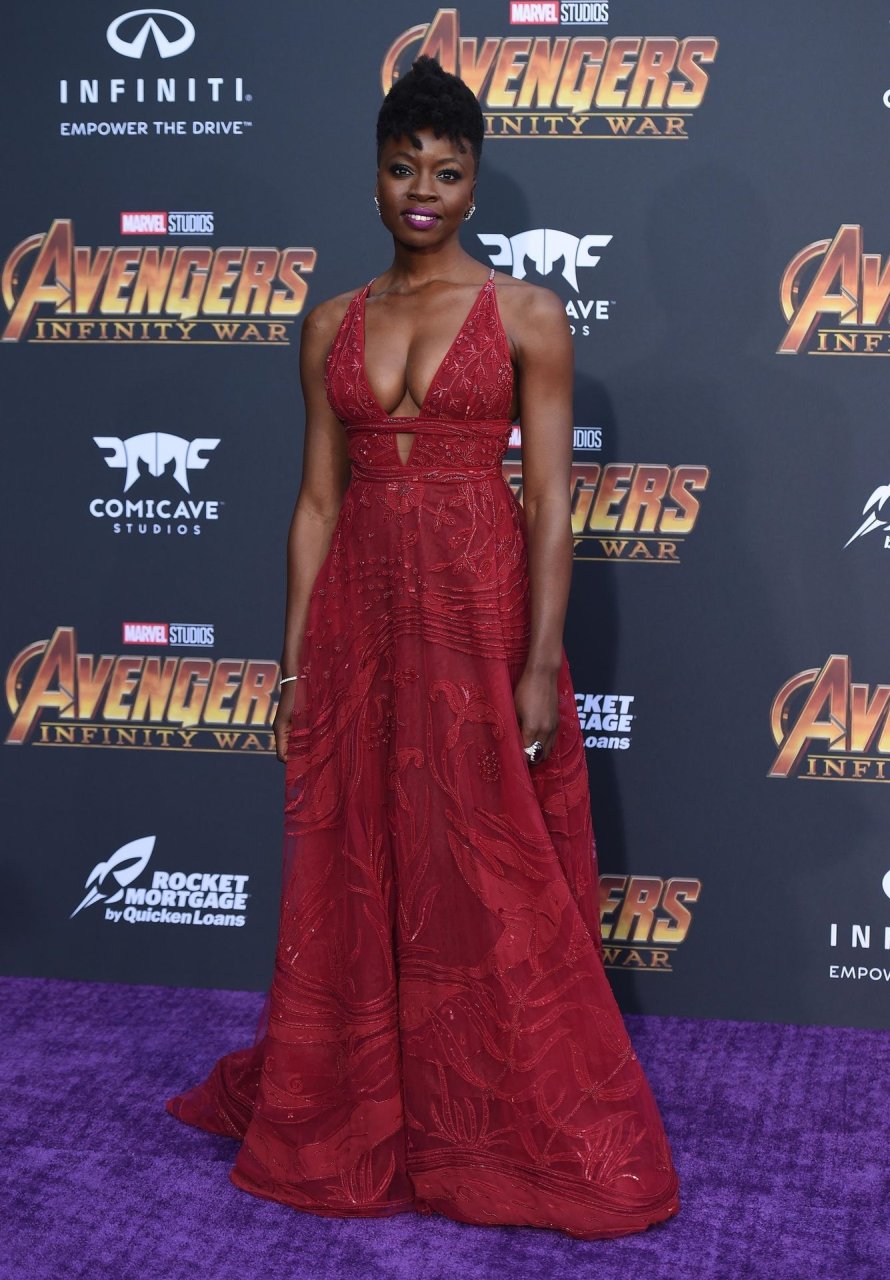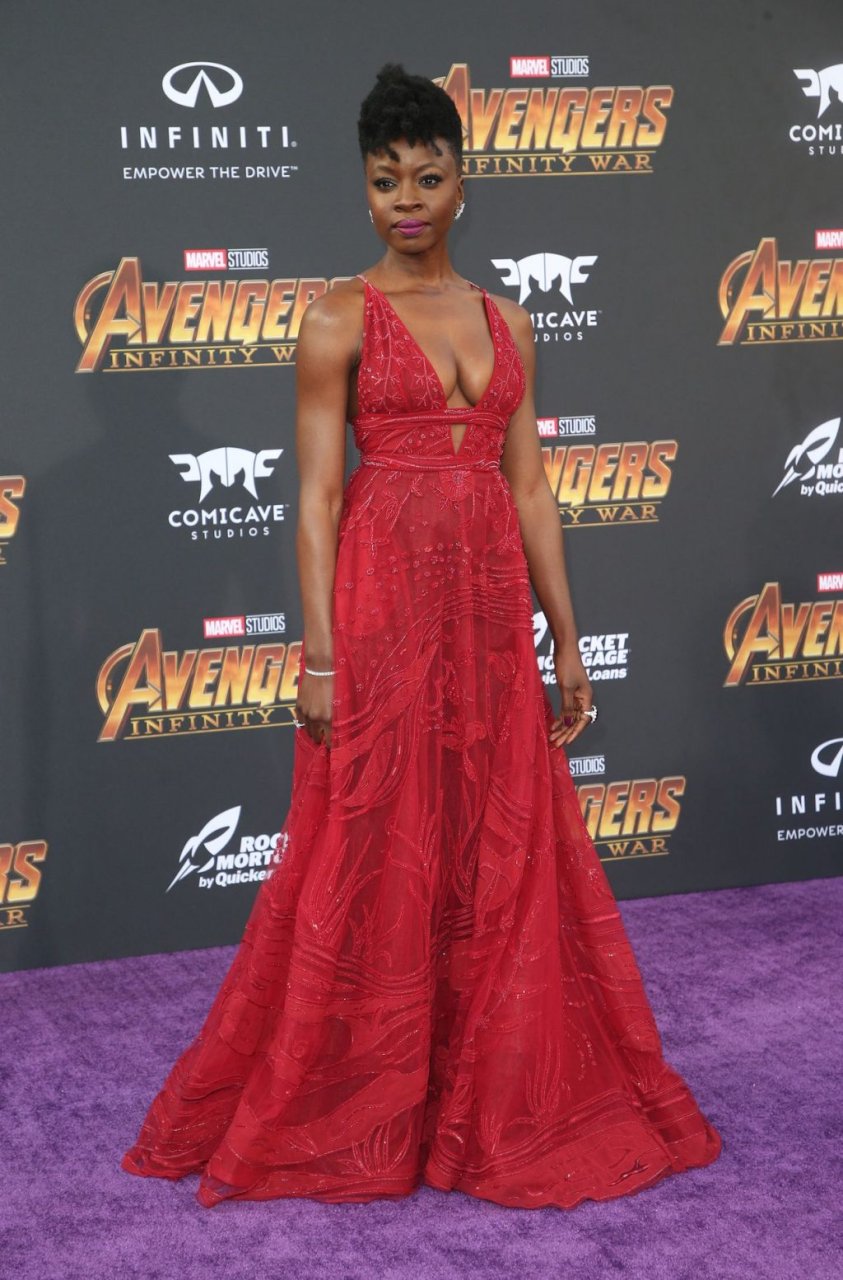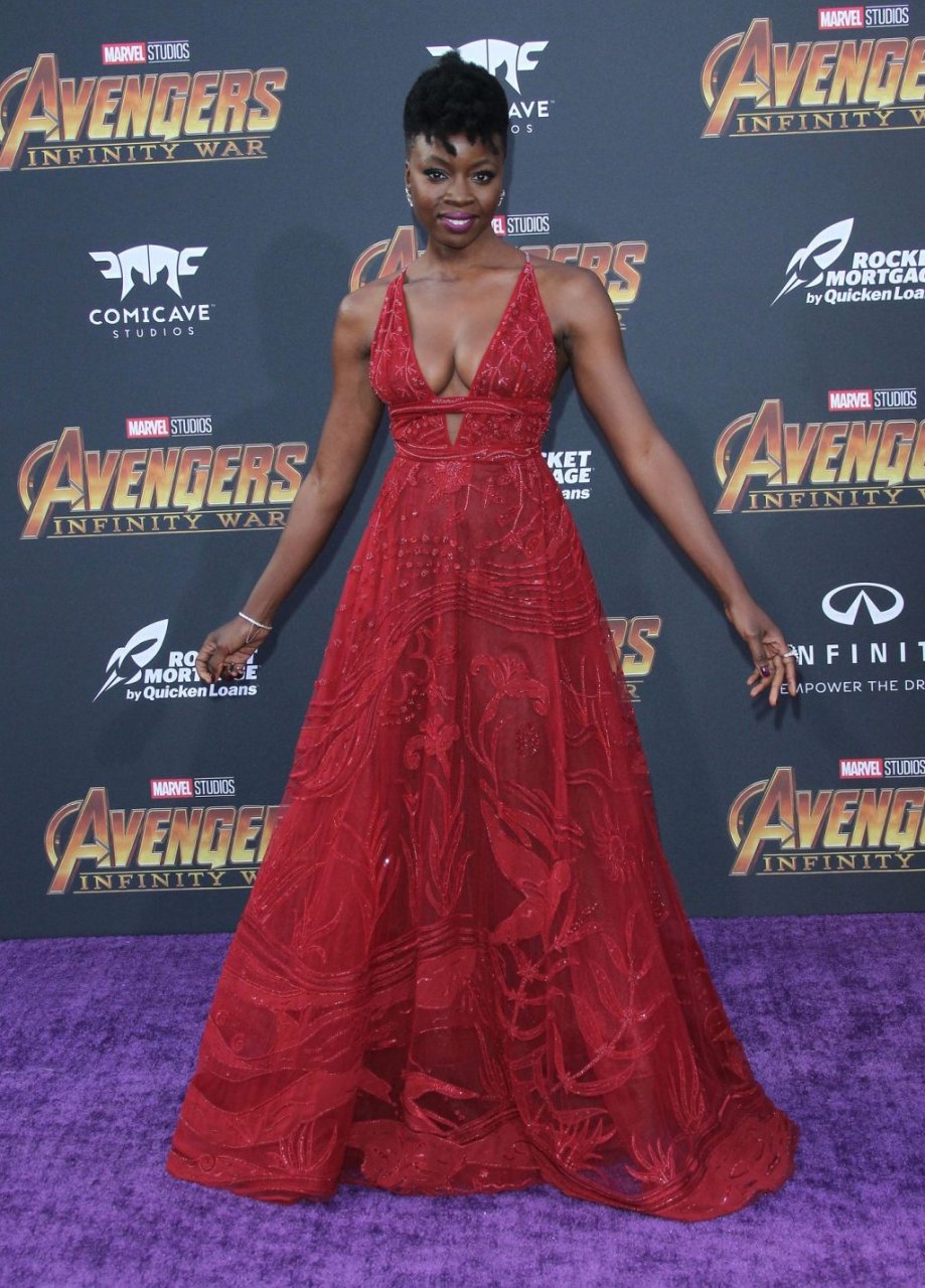 La star di “Walking Dead”, l’attrice Danai Gurira (40), ha mostrato il suo décolleté alla prima mondiale di “Avengers: Infinity War” di Disney e Marvel, tenutasi al El Capitan Theater, Dolby Theatre e TCL Chinese Theater IMAX a Hollywood, il 23/04/2018.