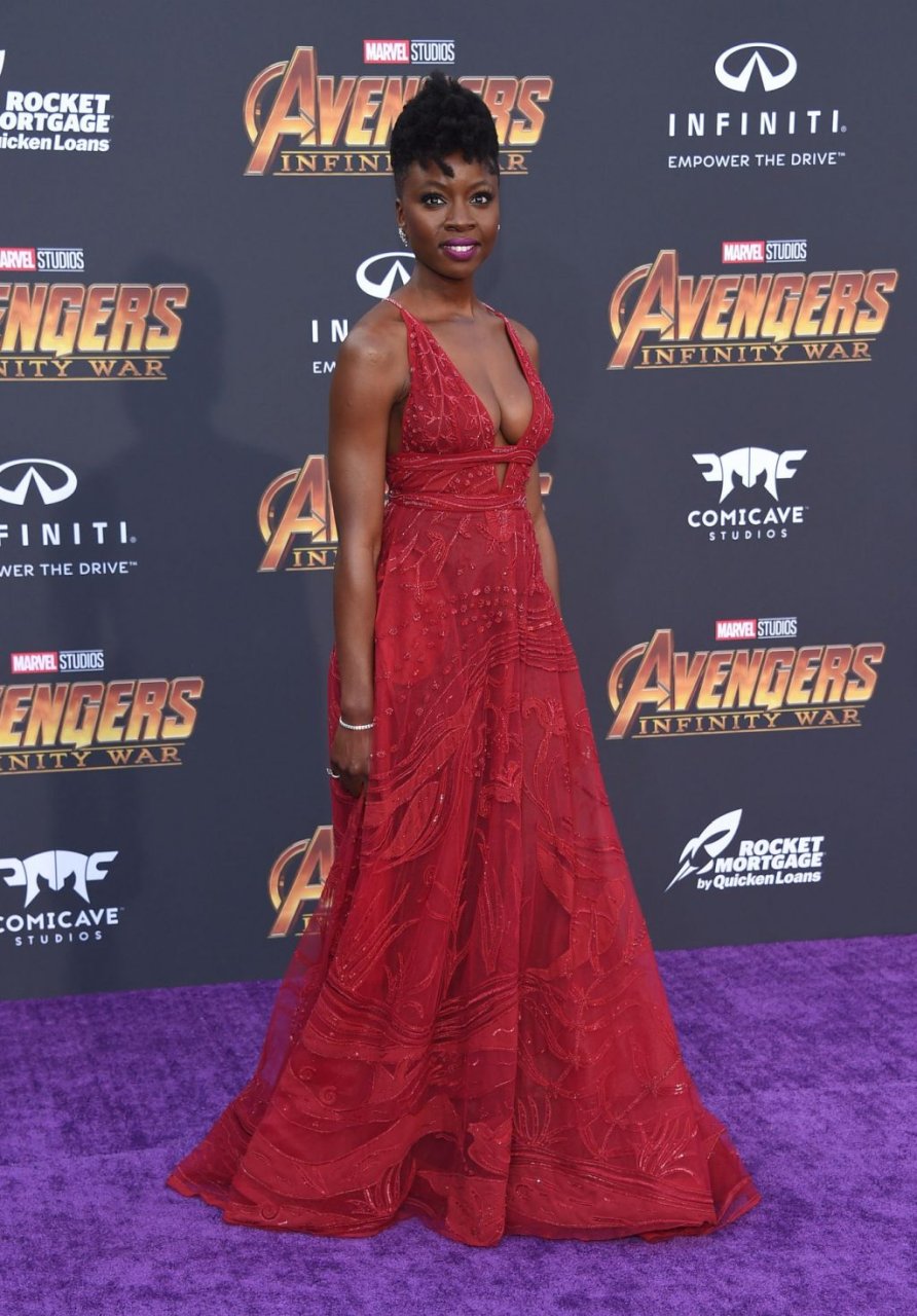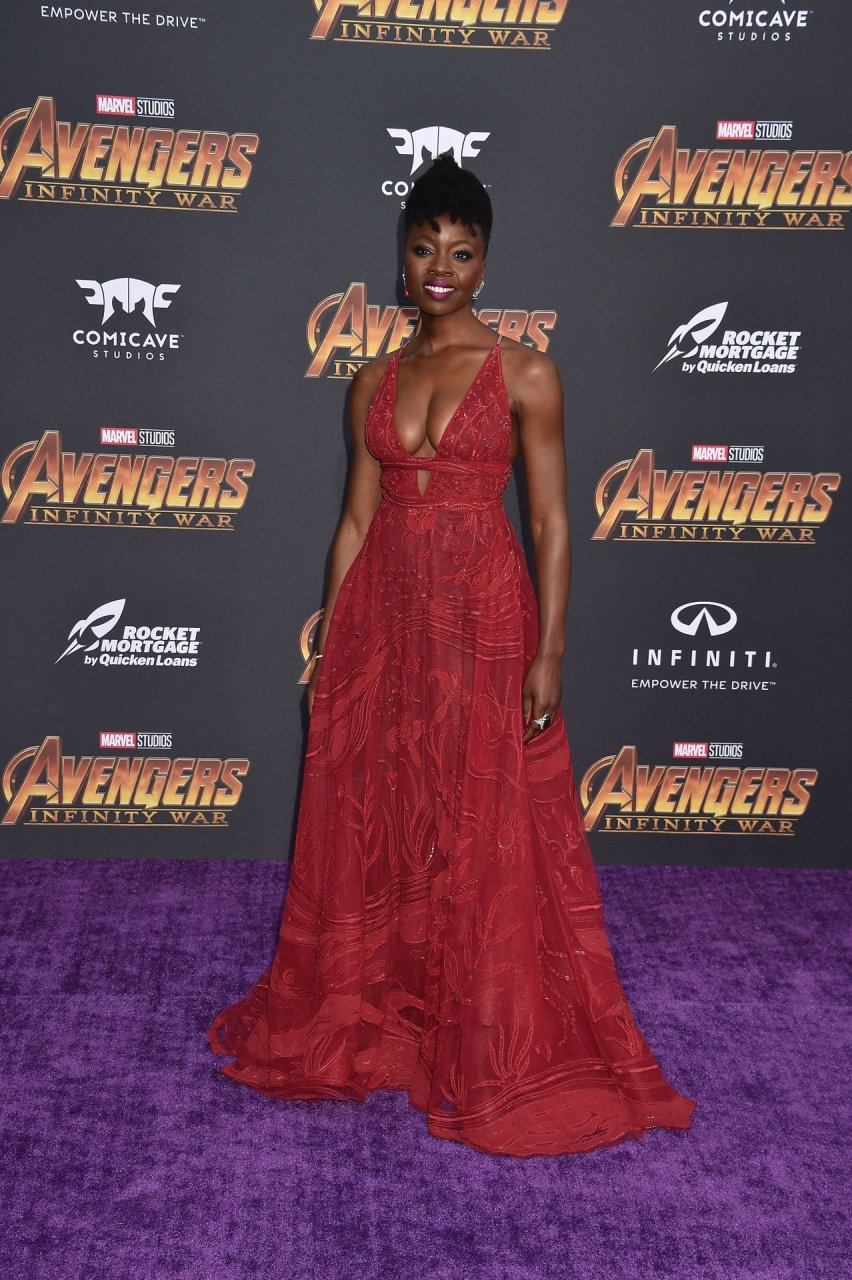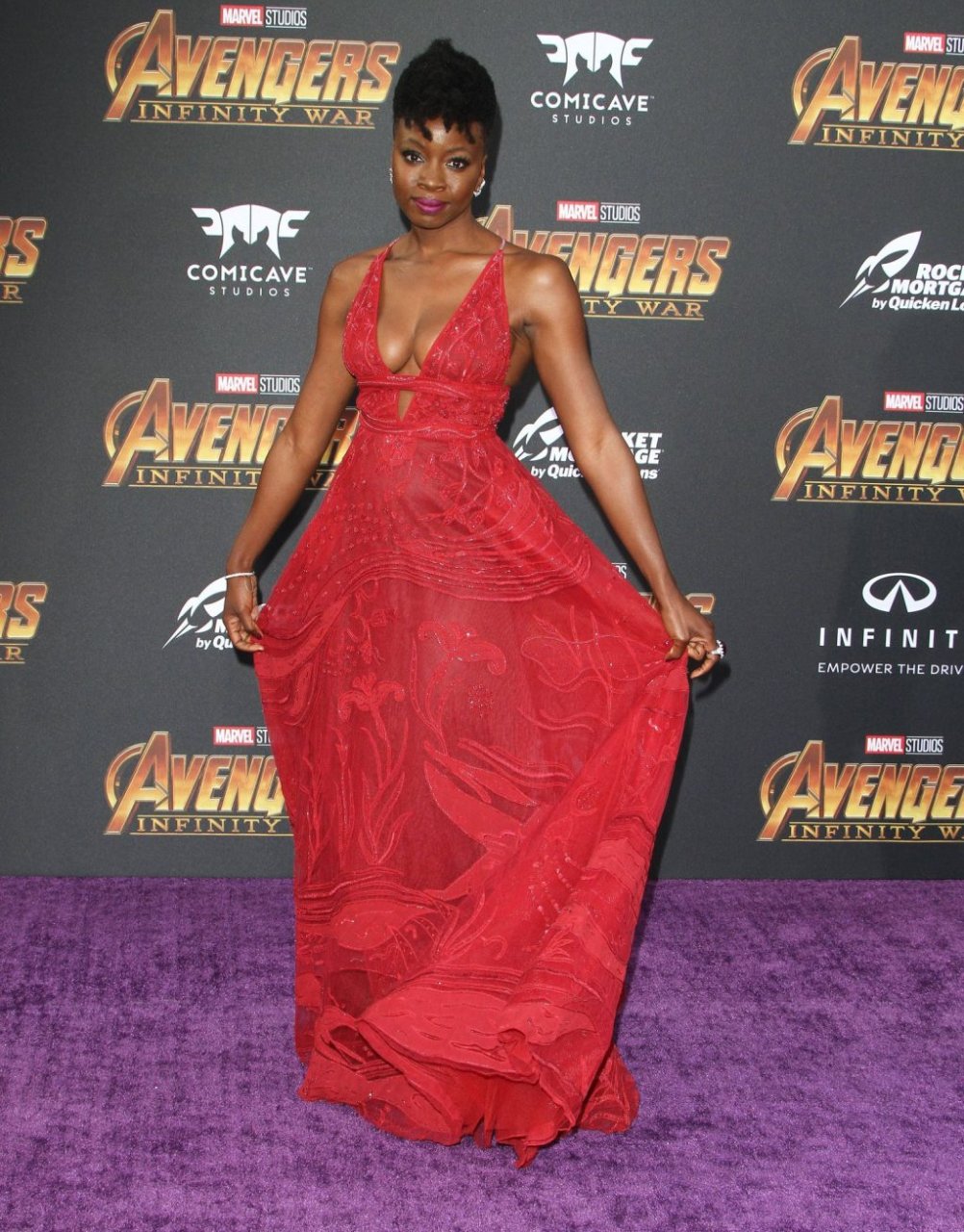 La star di “Walking Dead”, l’attrice Danai Gurira (40), ha mostrato il suo décolleté alla prima mondiale di “Avengers: Infinity War” di Disney e Marvel, tenutasi al El Capitan Theater, Dolby Theatre e TCL Chinese Theater IMAX a Hollywood, il 23/04/2018.