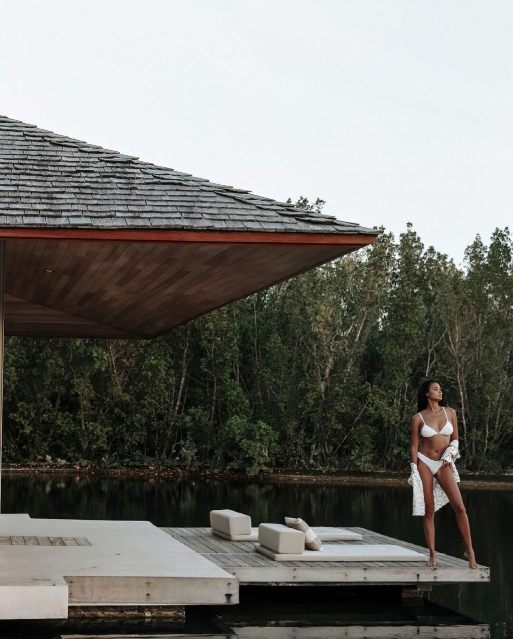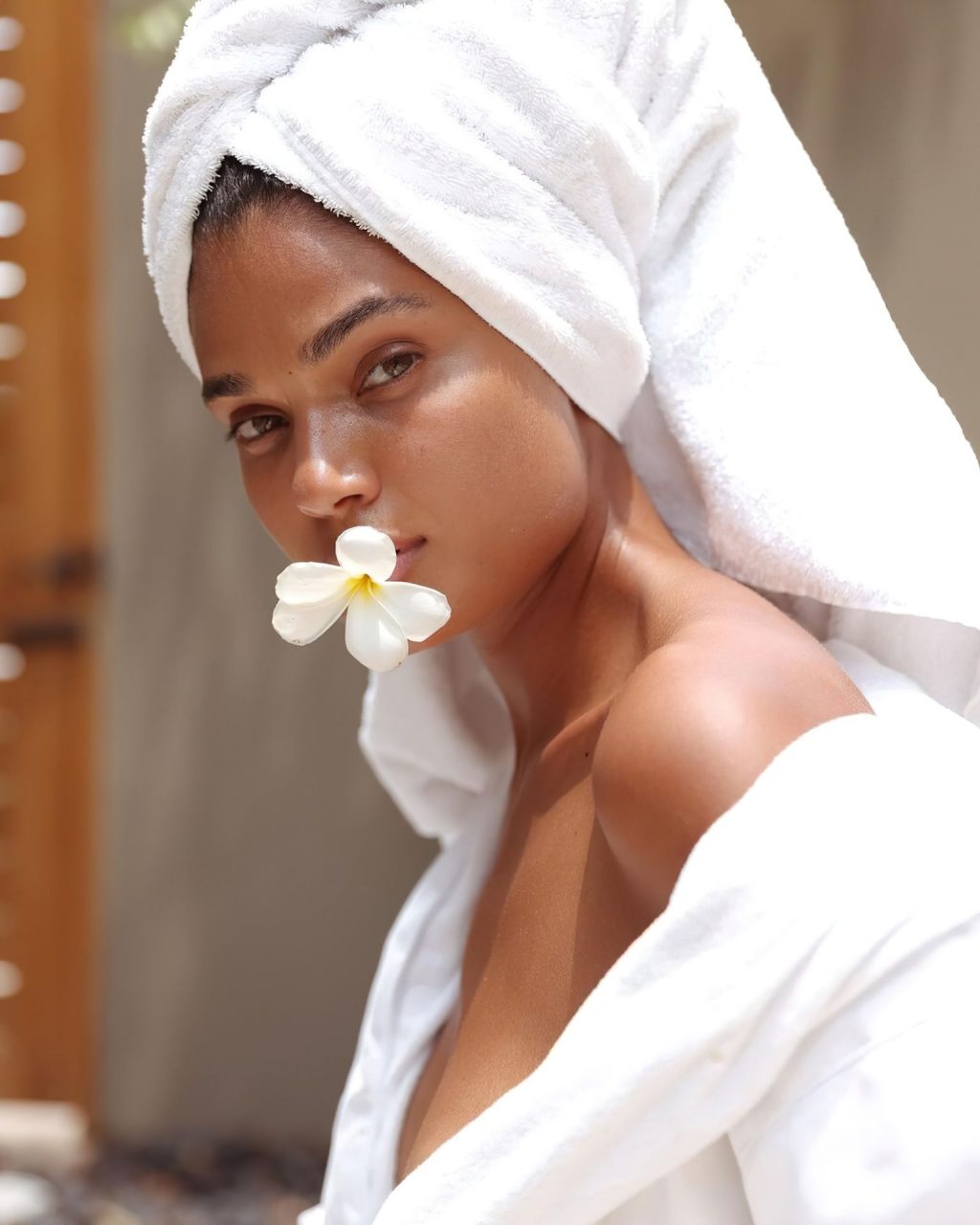La modella Daniela Braga mostra la sua figura abbronzata posando quasi nuda e in bikini in un servizio fotografico di Emilynn Rose (2021).
