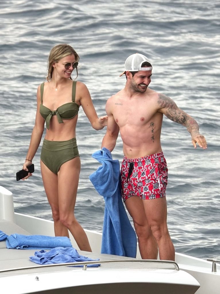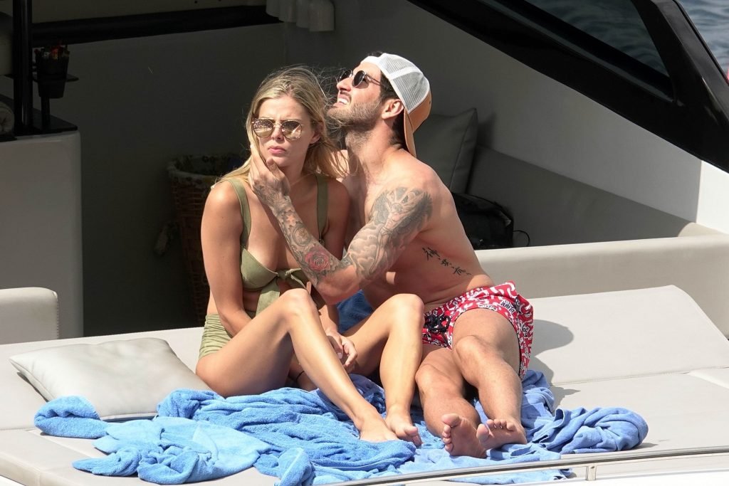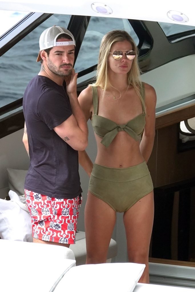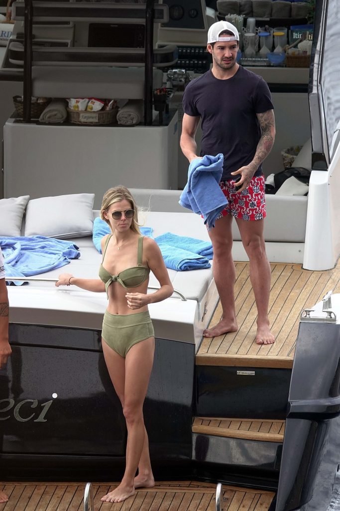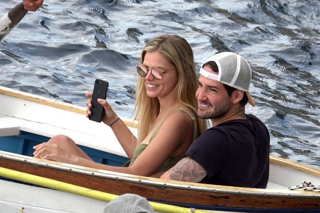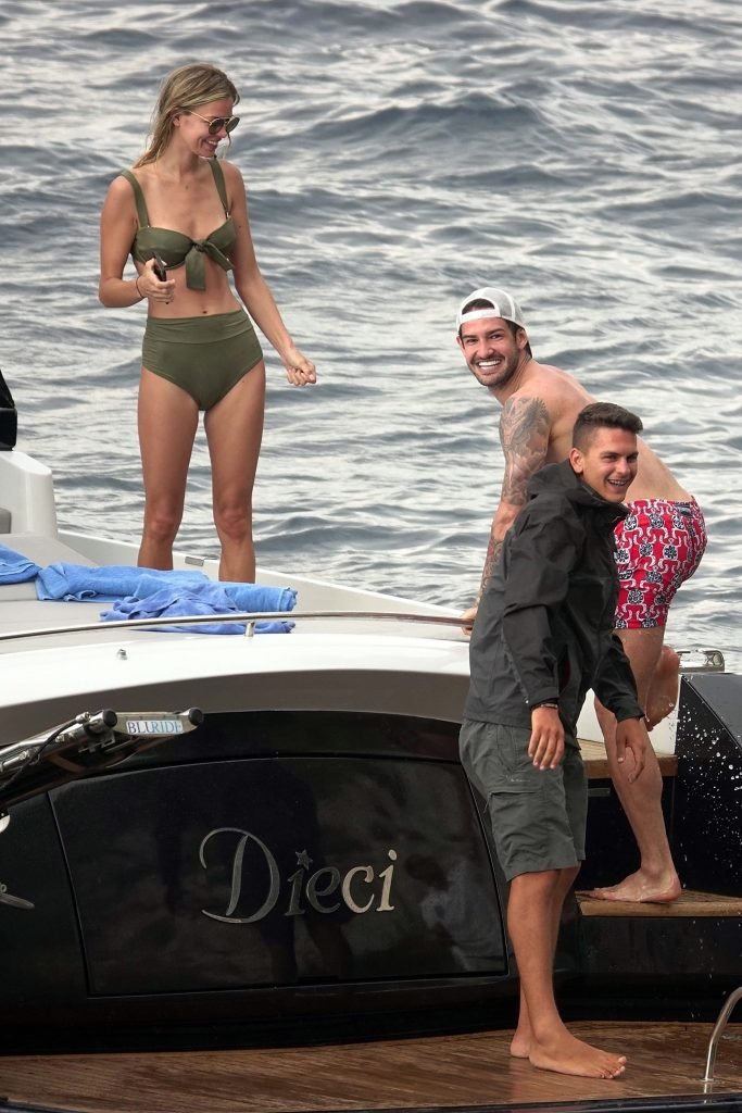 L’ex stella del calcio brasiliano Alexandre Pato si gode una giornata in mare con la sua fidanzata Danielle Knudson su uno yacht di lusso a Capri, 12/06/2018. Questa mattina Alexandre è stato accostato a un trasferimento al Celtic.