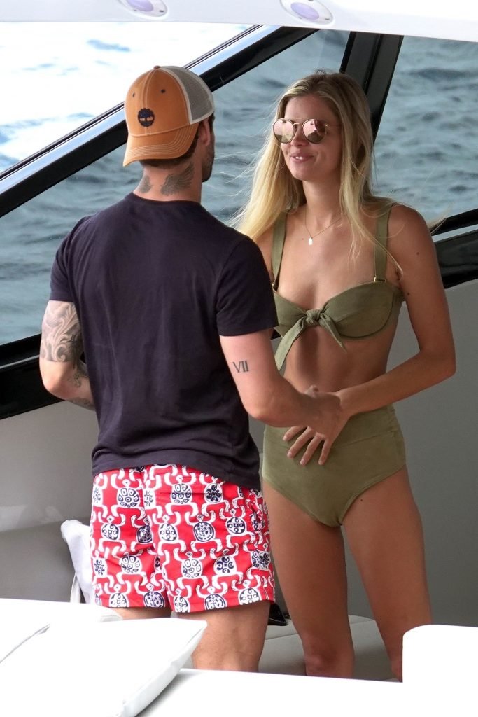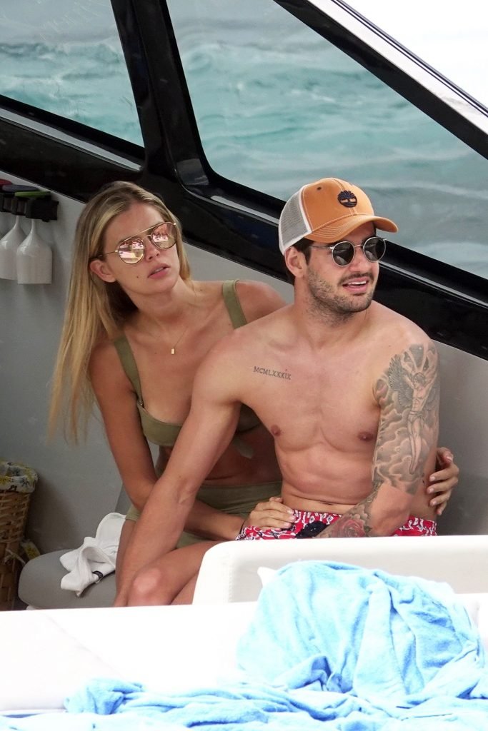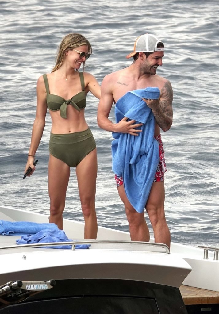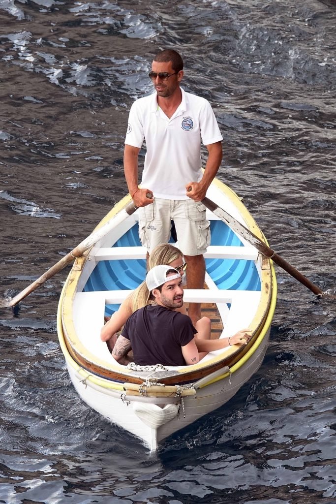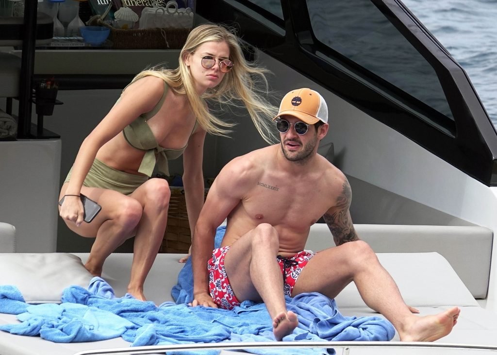L’ex stella del calcio brasiliano Alexandre Pato si gode una giornata in mare con la sua fidanzata Danielle Knudson su uno yacht di lusso a Capri, 12/06/2018. Questa mattina Alexandre è stato accostato a un trasferimento al Celtic.