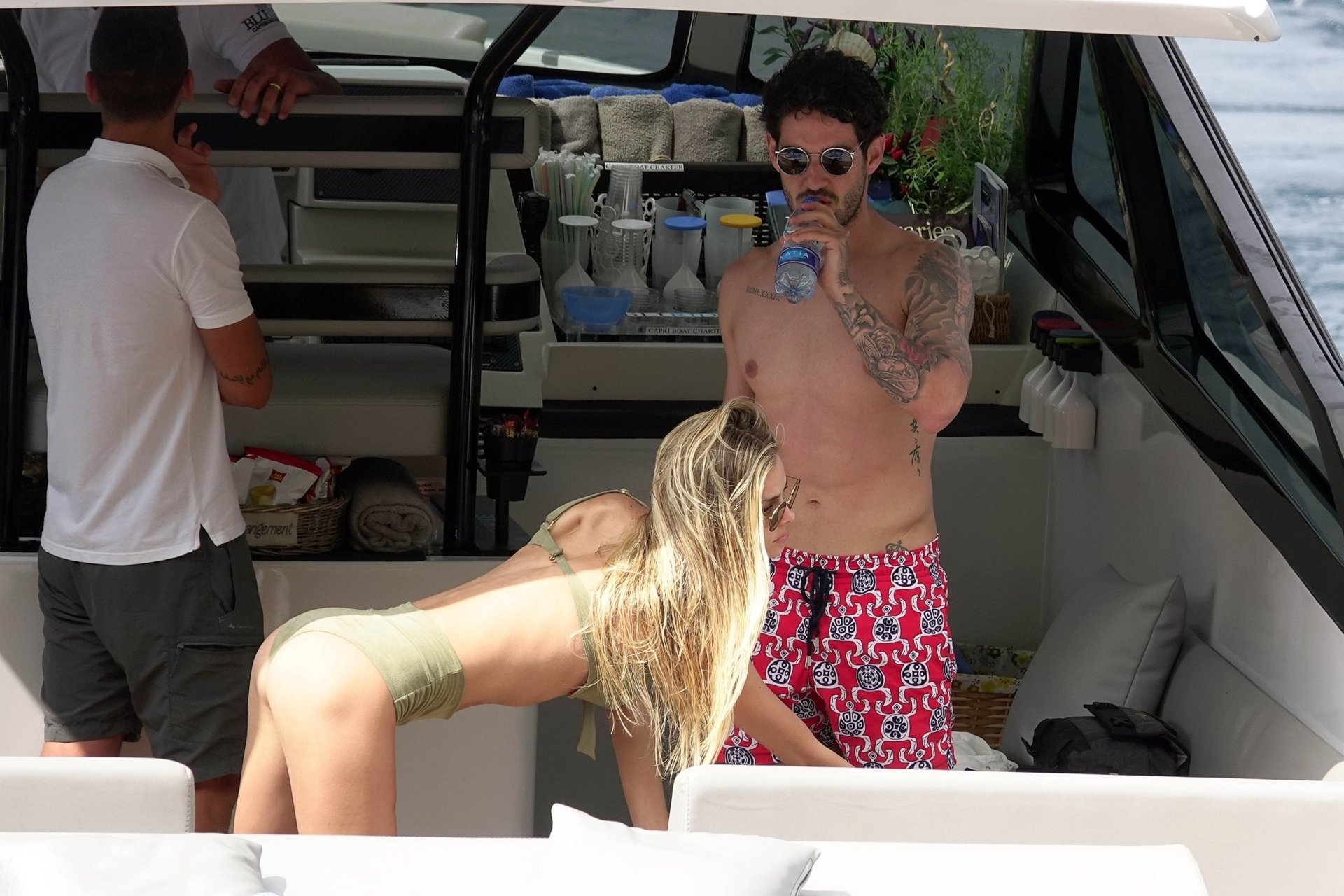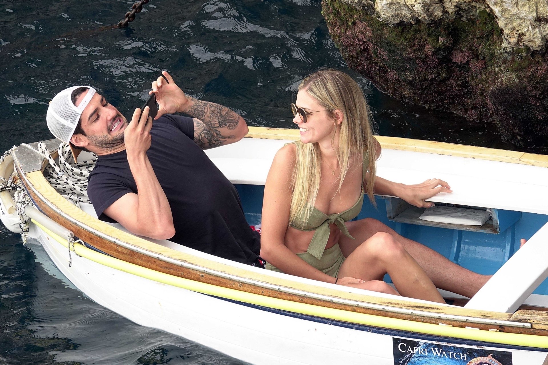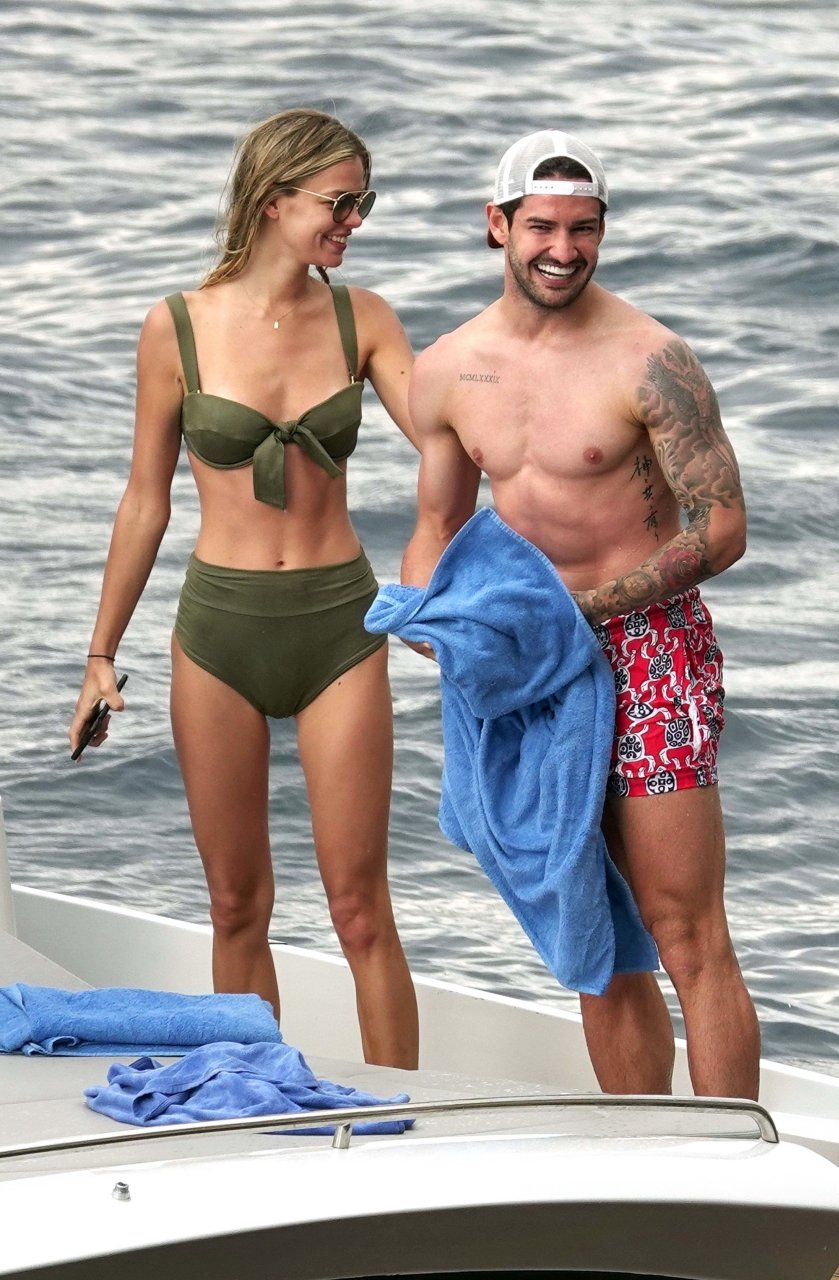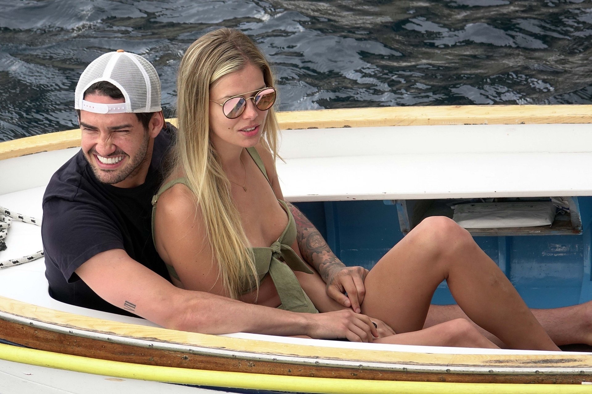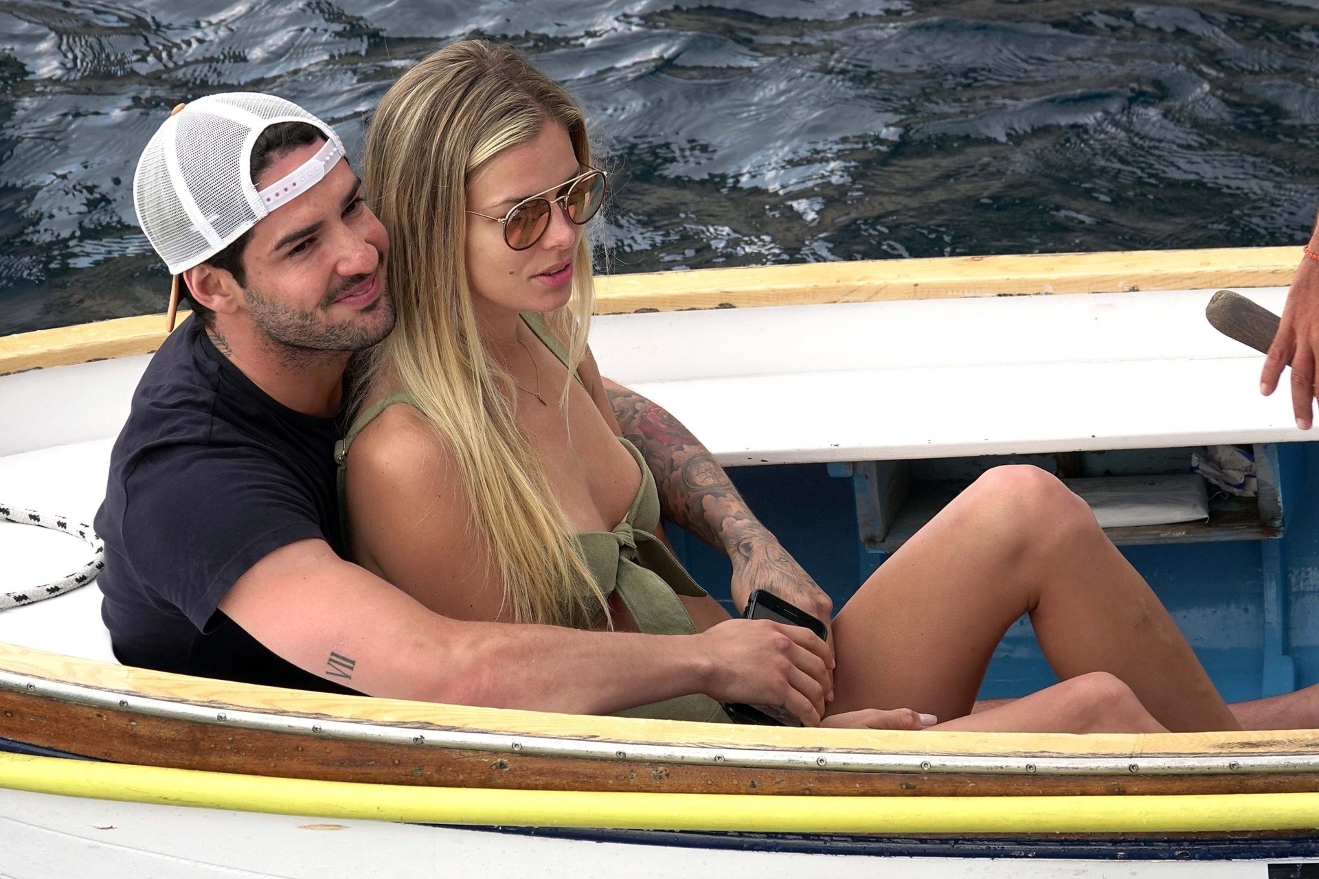L’ex stella del calcio brasiliano Alexandre Pato si gode una giornata in mare con la sua fidanzata Danielle Knudson su uno yacht di lusso a Capri, 12/06/2018. Questa mattina Alexandre è stato accostato a un trasferimento al Celtic.