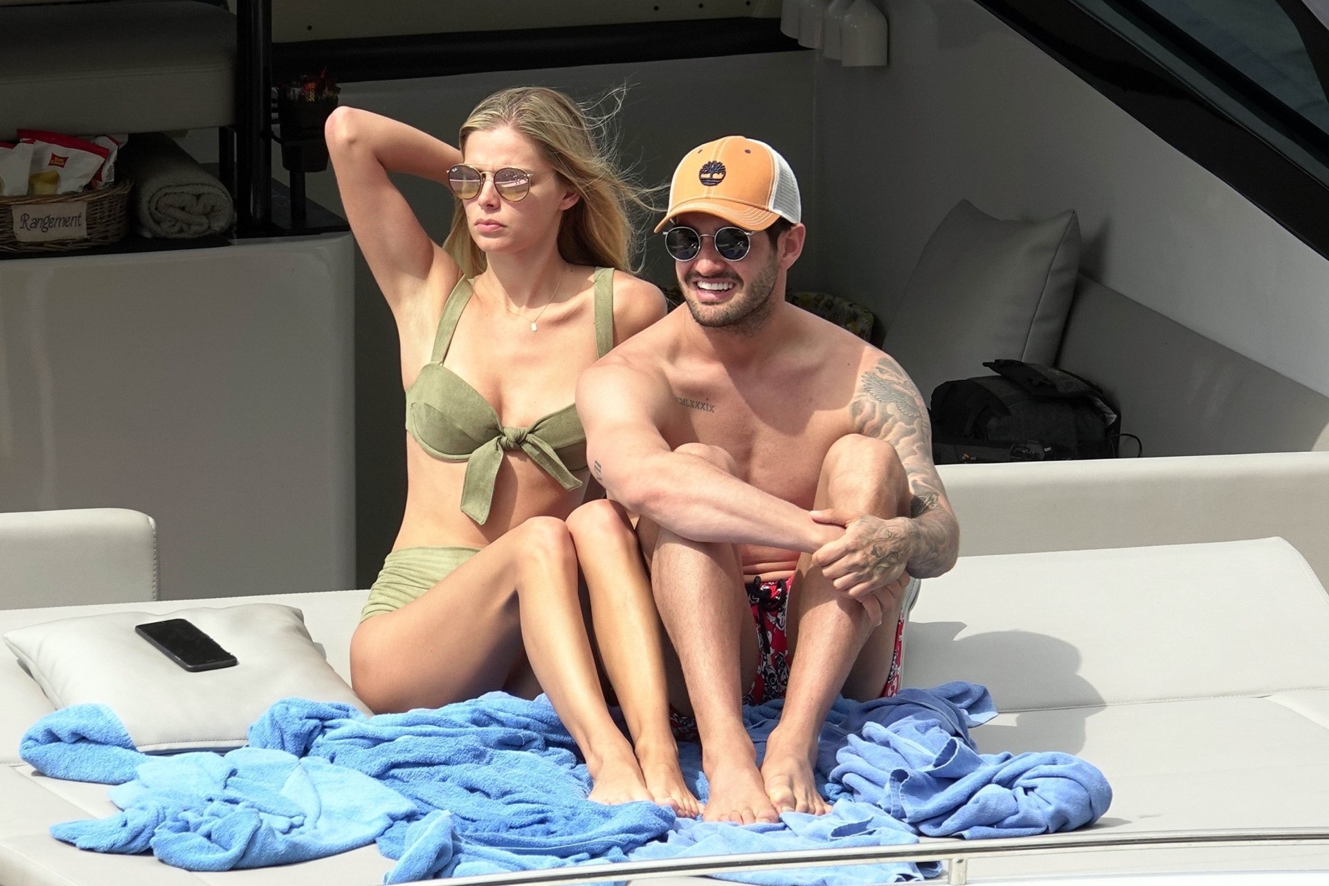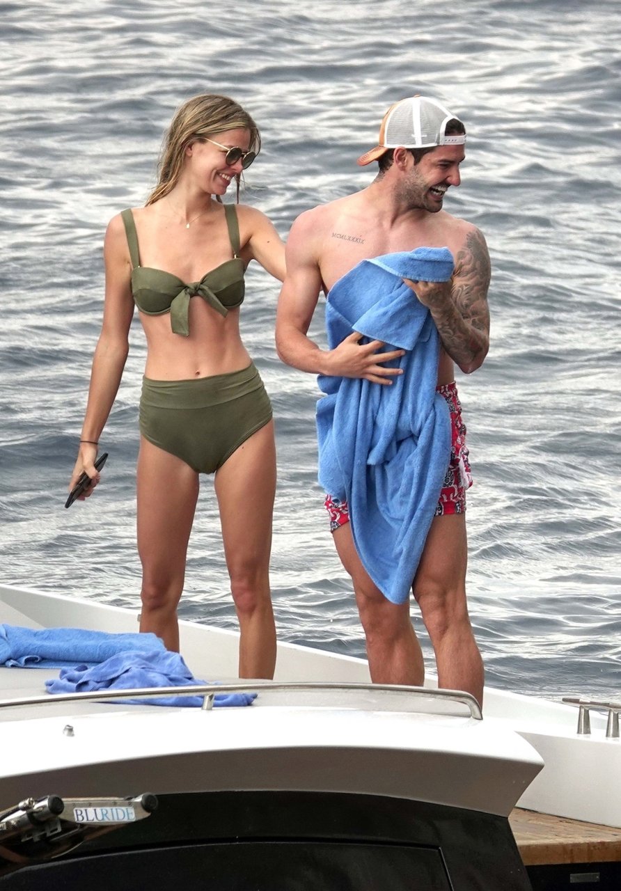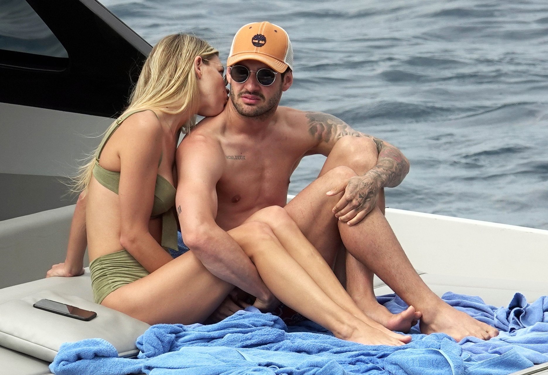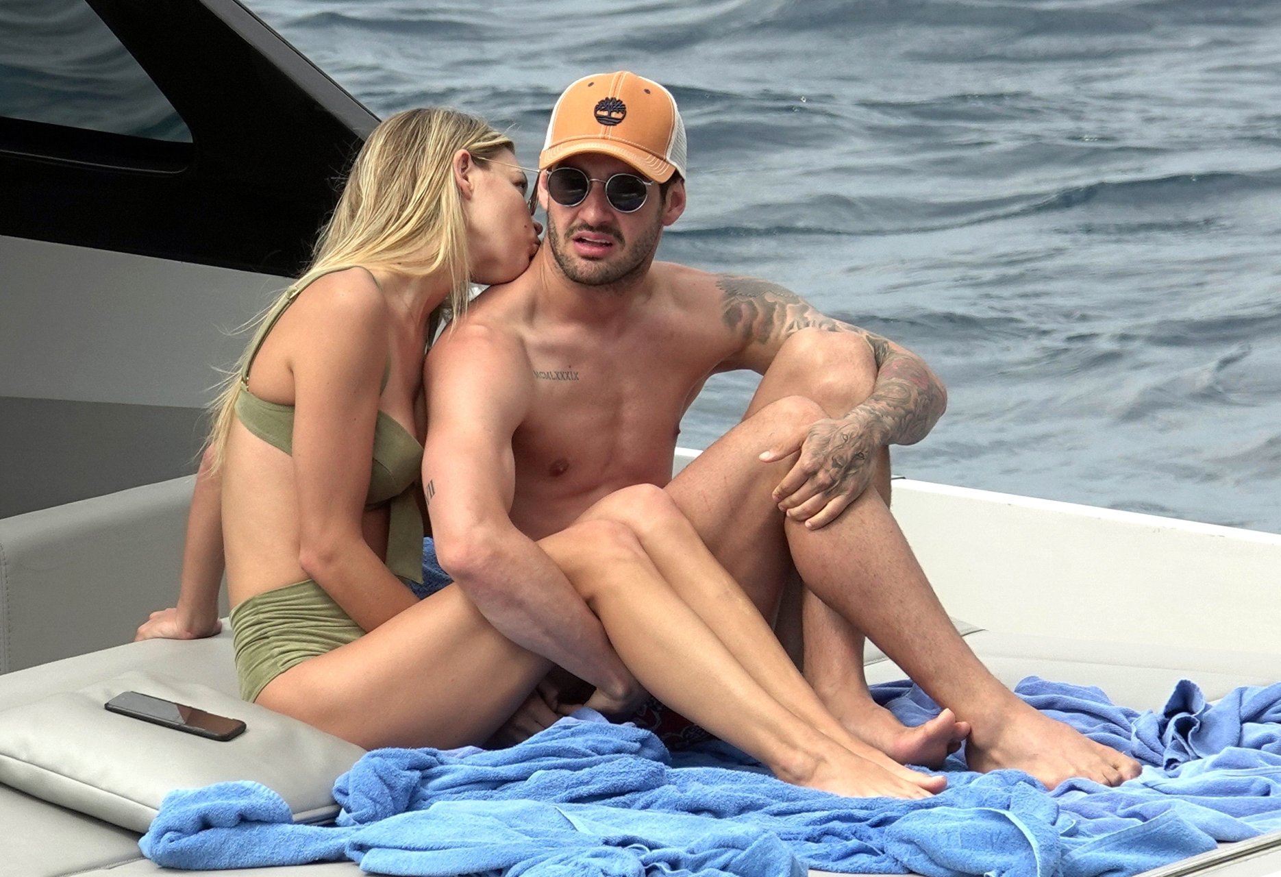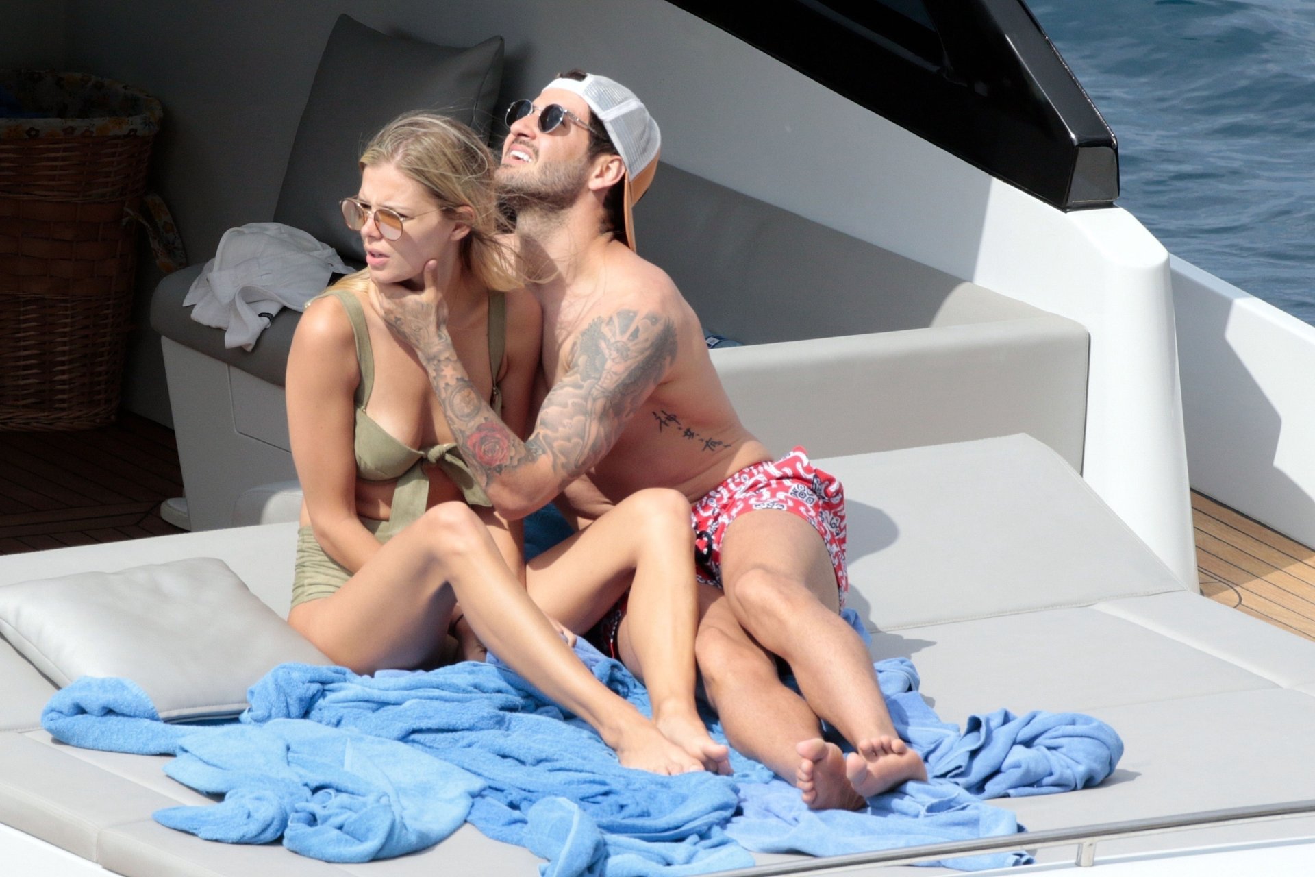L’ex stella del calcio brasiliano Alexandre Pato si gode una giornata in mare con la sua fidanzata Danielle Knudson su uno yacht di lusso a Capri, 12/06/2018. Questa mattina Alexandre è stato accostato a un trasferimento al Celtic.