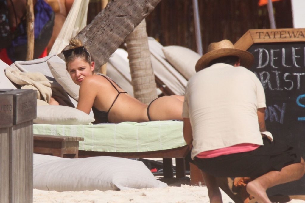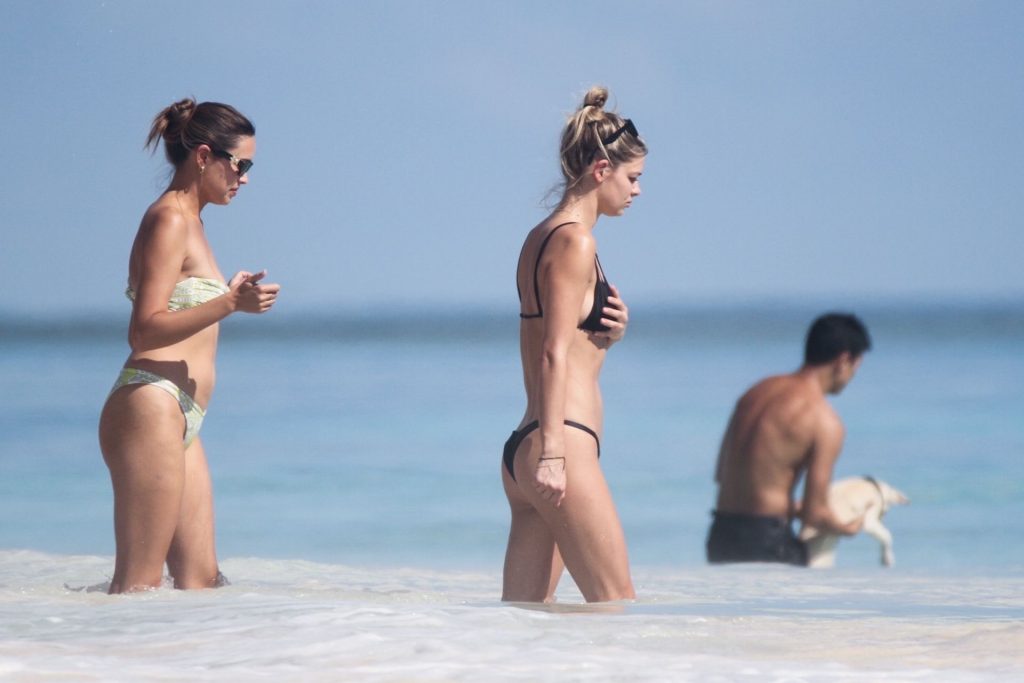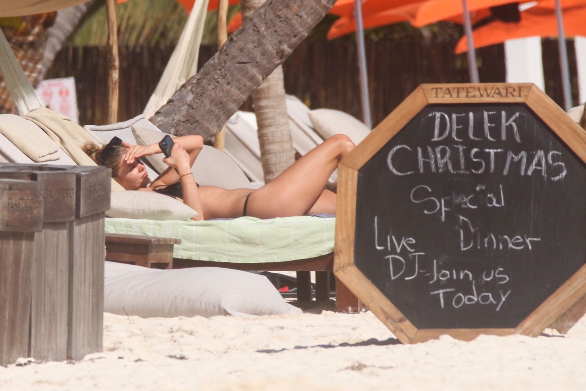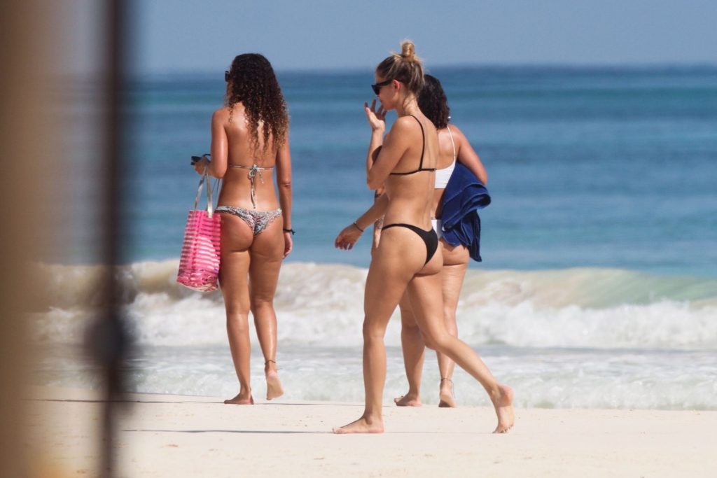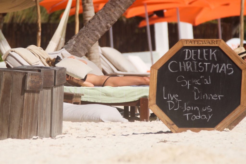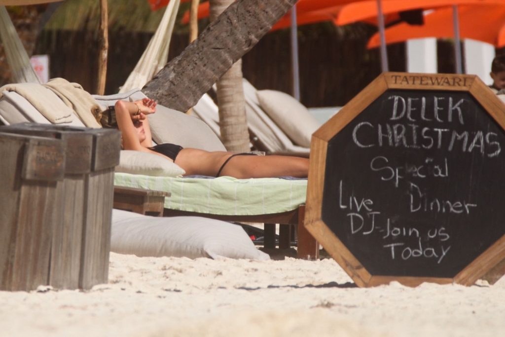 Danielle Knudson infuoca in un bikini a perizoma nero per celebrare un Natale tropicale a Tulum, 25/12/2019. La modella canadese e fidanzata della star canadese del tennis Milos Raonic si è tuffata tra le onde con gli amici per rinfrescarsi sotto il sole caldo.