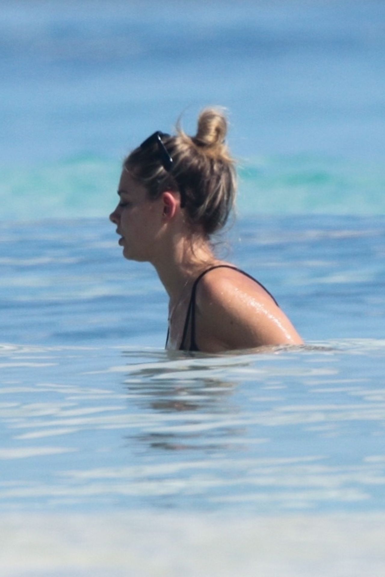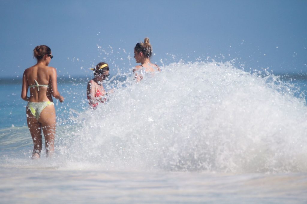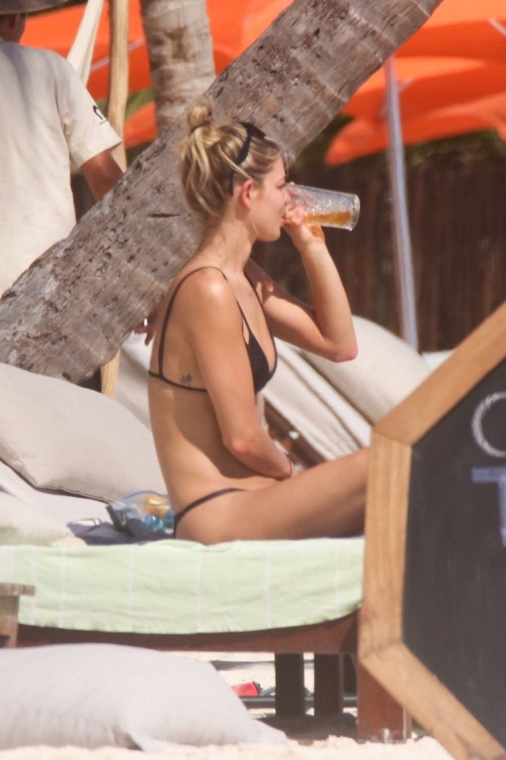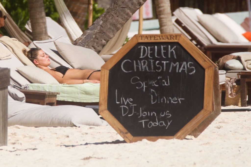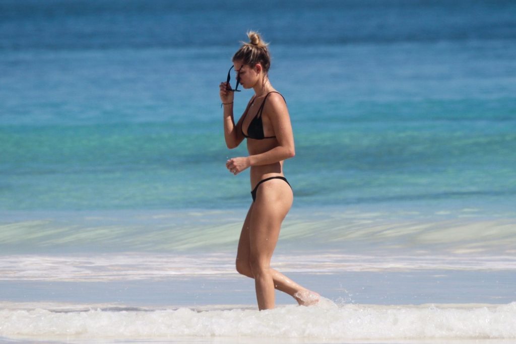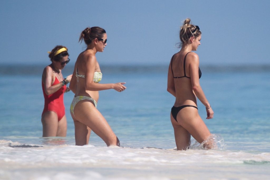 Danielle Knudson infuoca in un bikini a perizoma nero per celebrare un Natale tropicale a Tulum, 25/12/2019. La modella canadese e fidanzata della star canadese del tennis Milos Raonic si è tuffata tra le onde con gli amici per rinfrescarsi sotto il sole caldo.